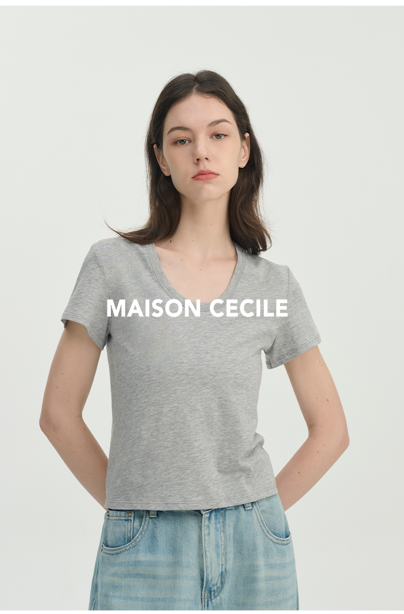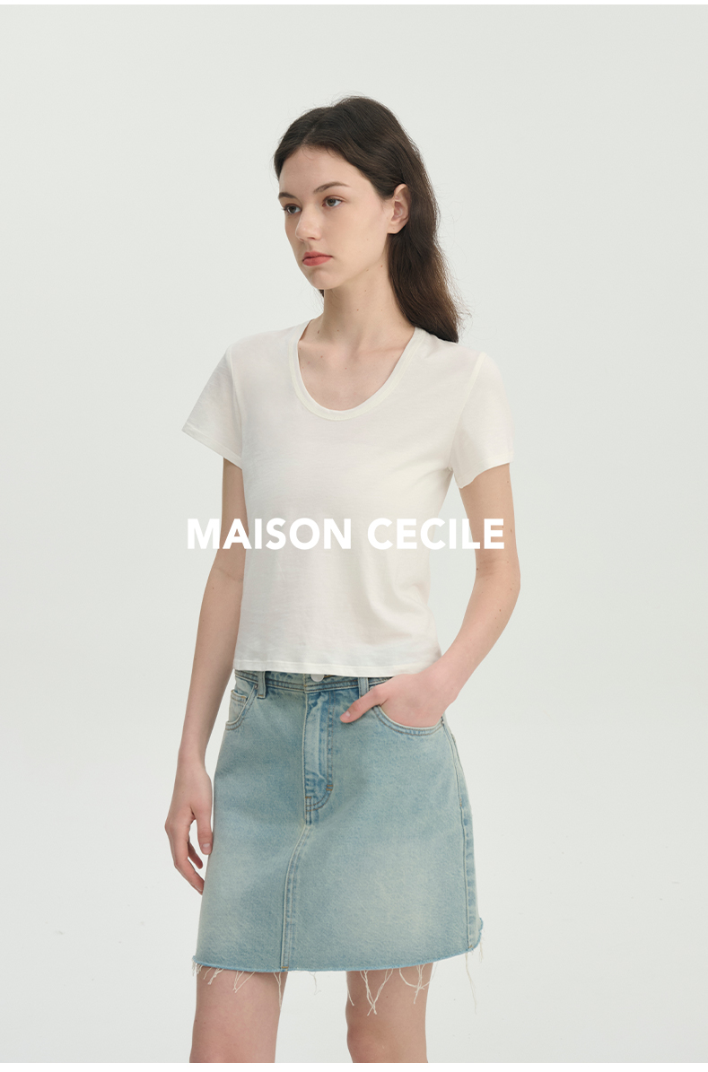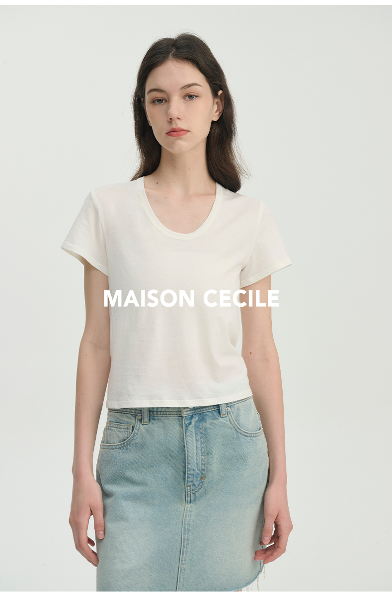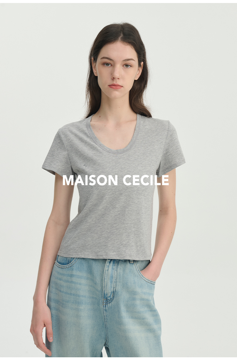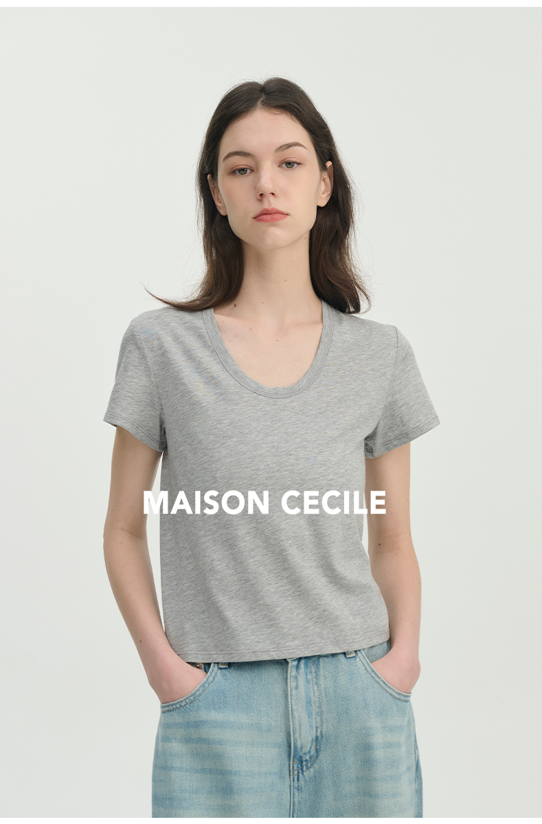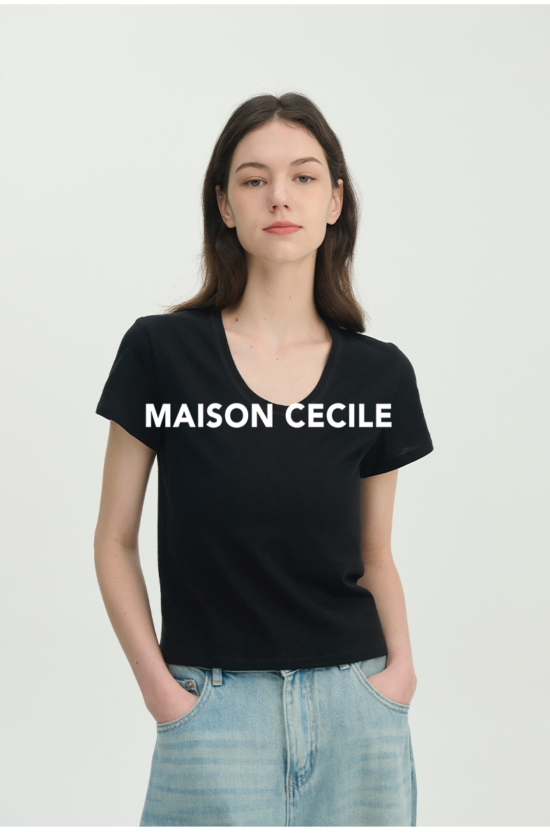 MAISON CECILE经典三色/亲肤桑蚕丝羊毛棉制合身U领T恤
