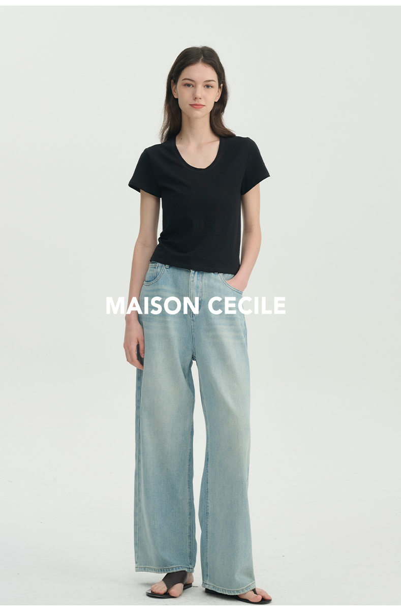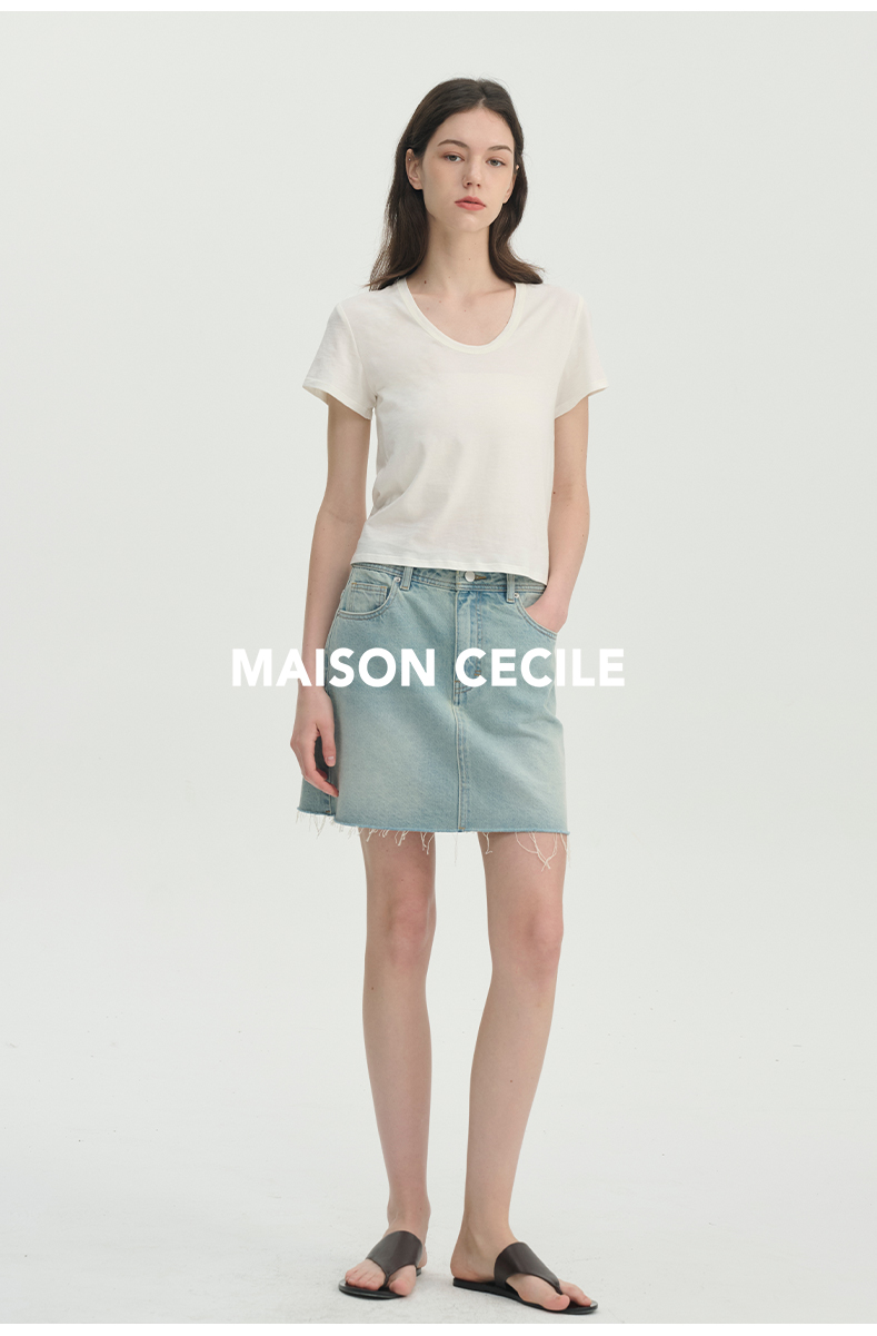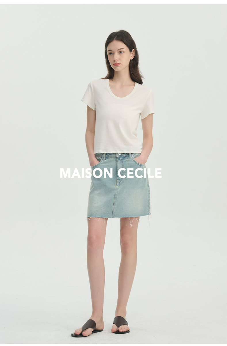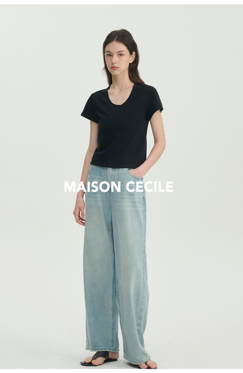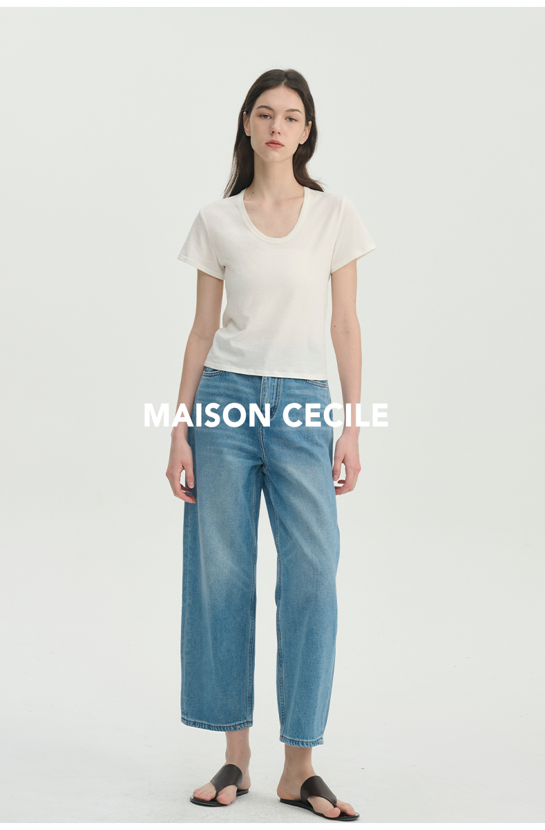 MAISON CECILE经典三色/亲肤桑蚕丝羊毛棉制合身U领T恤