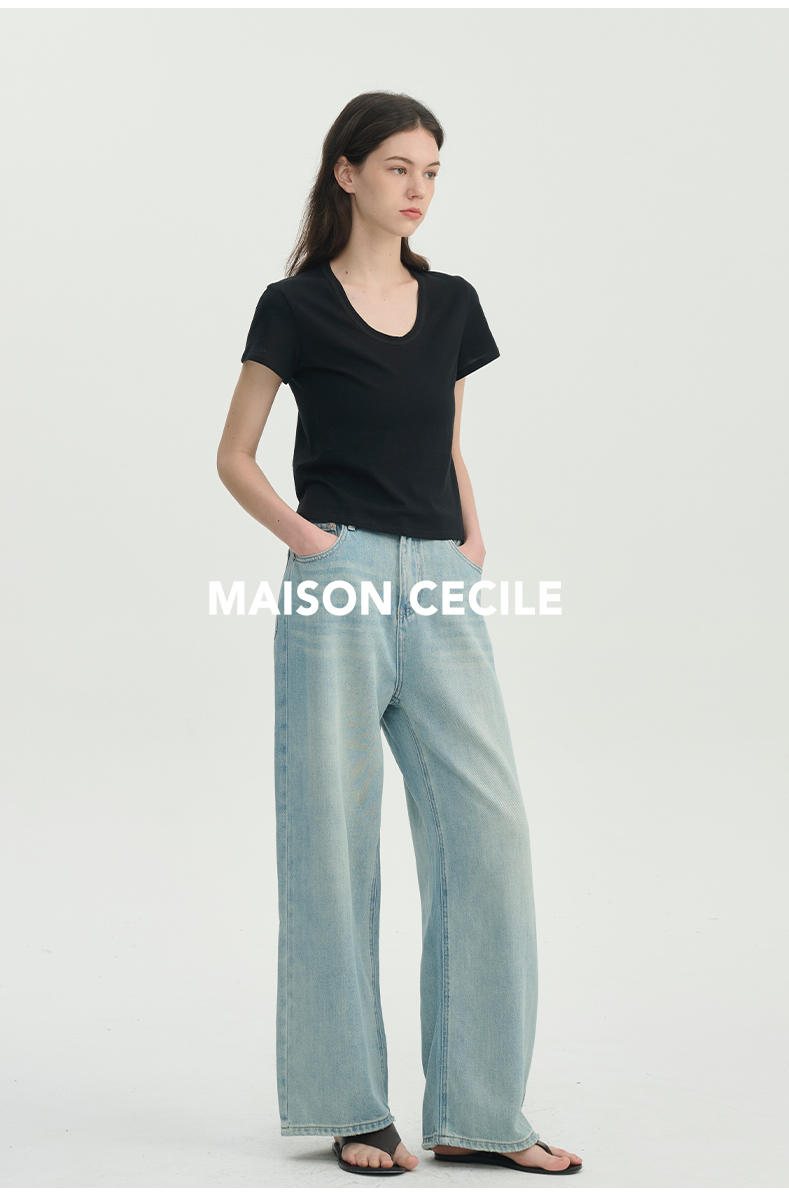 MC三色|基础好穿雪花棉肌理感宽松舒适慵懒落肩T恤MAISON CECILE