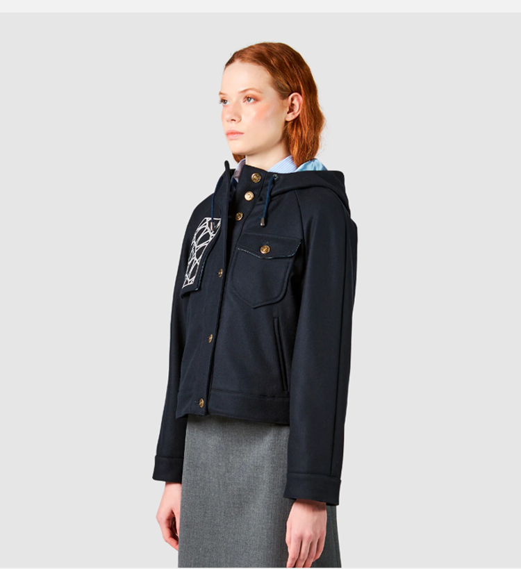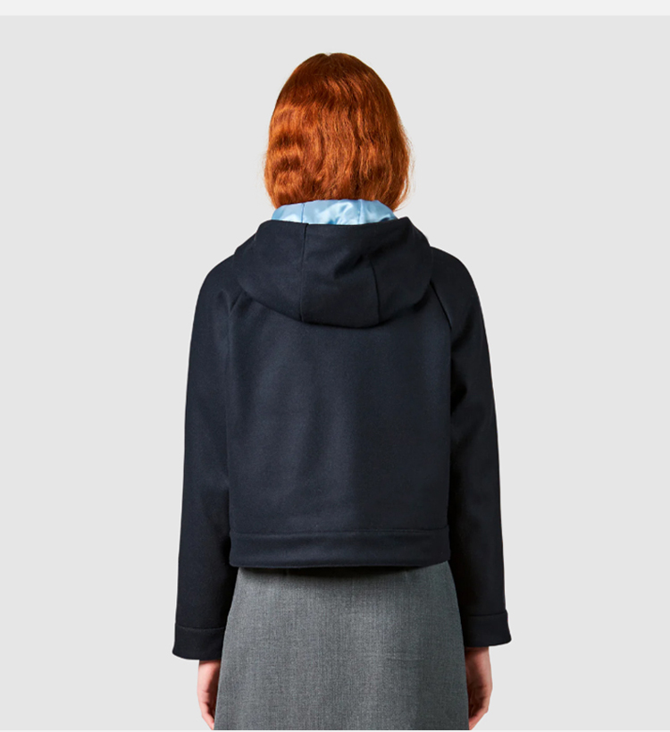 PHILIPPE MODEL 女士盾牌字母徽标贴片混纺羊毛连帽外套 蓝色 JASD MW10 38