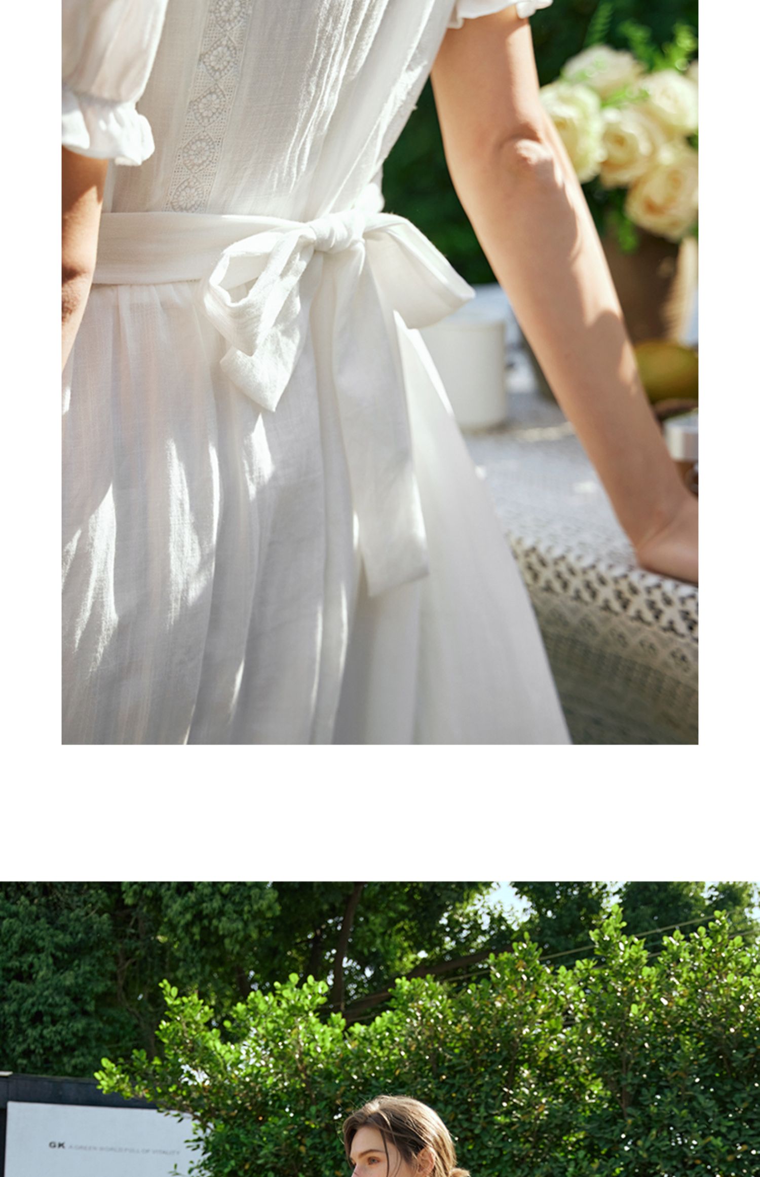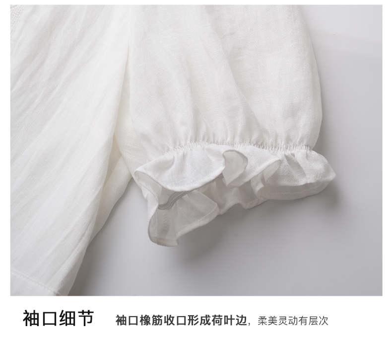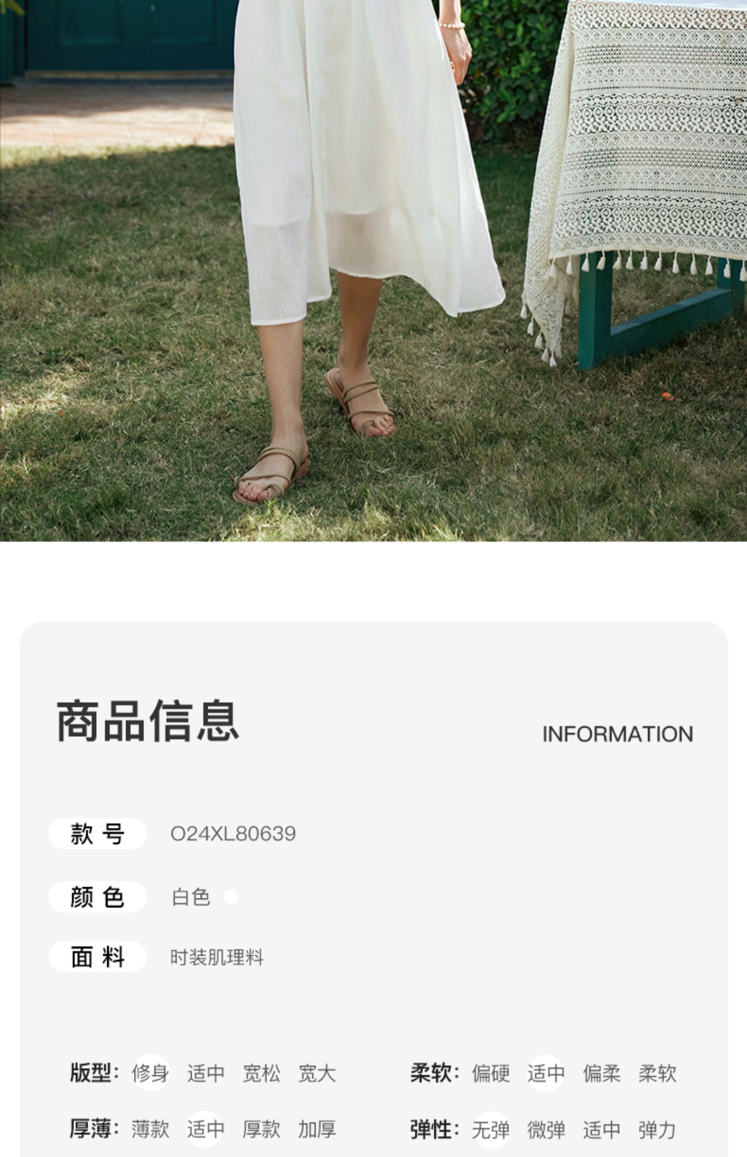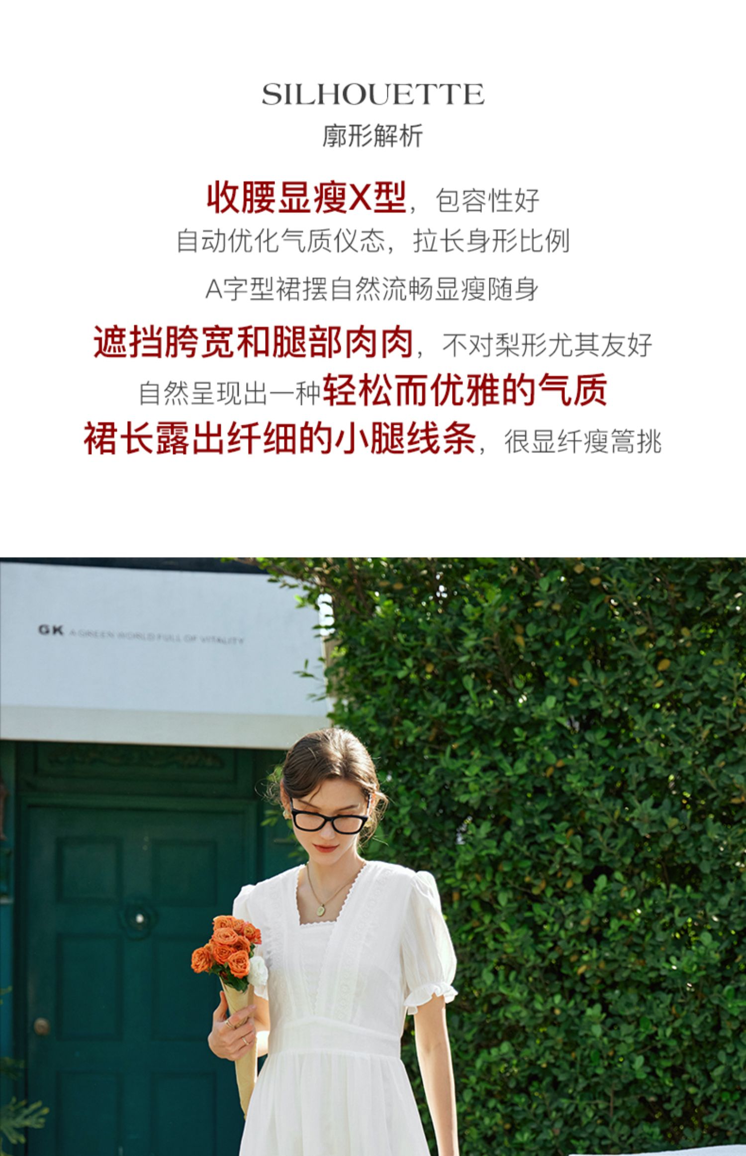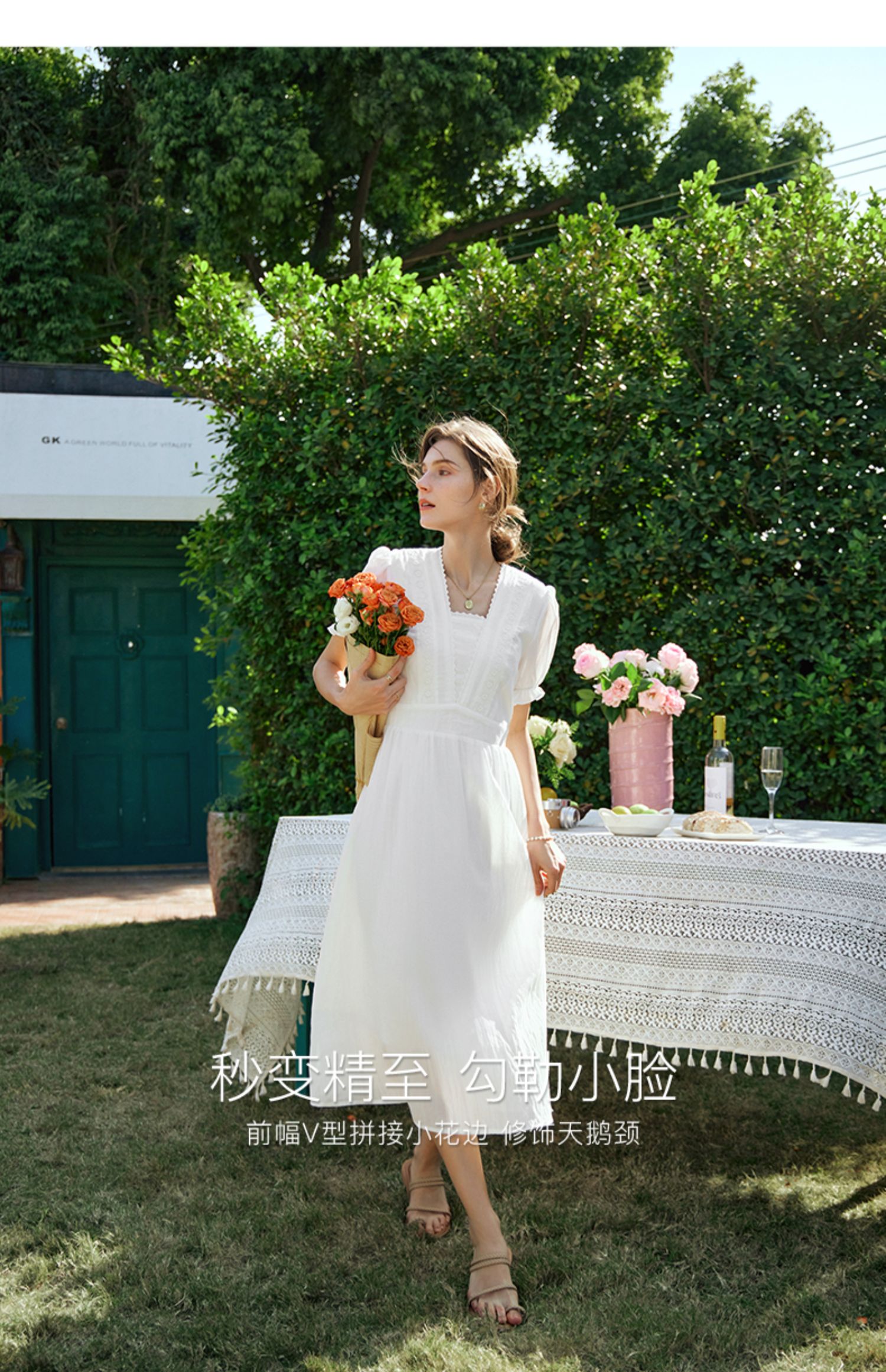 OLrain欧芮儿法式泡泡袖白色V领小花边连衣裙女夏季2024新款显瘦长裙