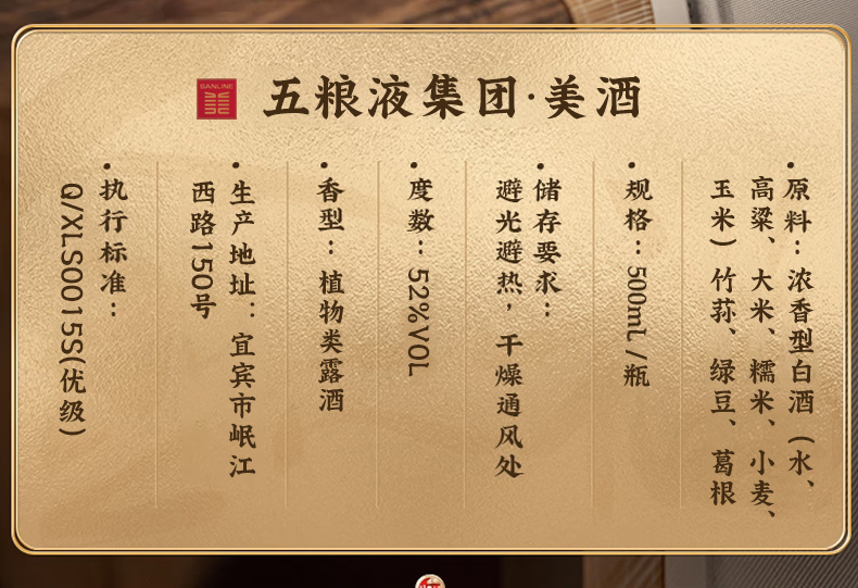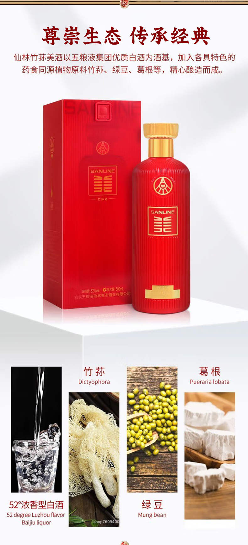 【整箱购】五粮液集团 美酒 竹荪酒 仙林生态 52度 浓香型白酒 500ml*6整箱装