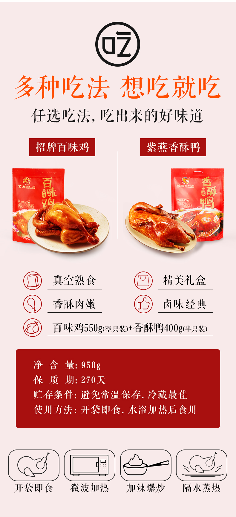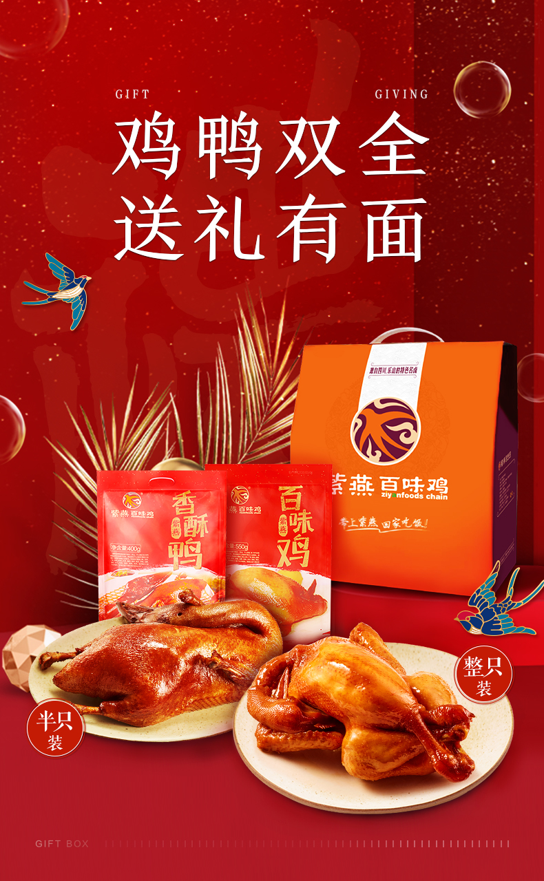 紫燕百味鸡香酥鸭节日礼盒装送礼卤味熟食整鸡半鸭礼盒一大箱950g