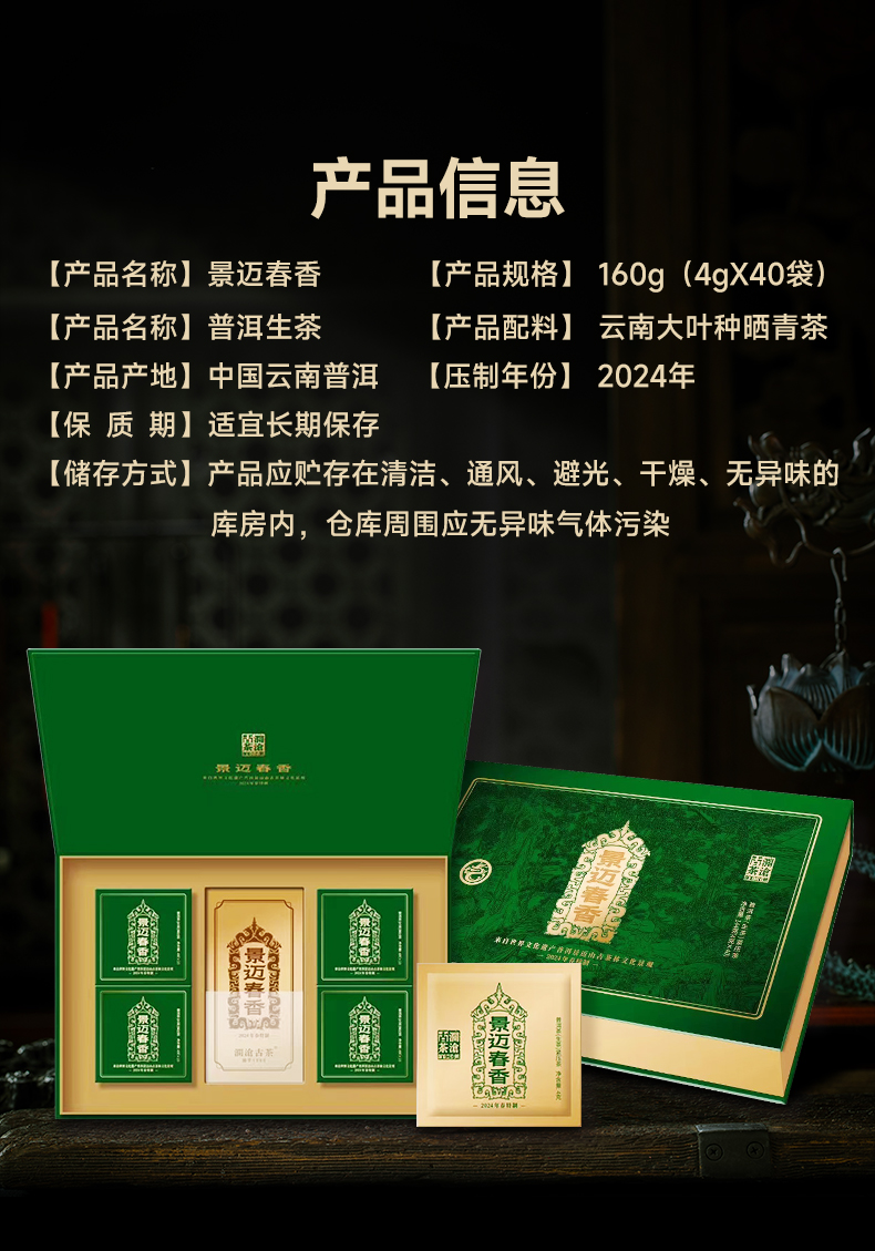 澜沧古茶2024年景迈春香普洱茶生茶小方片160g(4g*40)