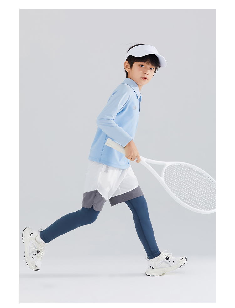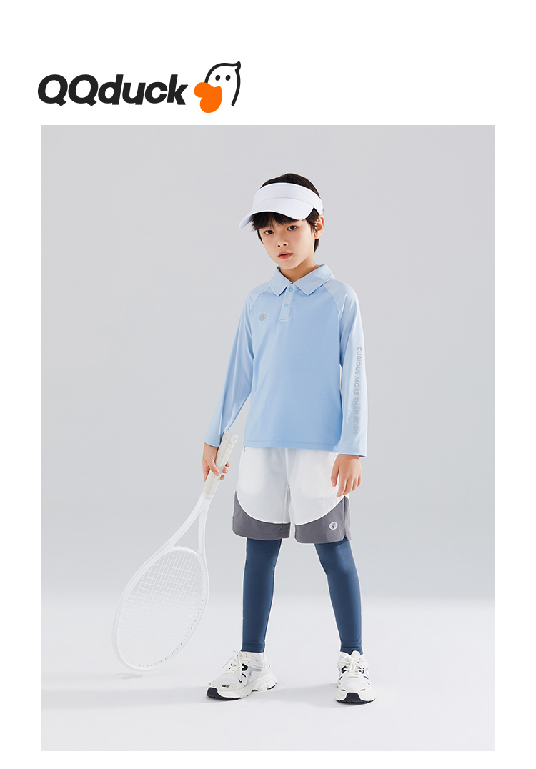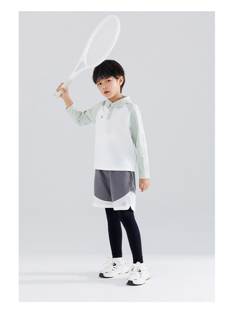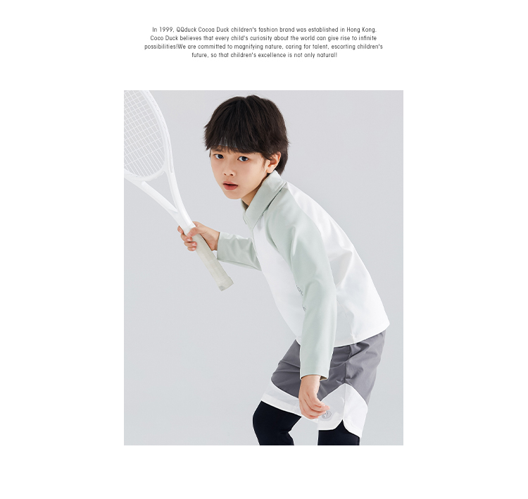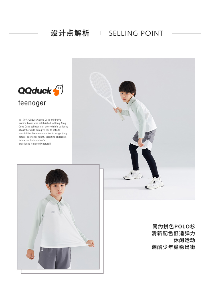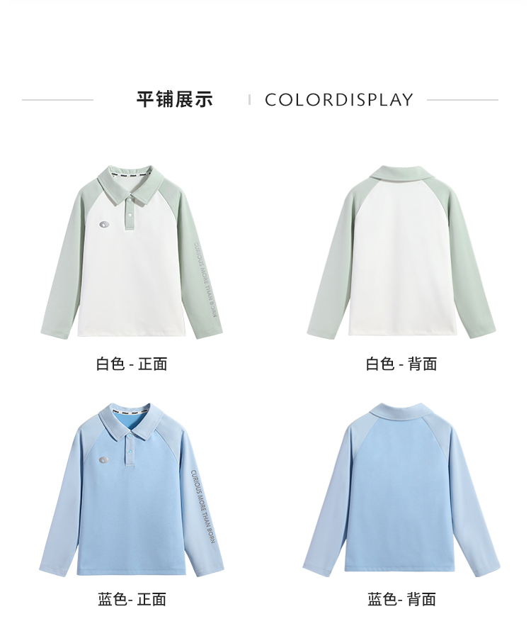 【120-165】【可可鸭】男童简约插袖运动POLO衫长袖T恤