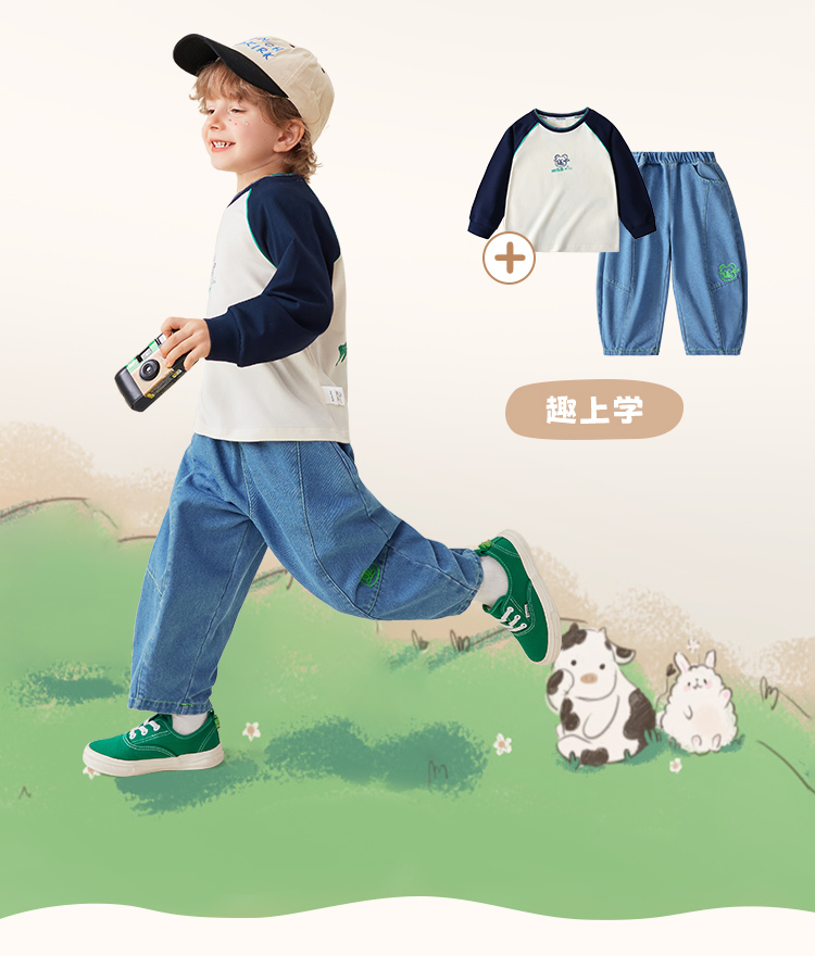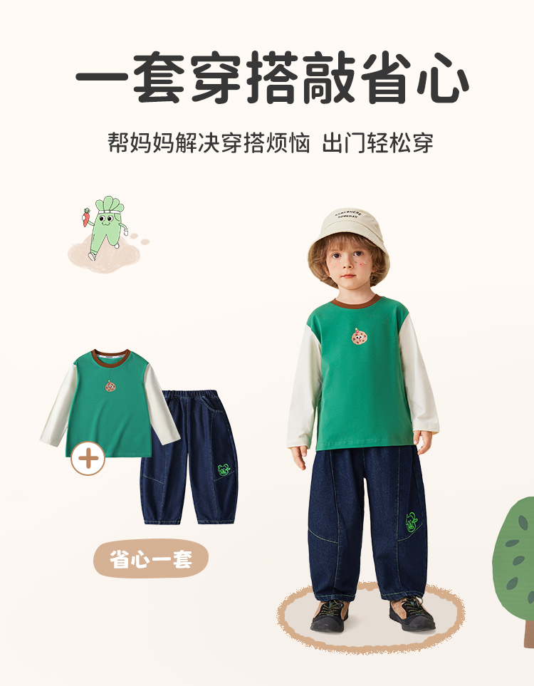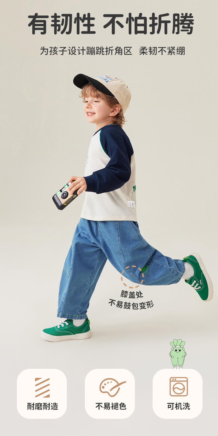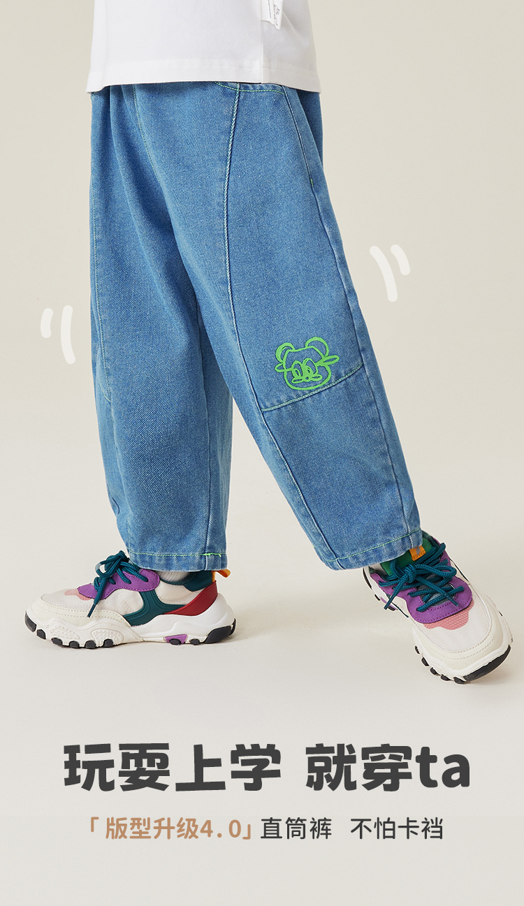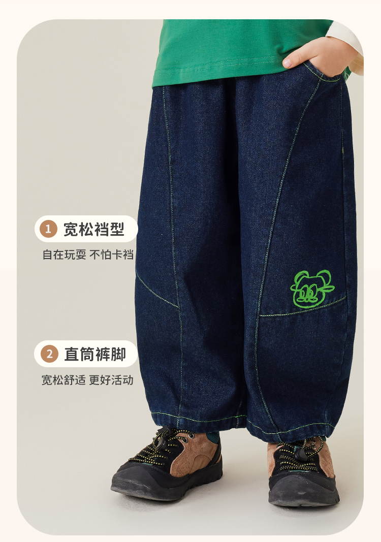 【男女同款】【110-140】【MQDmini】男童春秋牛仔裤宽松休闲直筒长裤