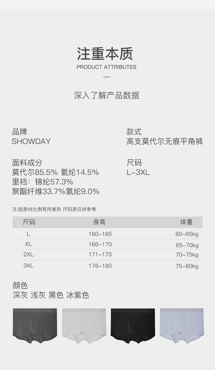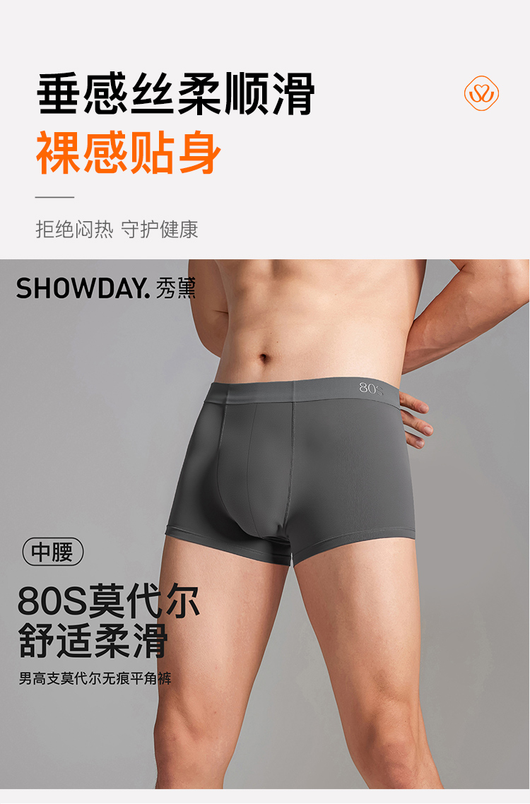 【满3条/6.7折】【秀黛】男高支莫代尔无痕平角裤男士内裤【1条】W5330004T【门店同款】【内裤非质量问题不退换,介意勿拍】