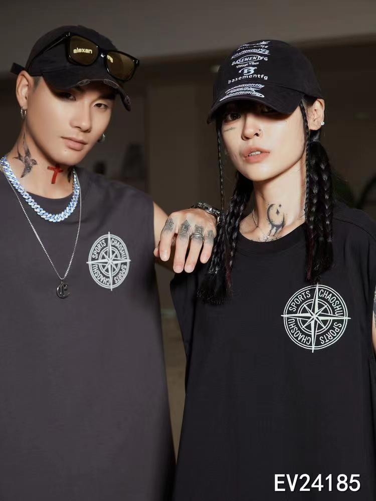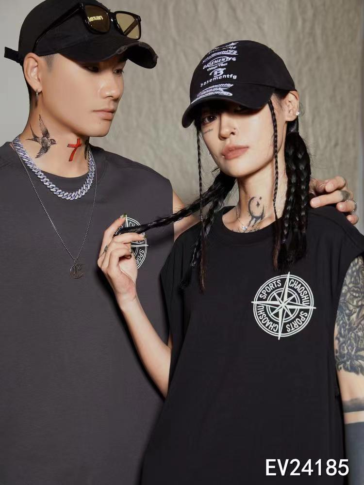 24185# 美式潮牌2024夏季新款男女情侣装纯棉背心