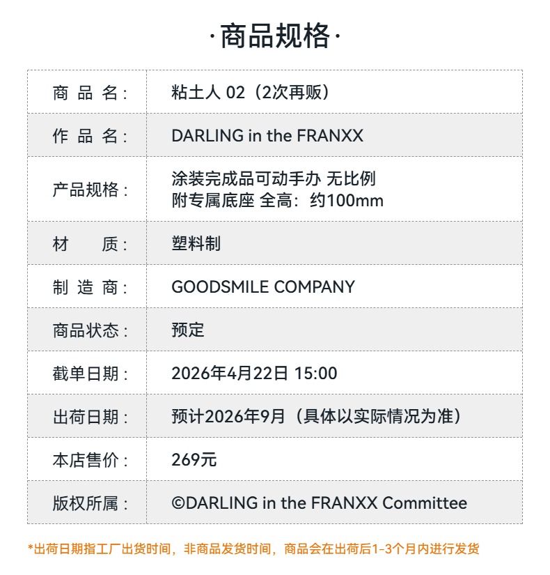 【GSC预售定金】粘土人 02 DARLING in the FRANXX 手办模玩