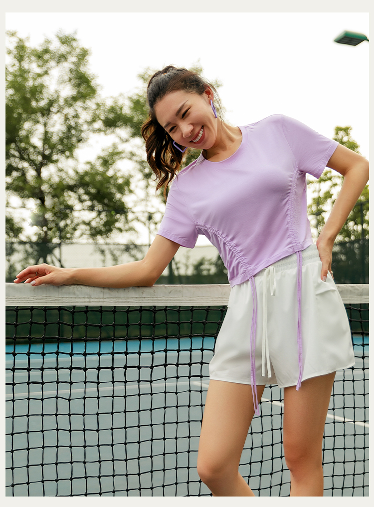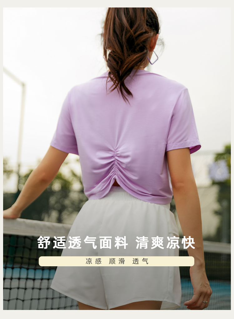 【凉感面料】宽松运动抽绳抽褶T恤短袖