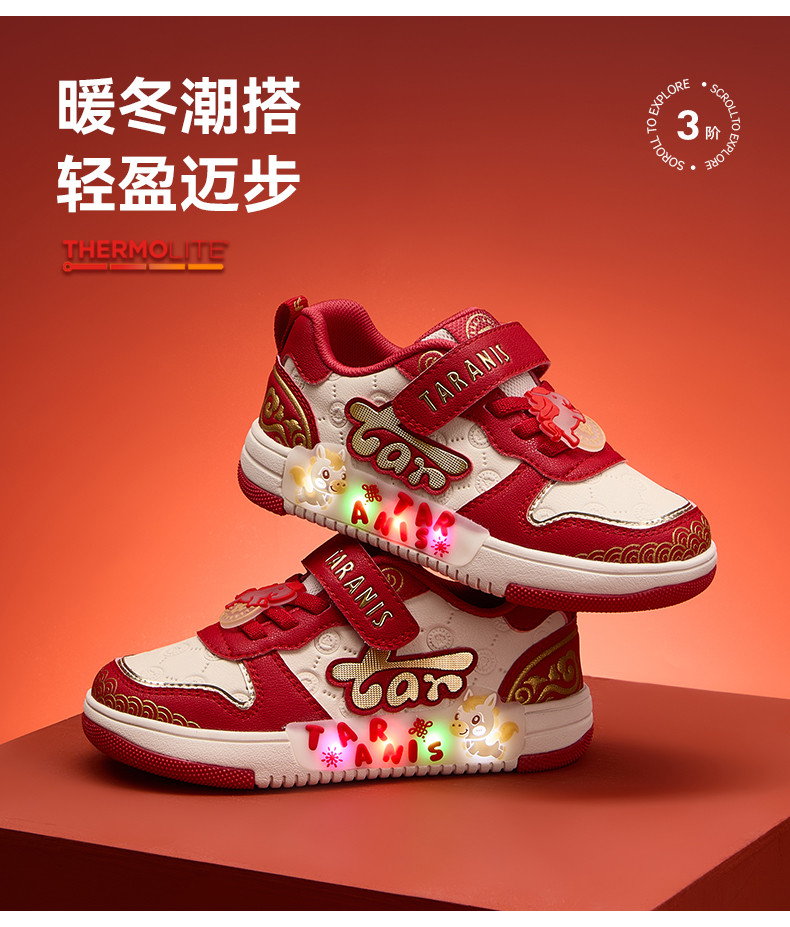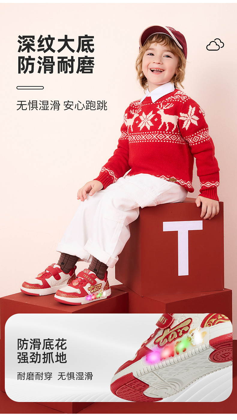泰兰尼斯金马闪灯板鞋2026新年款女男童板鞋柔软舒适板鞋儿童鞋子T02X6A8708