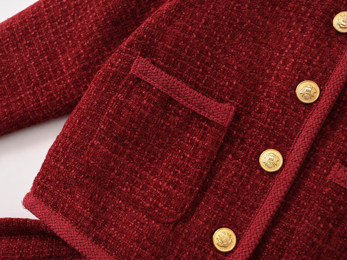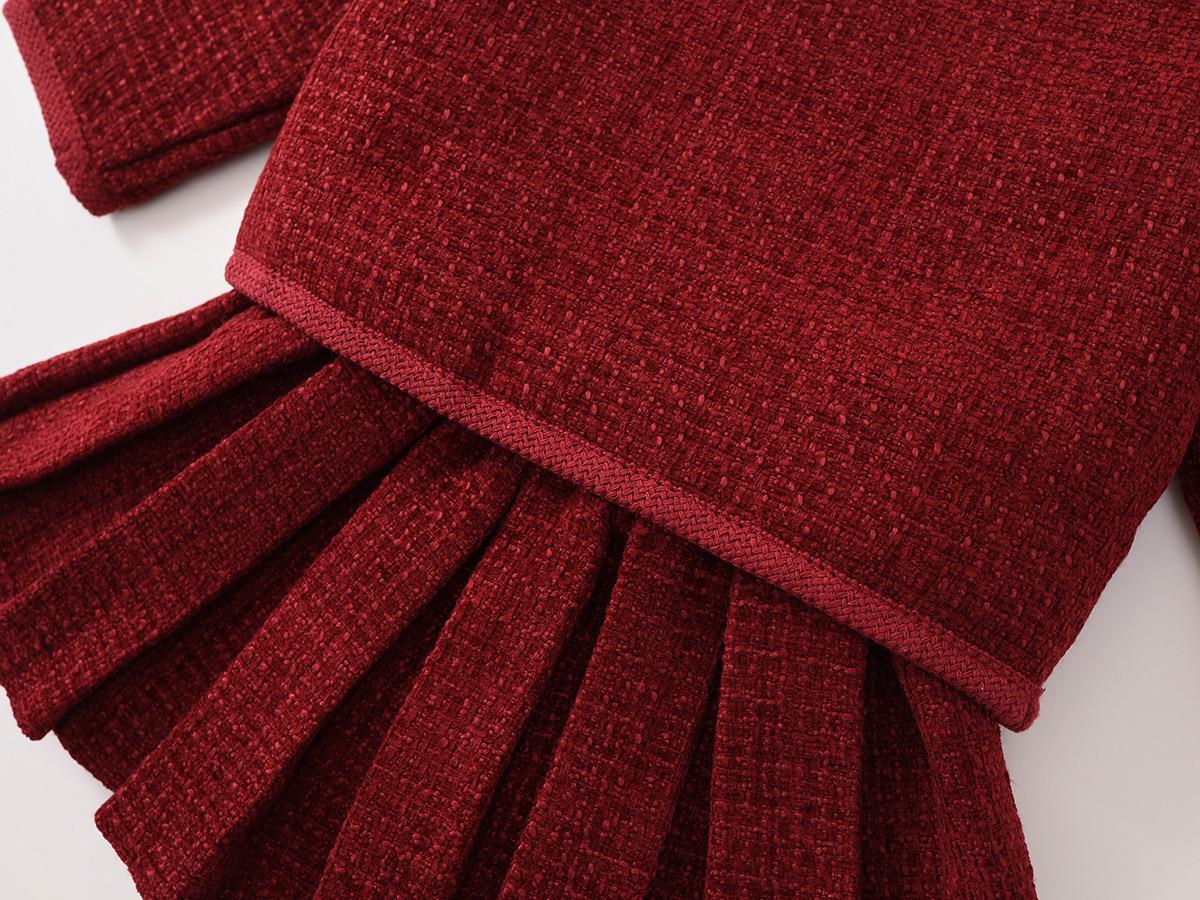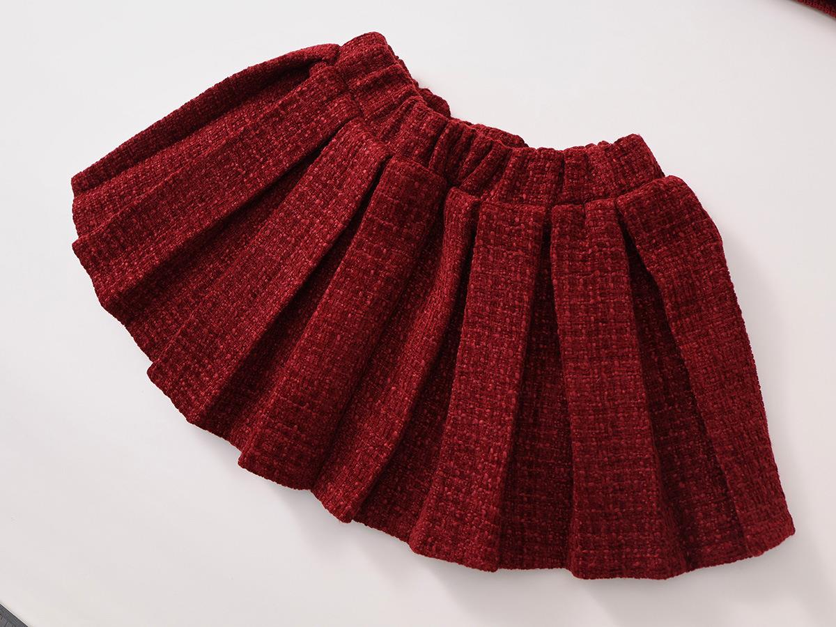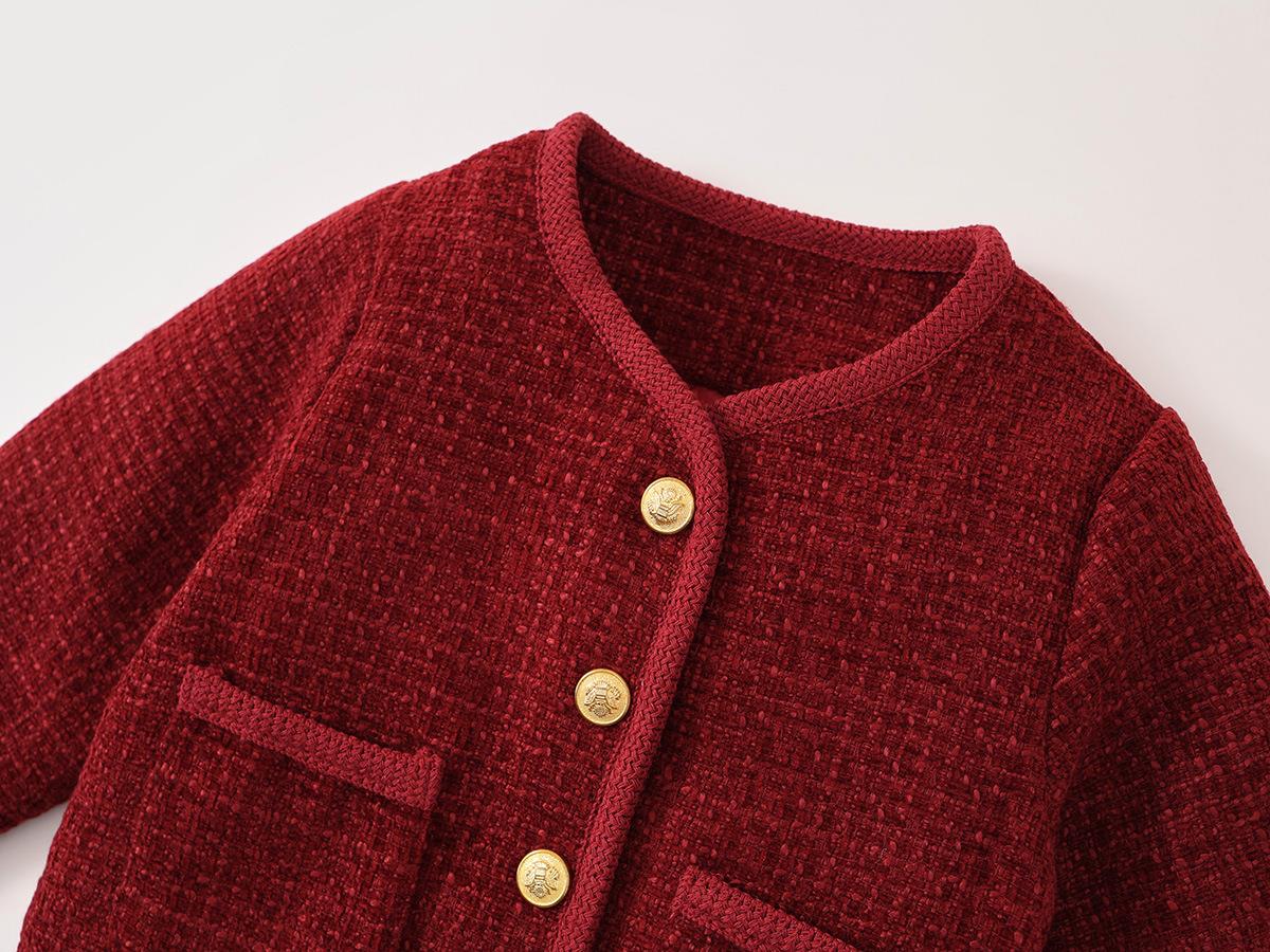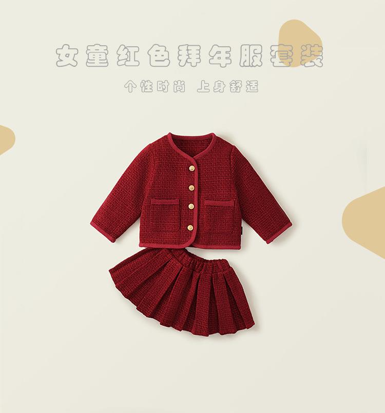 Hania2026年新年 女童夹棉加厚红色拜年服秋冬新款中小童韩版上衣百褶裙两件套90-140★