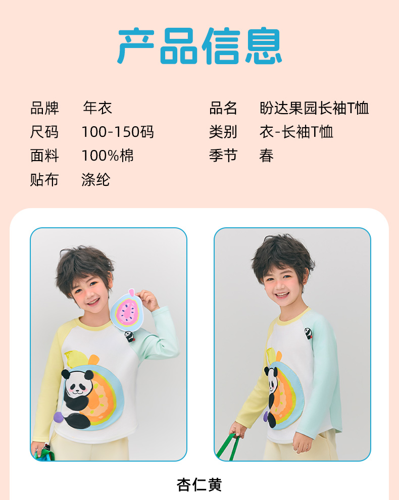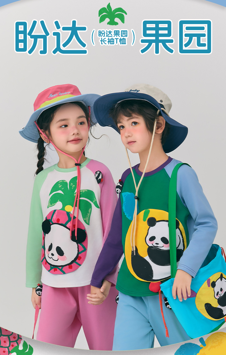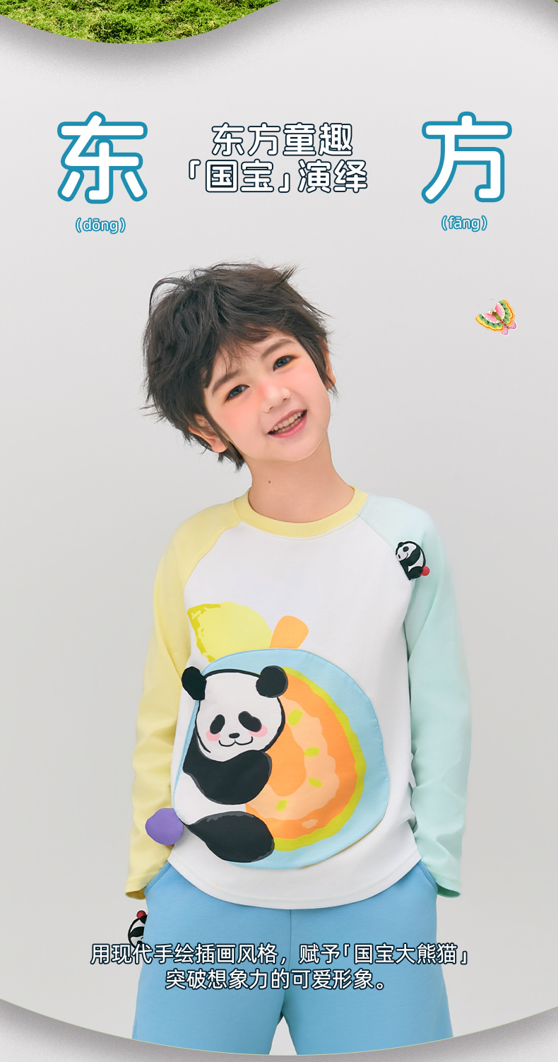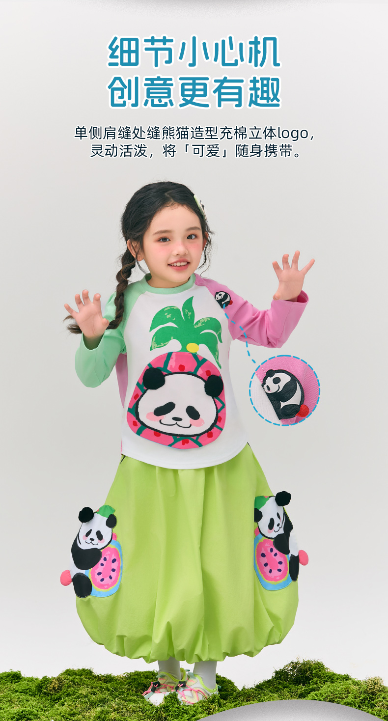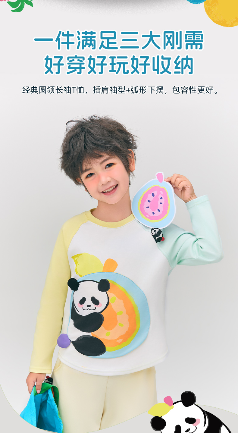 年衣童装儿童长袖T恤2025春新款女童熊猫卡通插肩袖撞色T恤上衣男盼达果园长袖T恤