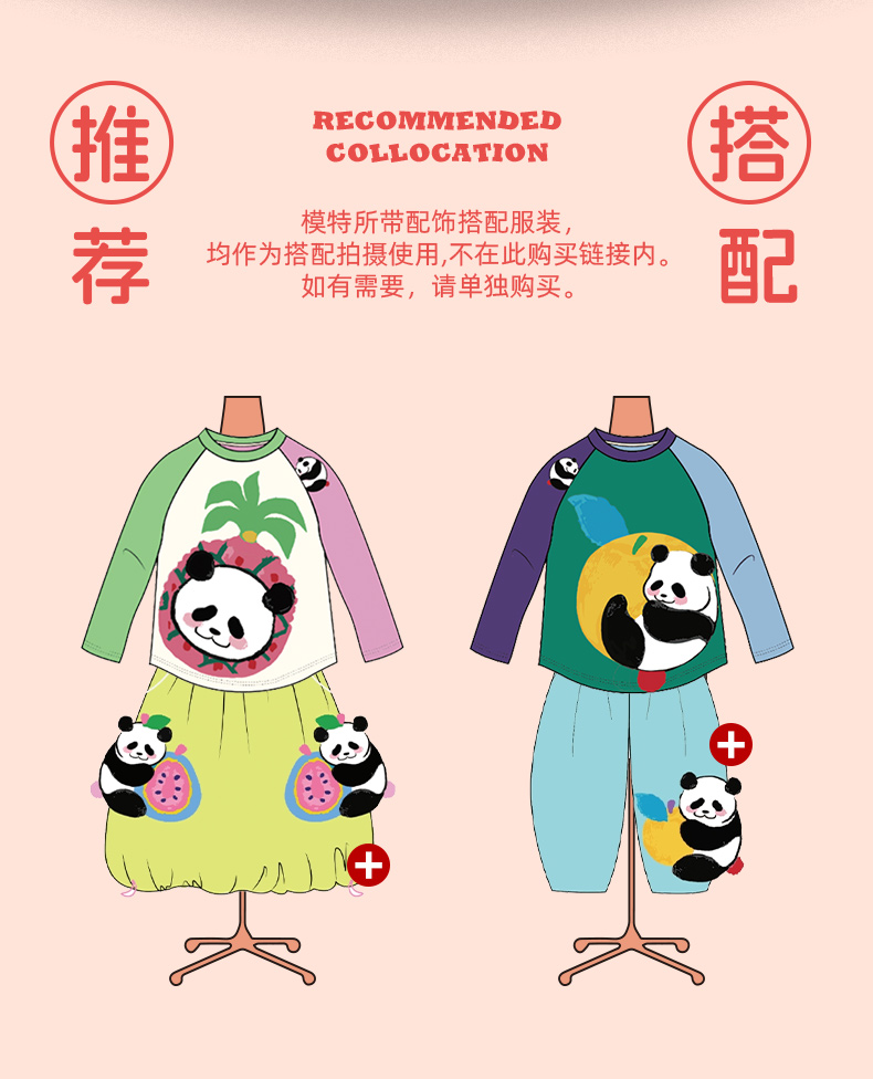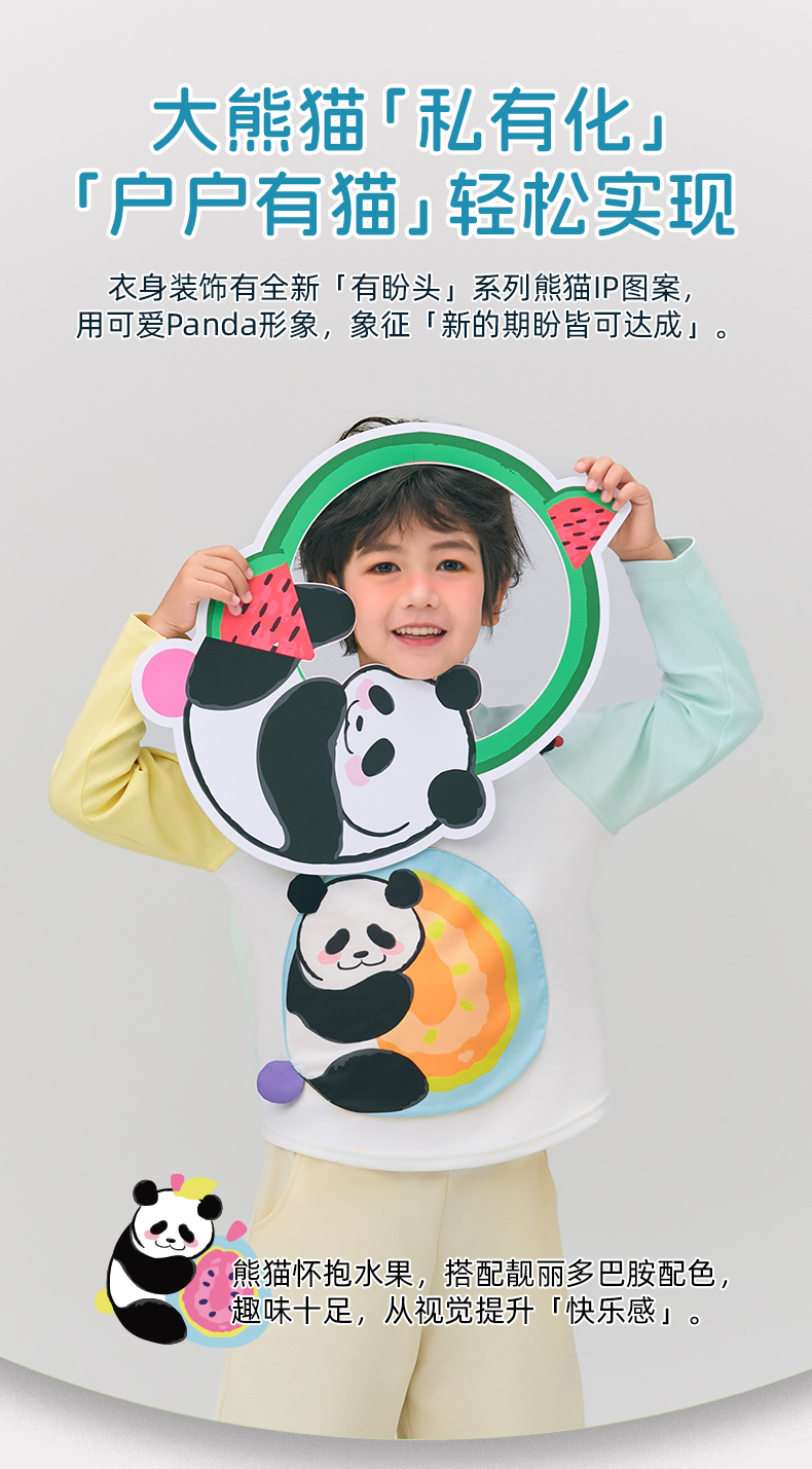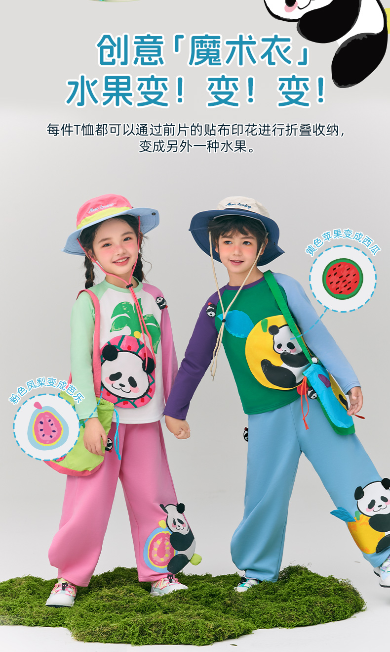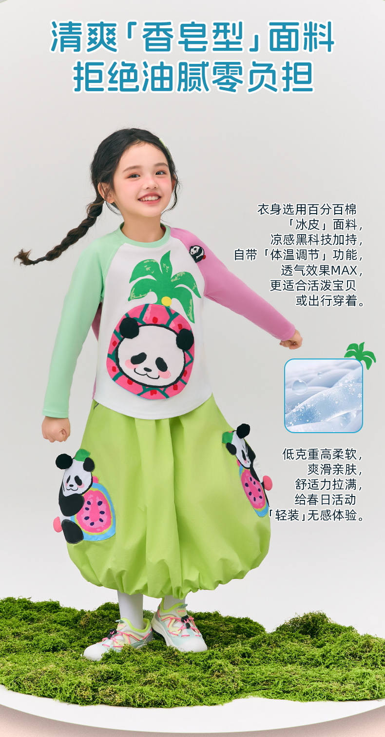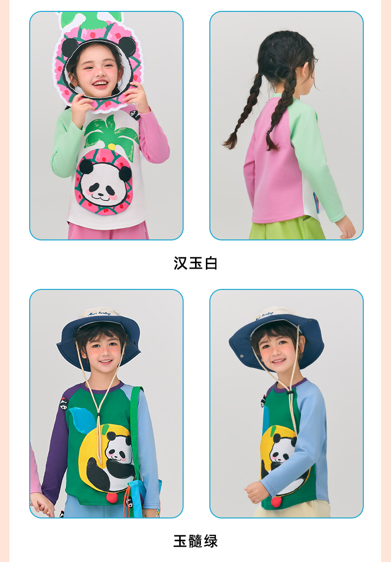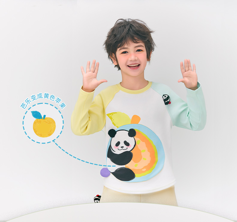 年衣童装儿童长袖T恤2025春新款女童熊猫卡通插肩袖撞色T恤上衣男盼达果园长袖T恤