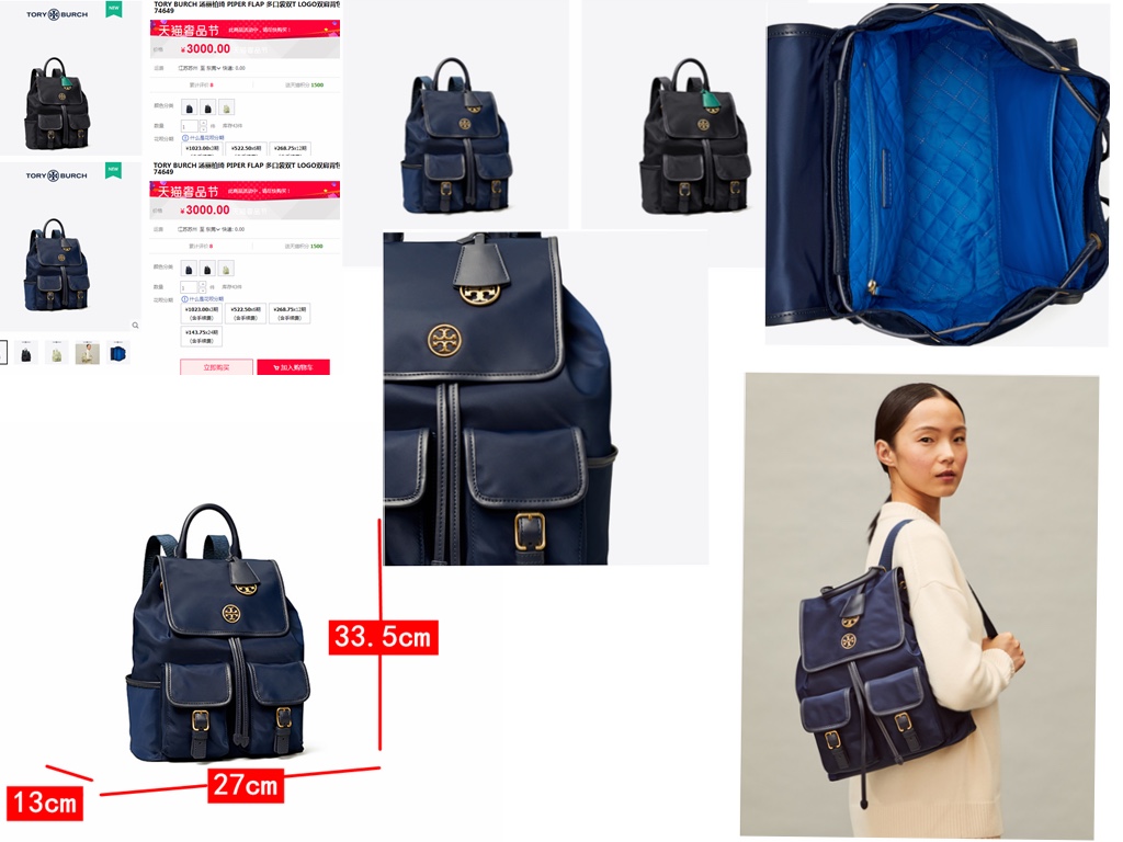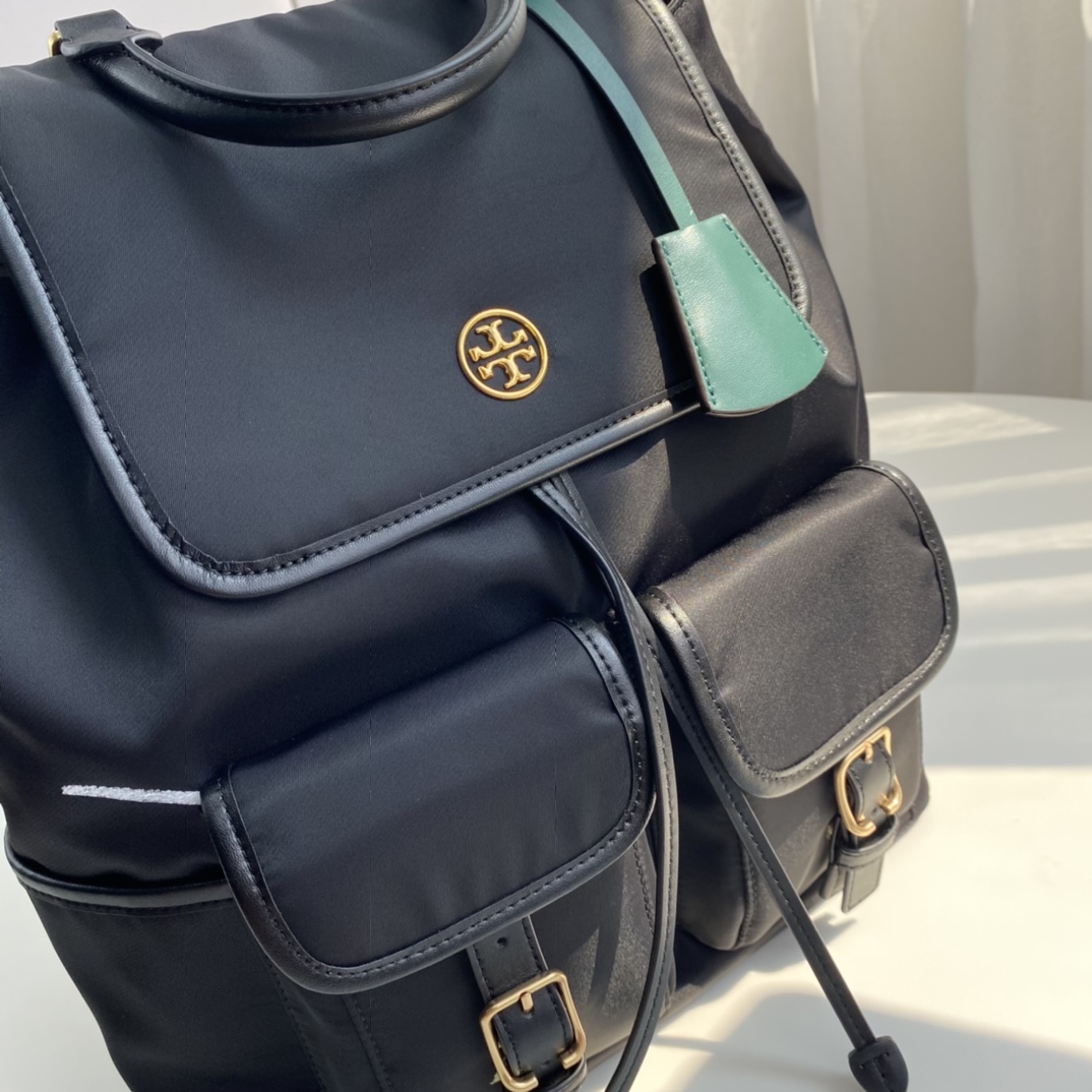 原单TB!最新款 防水尼龙配皮双肩包 女士 双肩背包 手提包 金色五金logo 大气 经典 尺寸 底长27CMX底宽13CMX高33.5CM