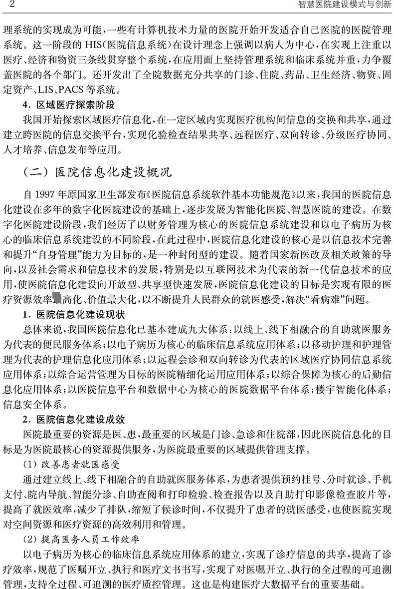 随着我国医药卫生体制改革的不断深化,卫生信息化建设得到了快速发展,医疗机构信息化水平和程度越来越高,智慧医院成为新的发展方向.本书从智慧医院概述、智慧医疗服务、智慧医院管理、智慧医院运营、信息技术支撑与安全、人工智能在医疗领域的应用、智慧医院发展与展望七个方面,系统阐述了智慧医院建设的内容和发展趋势,重点介绍了云计算、物联网、大数据、人工智能等新一代信息技术在优化就医流程、改进医疗质量、提高服务效率、保障医疗安全等方面的深入应用和实践.本书可供医院管理者、建设者、信息工作者等参考使用。