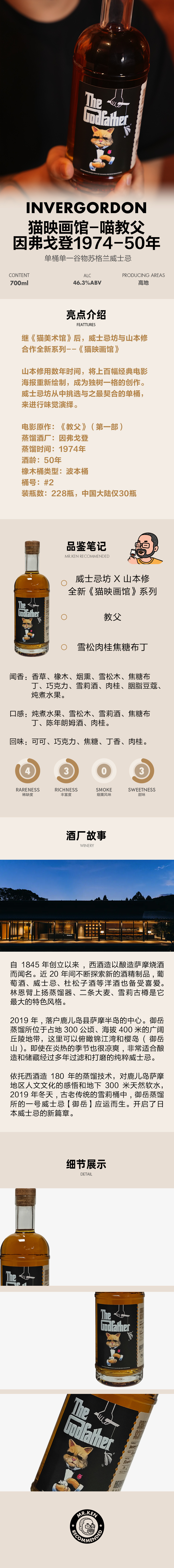 猫映画馆-喵教父-因弗戈登(Invergordon)1974-50年单桶单一谷物苏格兰威士忌