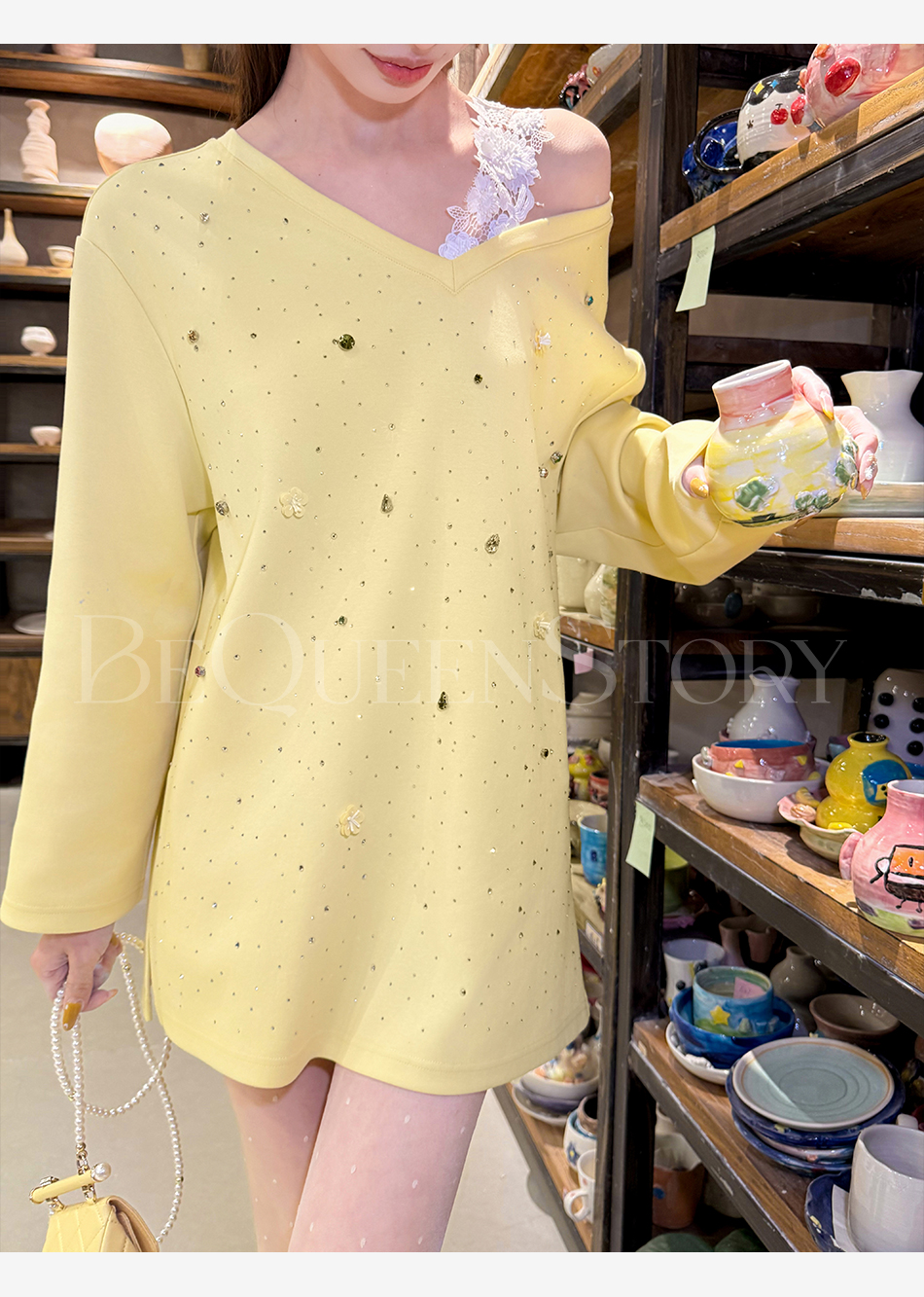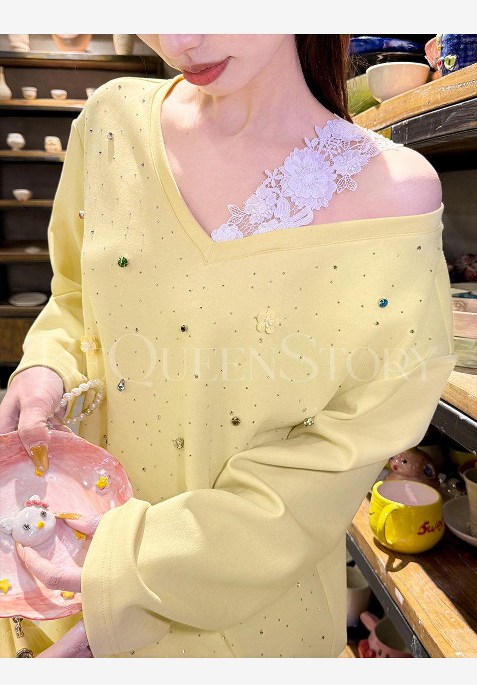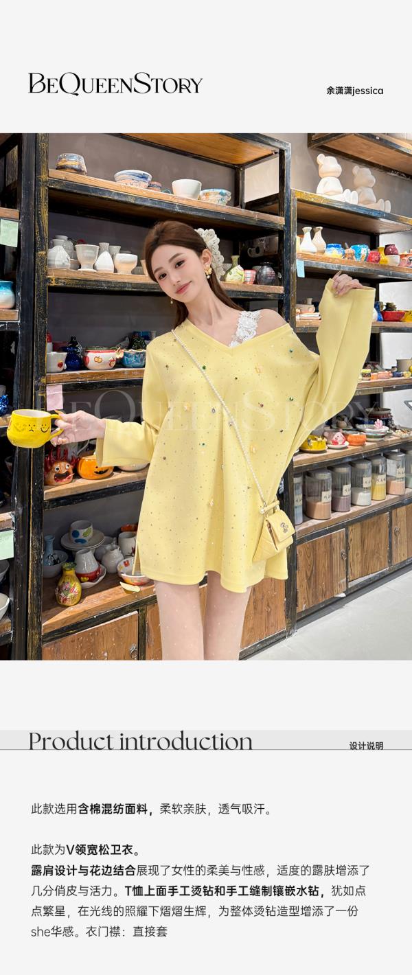 韩韩IU【柠檬花屿】2025春装新款时尚百搭柔软亲肤V领女式宽松卫衣