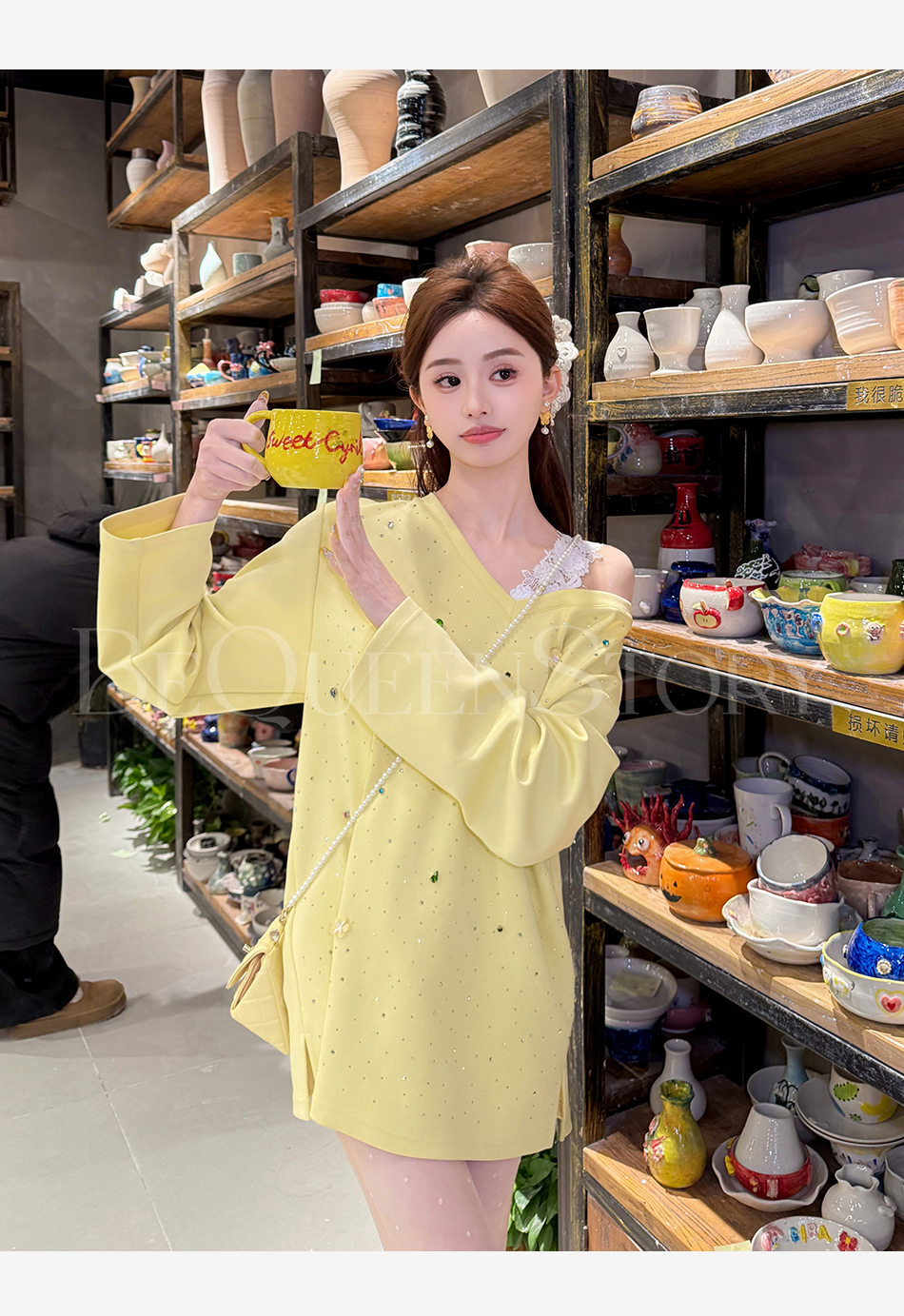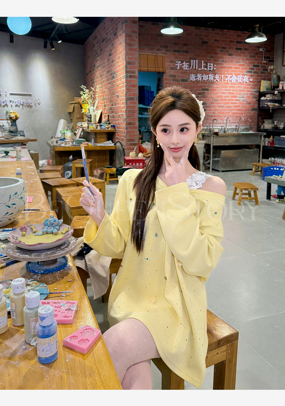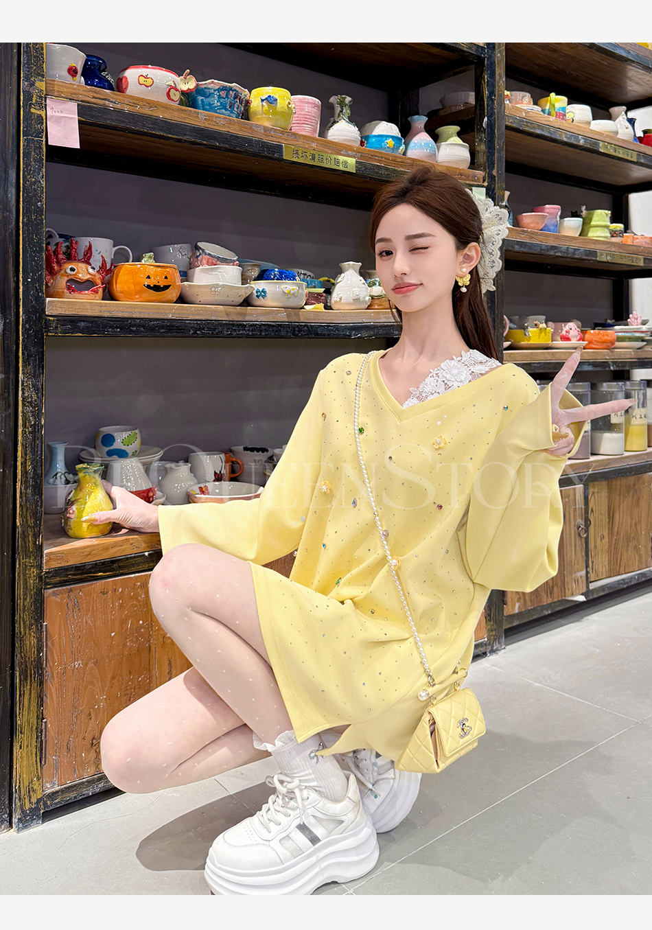 韩韩IU【柠檬花屿】2025春装新款时尚百搭柔软亲肤V领女式宽松卫衣