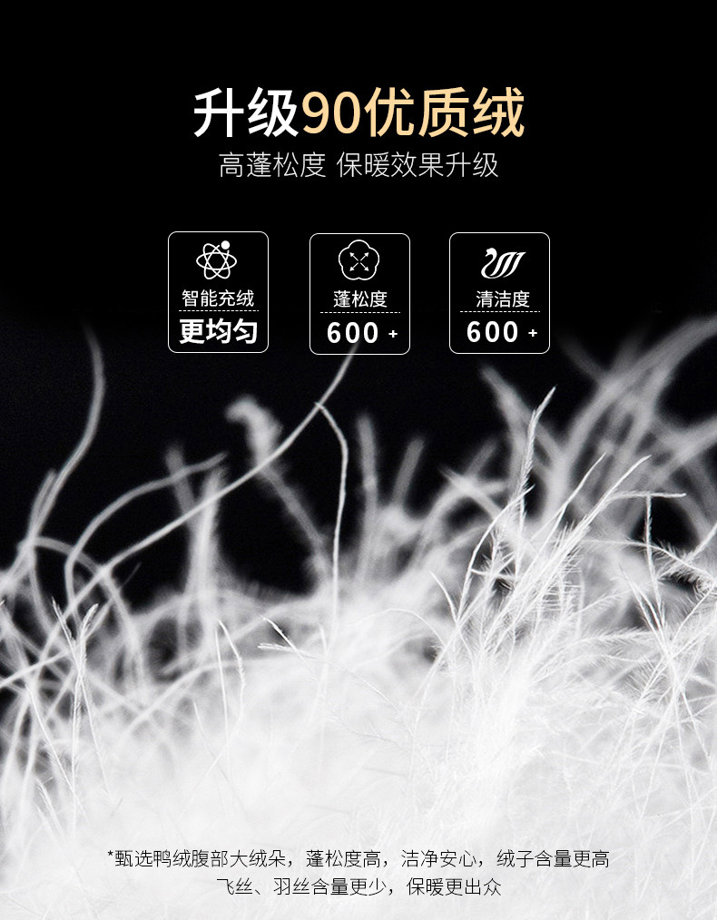 ✅90品质鸭绒填充,甄选胸腹质检的大朵绒,品质保障。