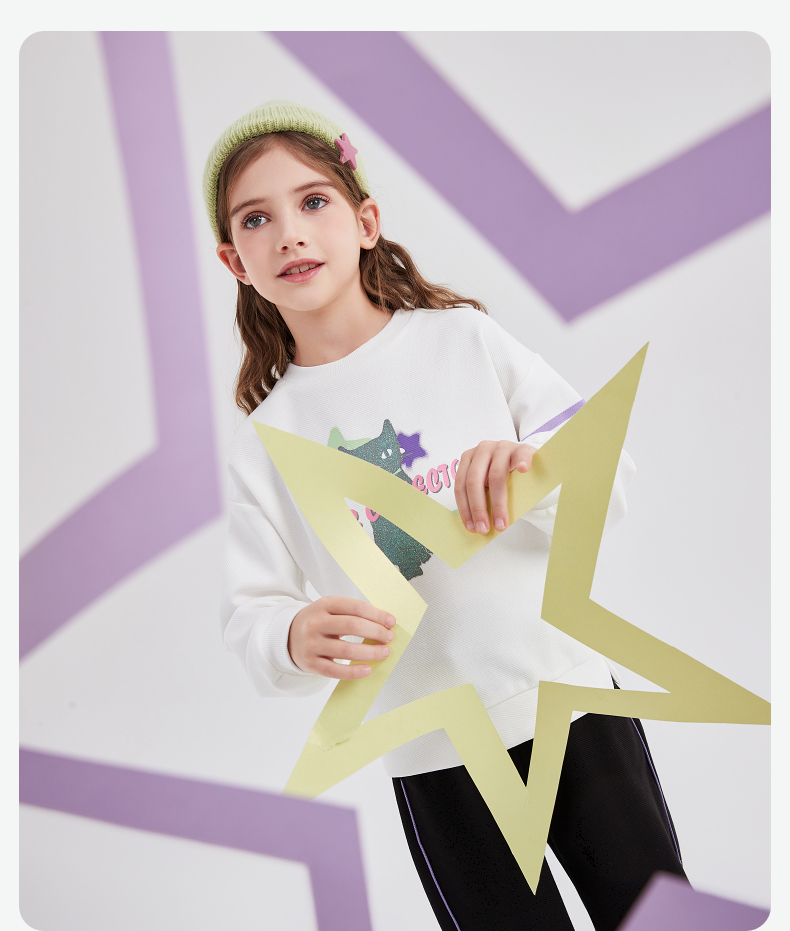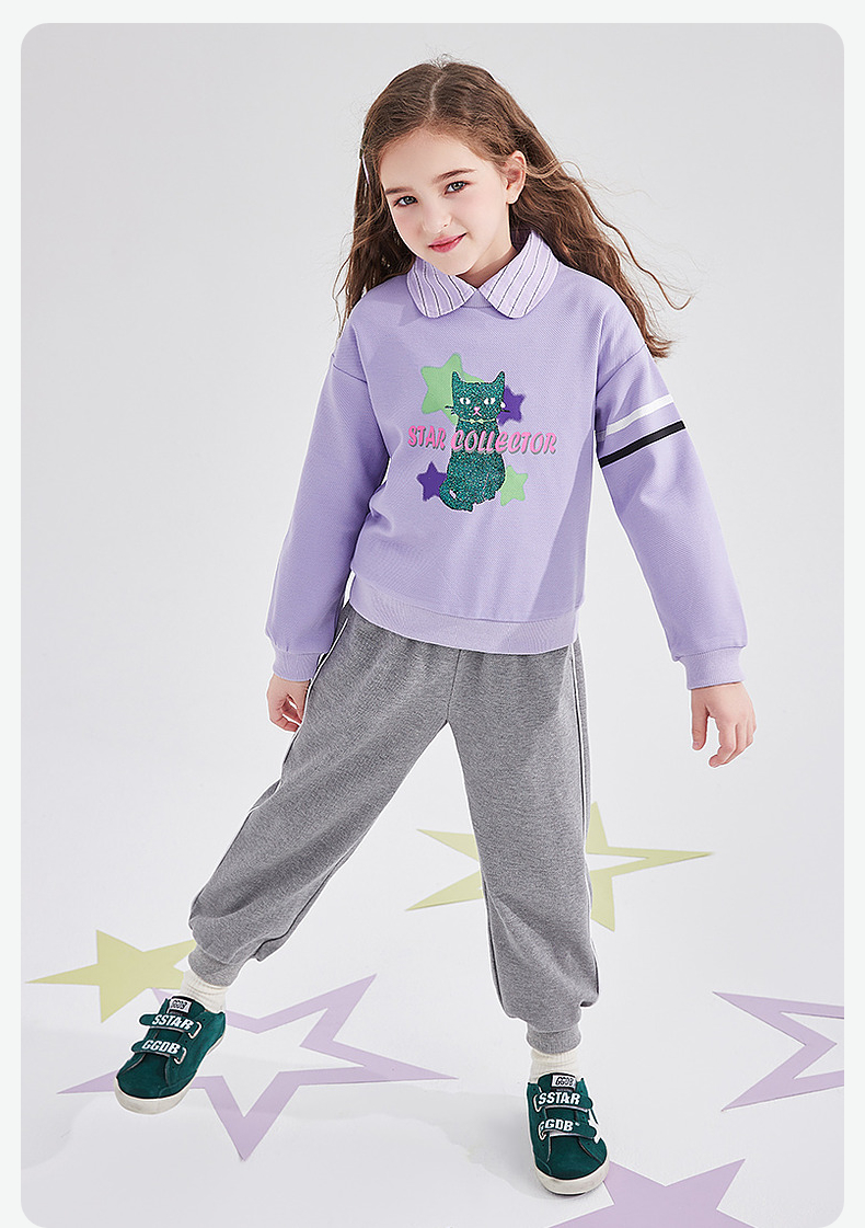 笛莎Deesha 童装女童卫衣2026春新款精致小图案圆领卫衣