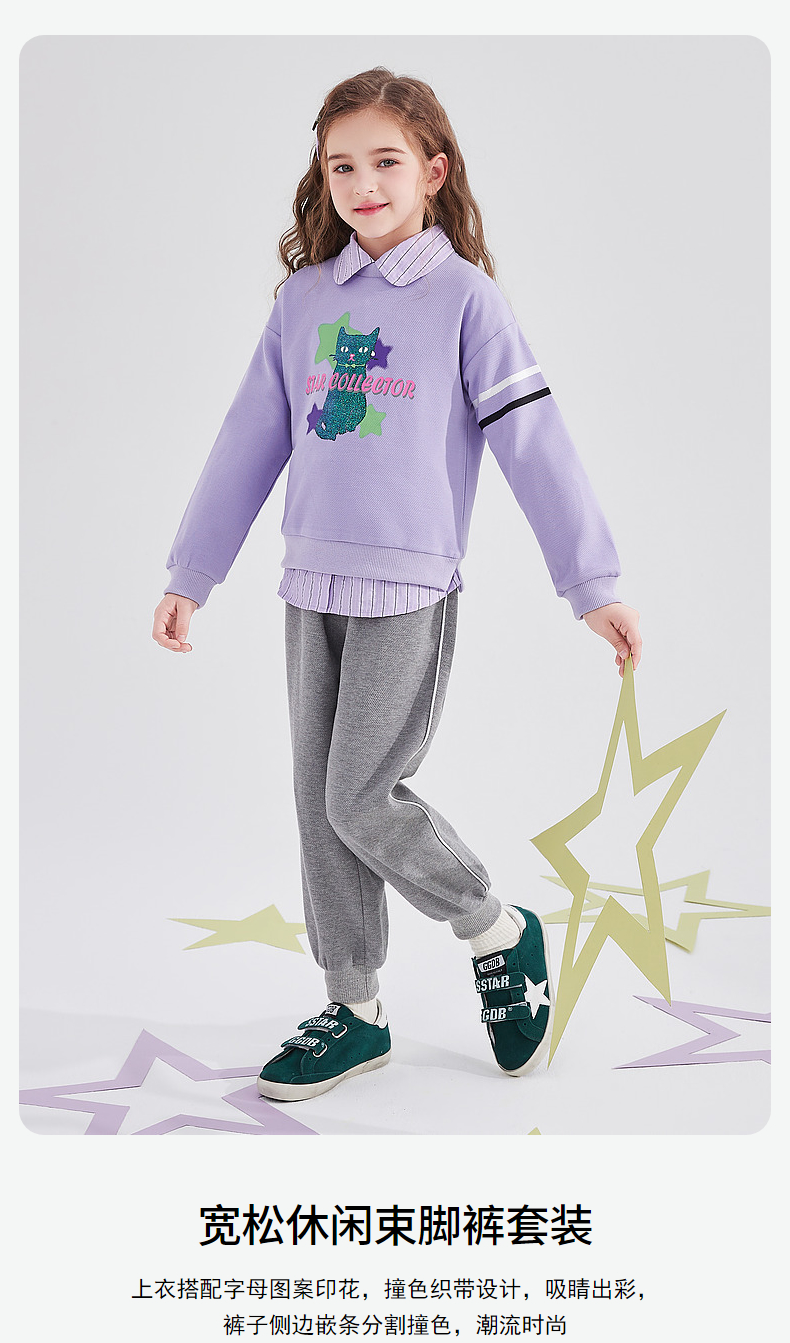 笛莎Deesha 童装女童套装2025秋新款女童字母棒球服外套套装