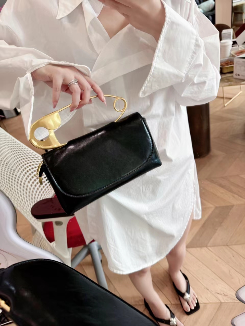 清仓捡漏 LINCHAOZHANG私服定制系列 LC240371 不规则衬衫裙2024026S 醋酸发夹
