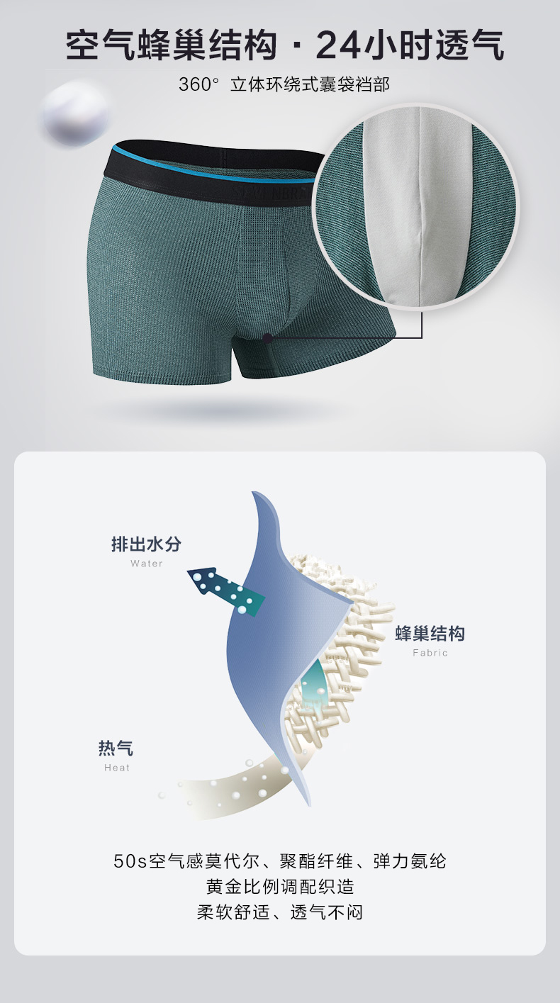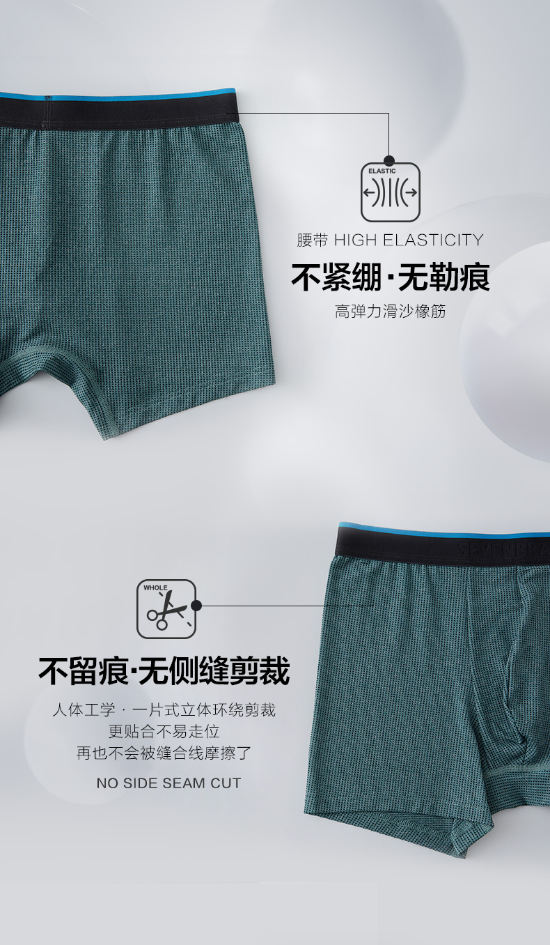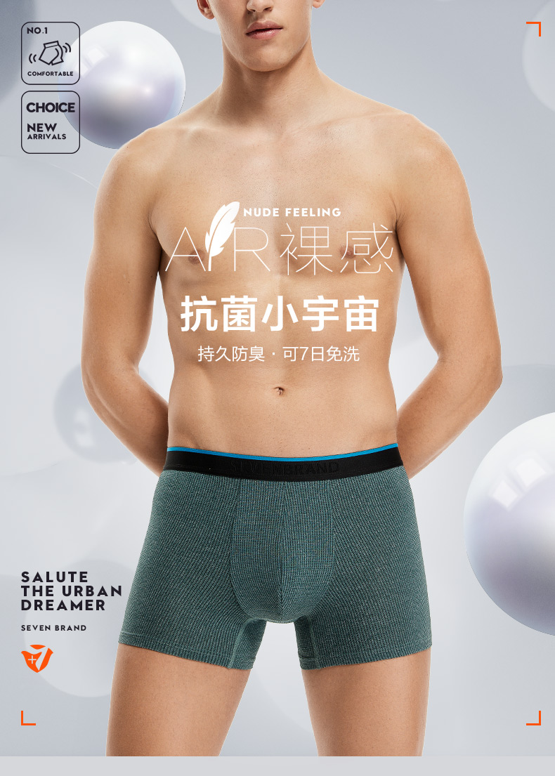 【特价礼盒2条装】柒牌男士2条礼盒装内裤男平角裤冰丝透气网眼新款抗菌短裤衩 118F70030