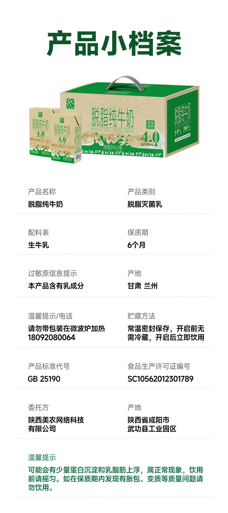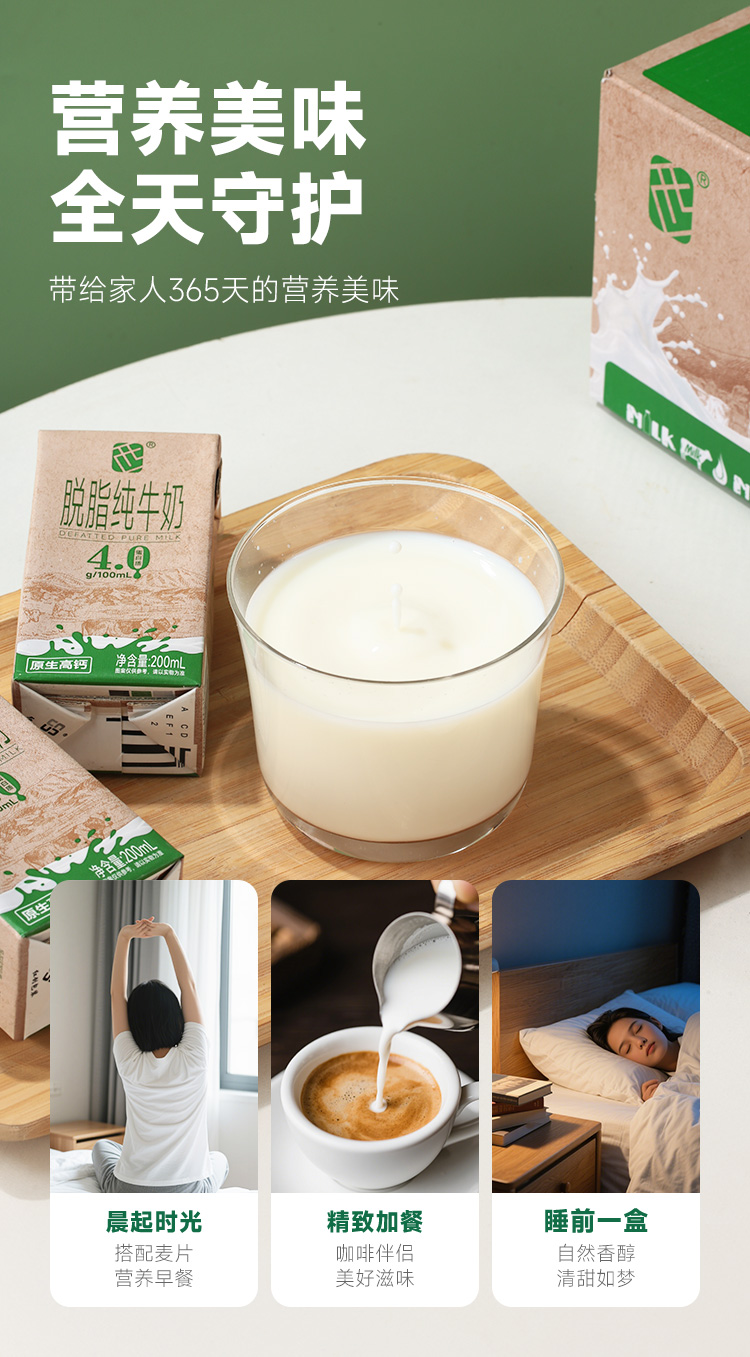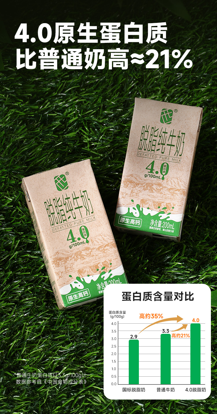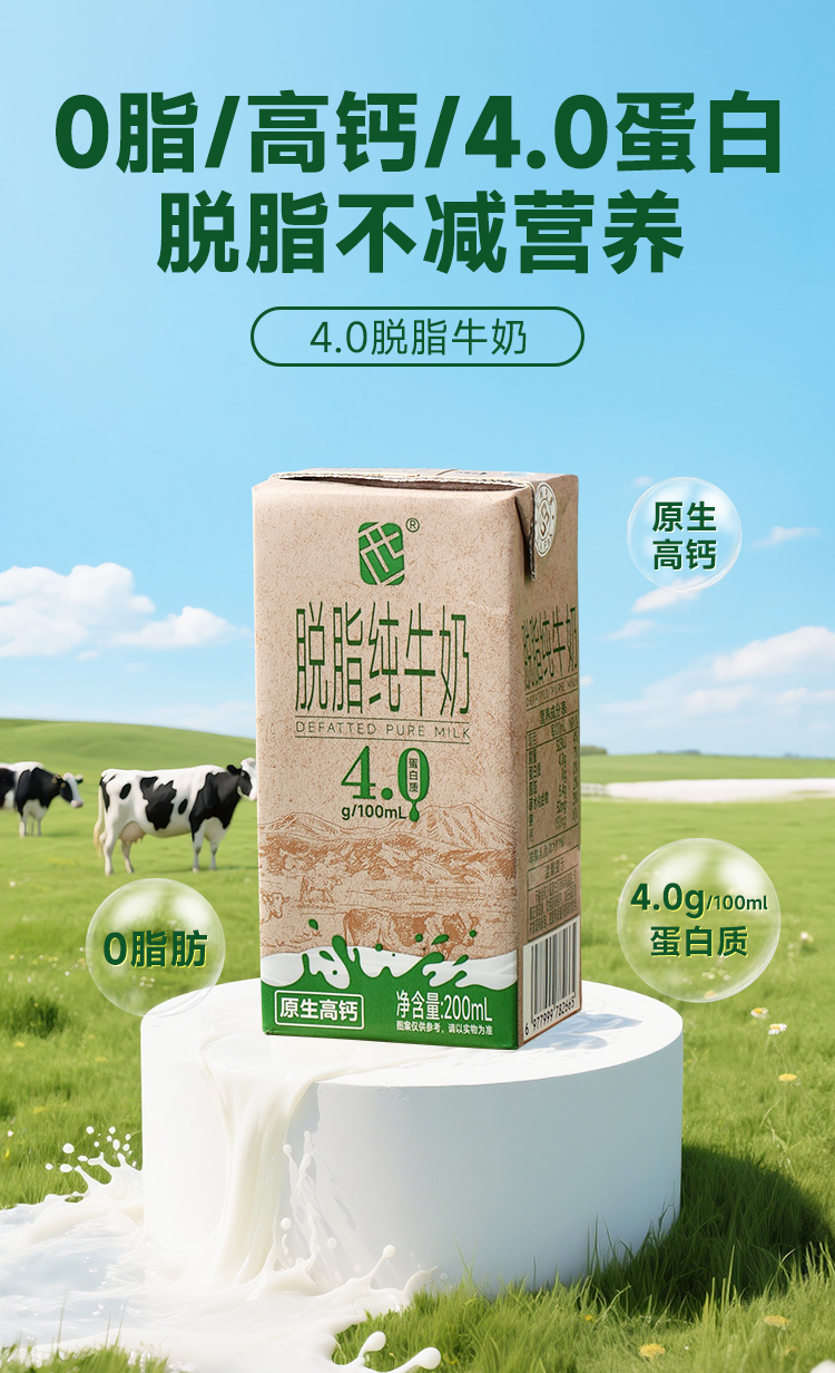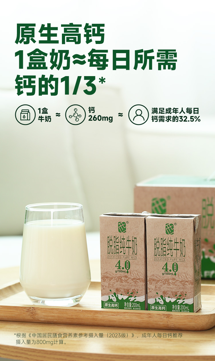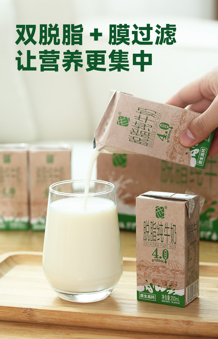 西域美农 脱脂牛奶 4.0g蛋白 130mg钙 0脂的黄金组合 200ml*10盒/箱 普通快递发货