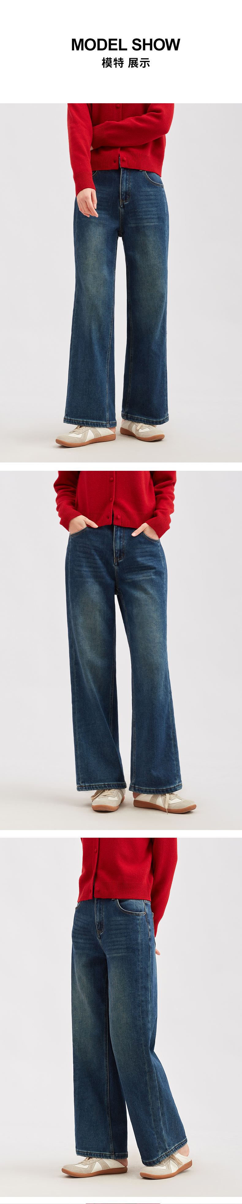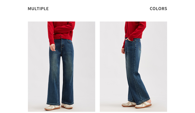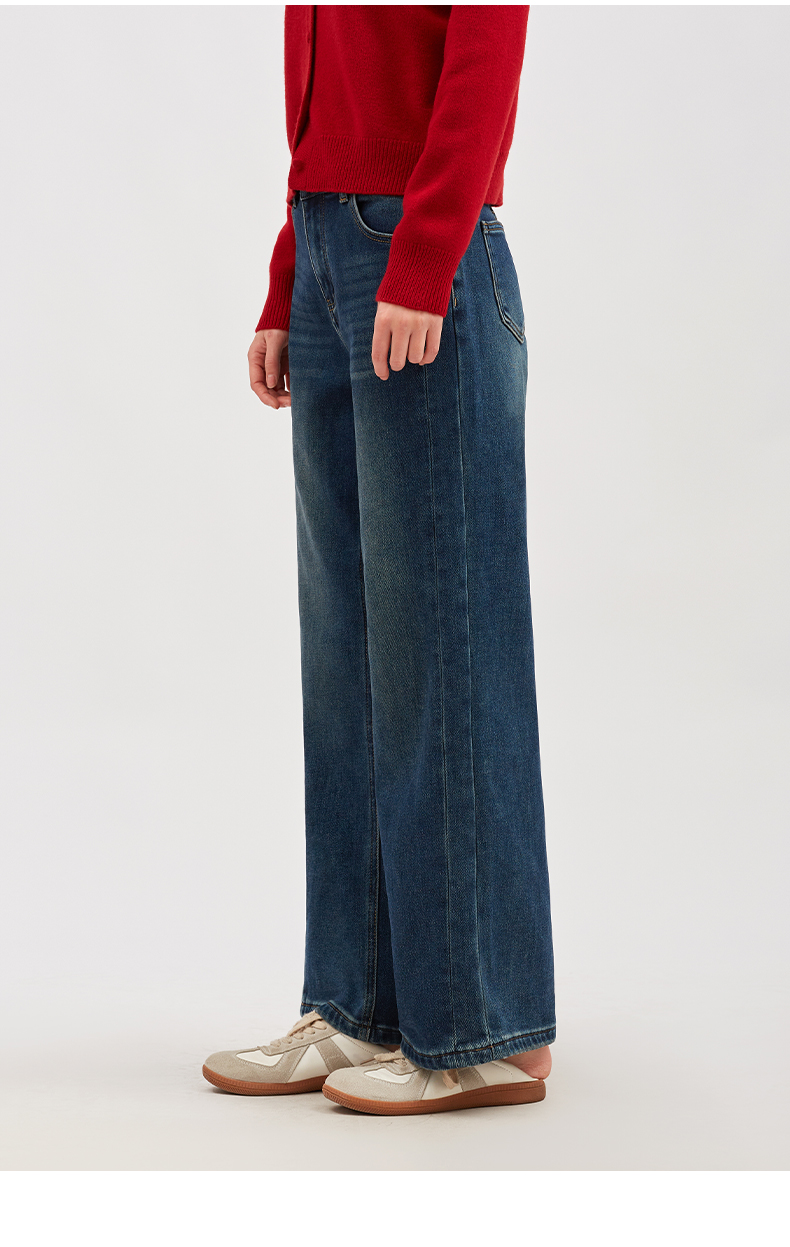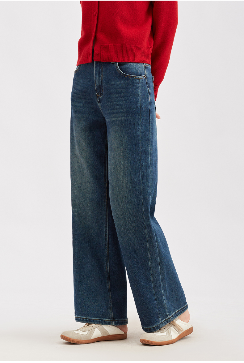 【淘衣节专享】阿菁娜冬季新款经典石磨水洗加绒复古高腰牛仔裤直筒阔腿裤遮肉显瘦F30D210033