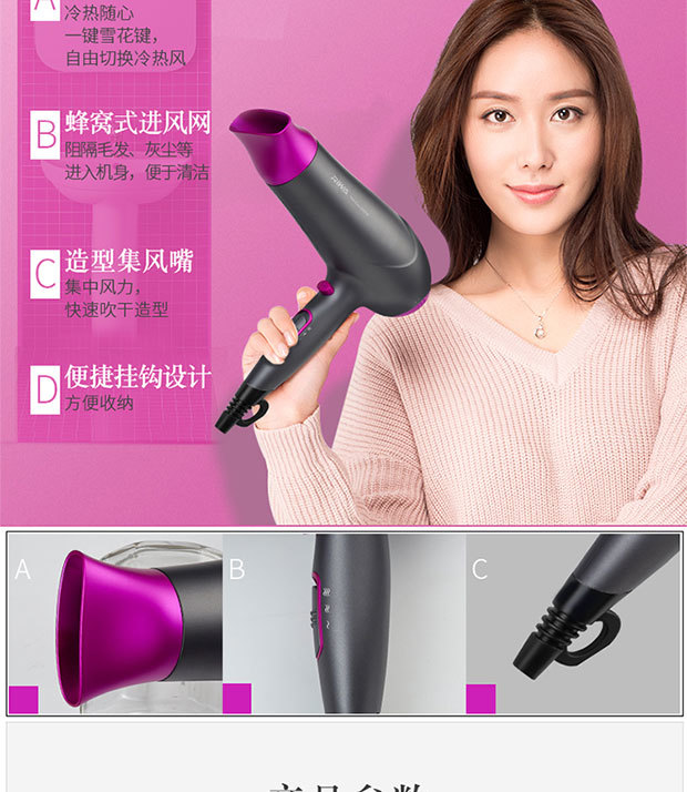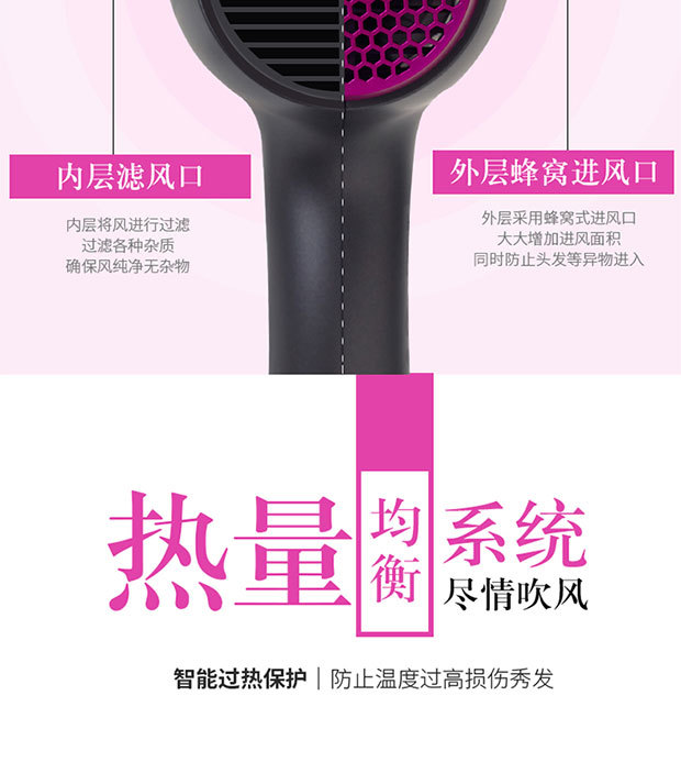 雷瓦(RIWA) 电吹风机 家用负离子2200W大功率快速干发吹风筒 RC-7166 商品图4