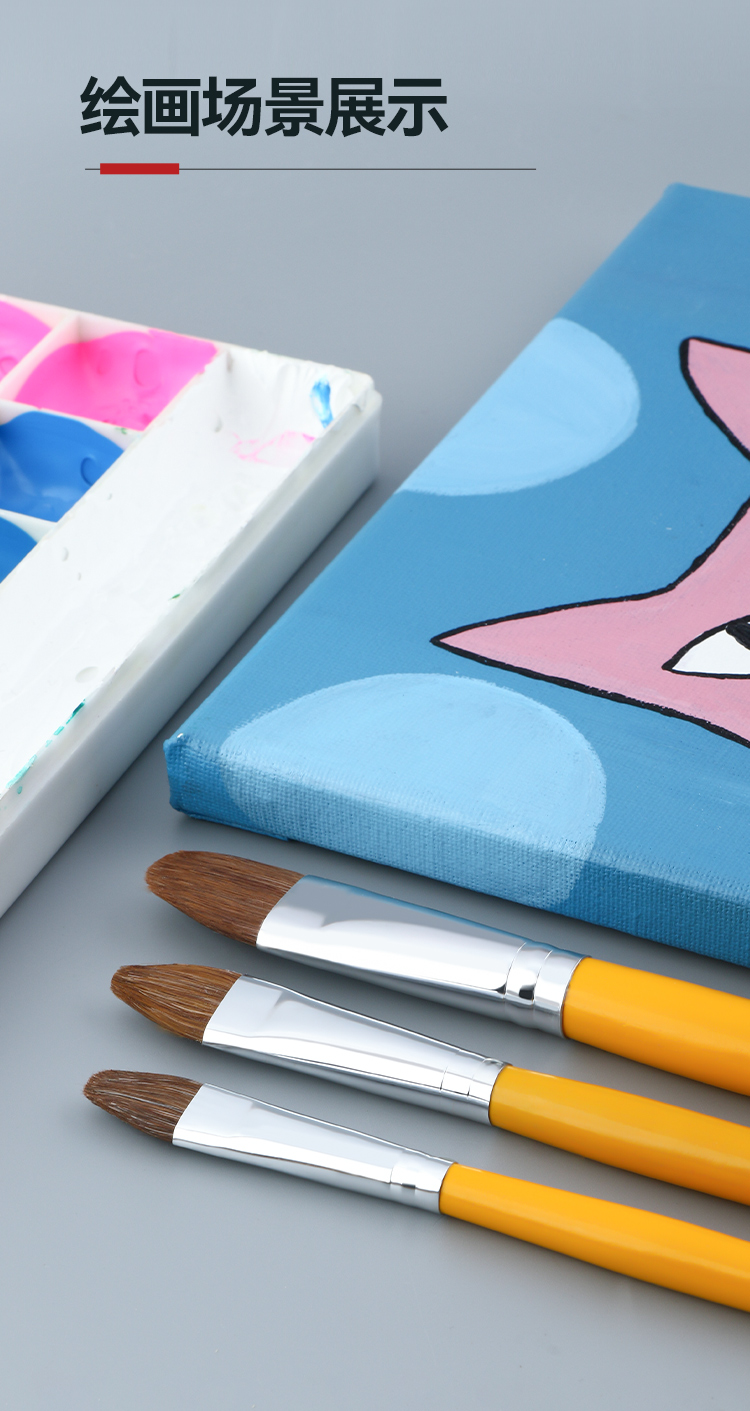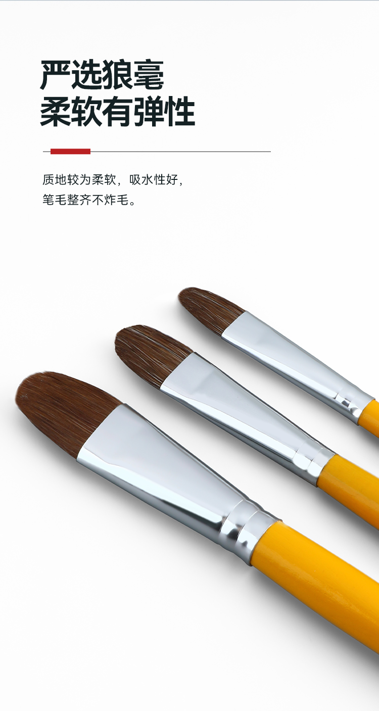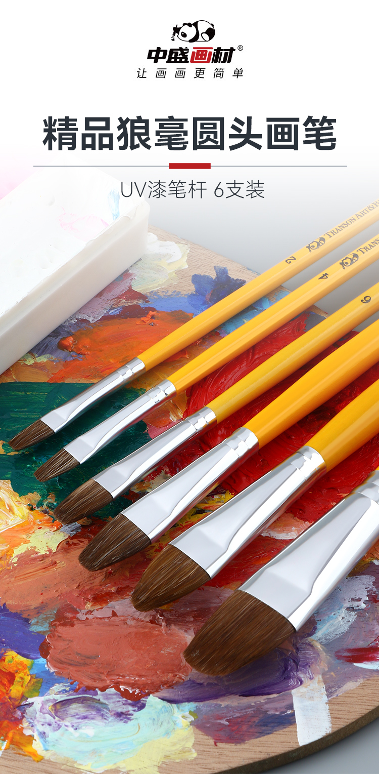 中盛画材826水粉笔狼毫6支排笔画笔套装丙烯水彩油画颜料专用笔平头笔美术绘画用品专用画具画材儿童