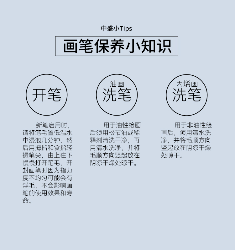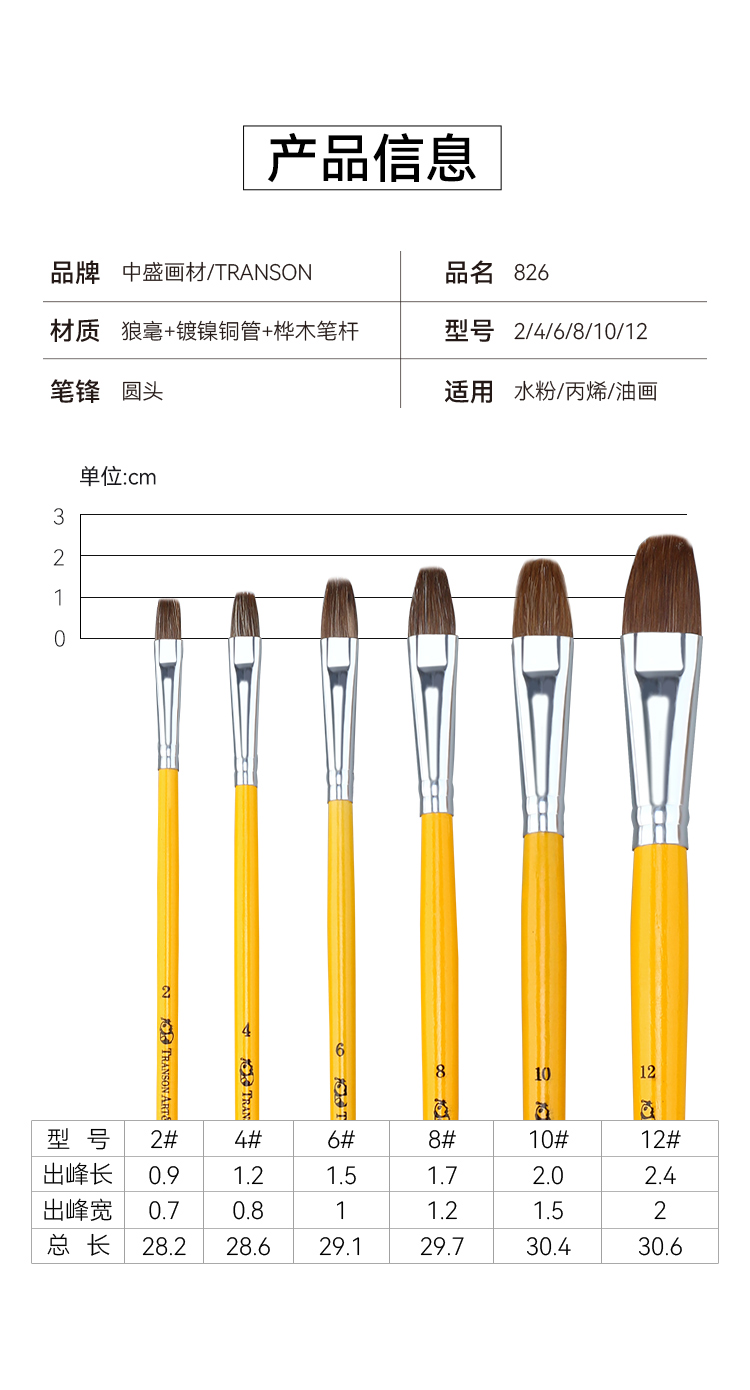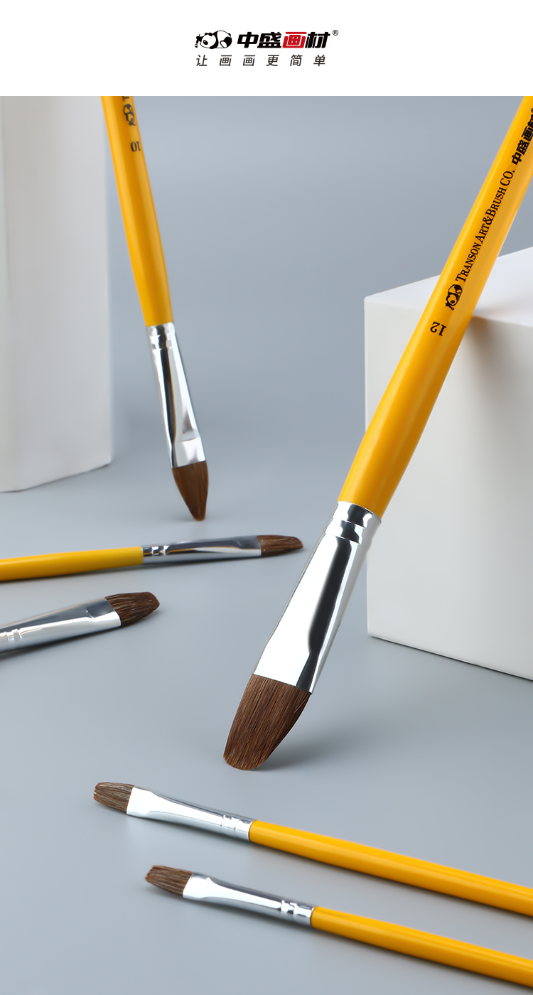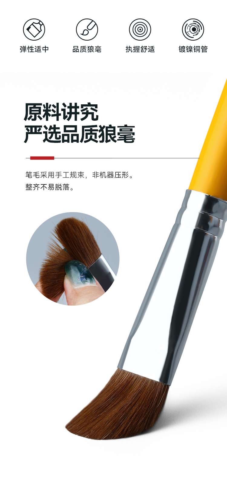 中盛画材826水粉笔狼毫6支排笔画笔套装丙烯水彩油画颜料专用笔平头笔美术绘画用品专用画具画材儿童