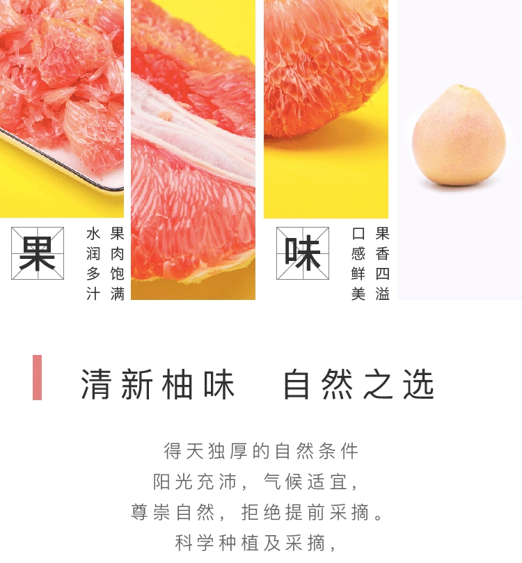 三红柚是脆甜口感,带有点点水果本身的果酸,是正常现象,不属于售后范围。