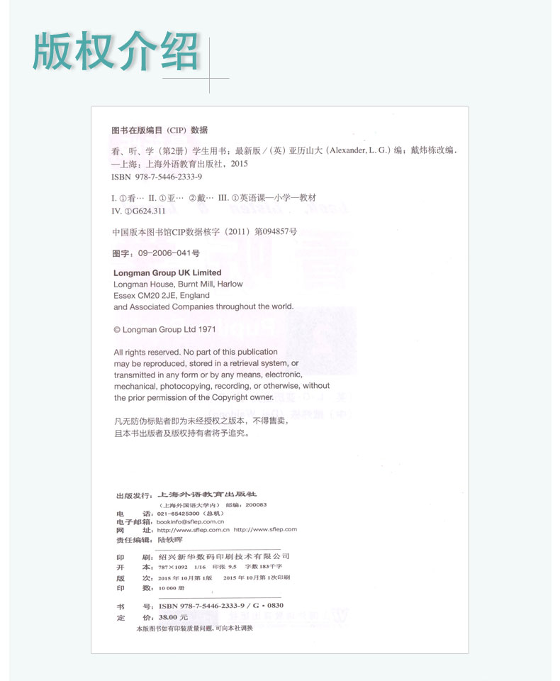新版 看听学(2)学生用书 附光盘 贴近学生生活、图文并茂、编排新颖、语音纯正 上海外语教育出版社