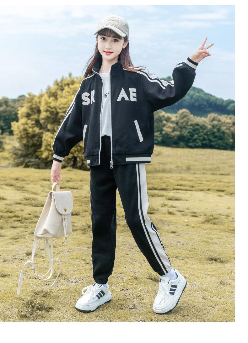 女童套装春装2024新款网红洋气中大童春秋时髦休闲运动两件套