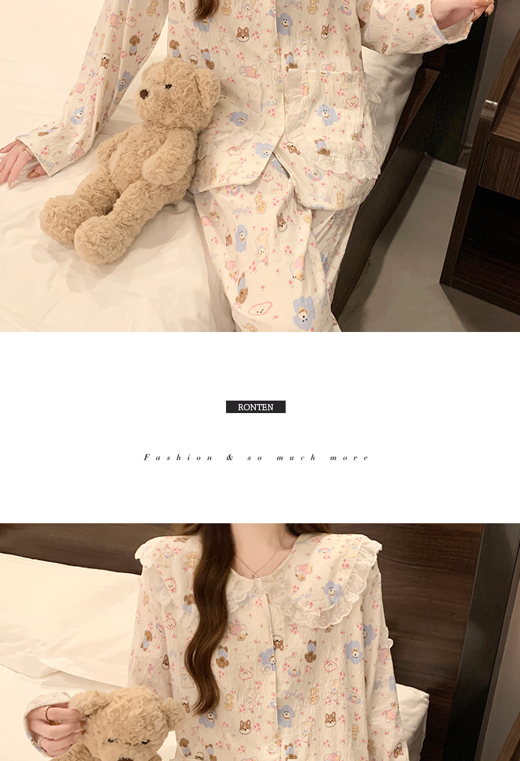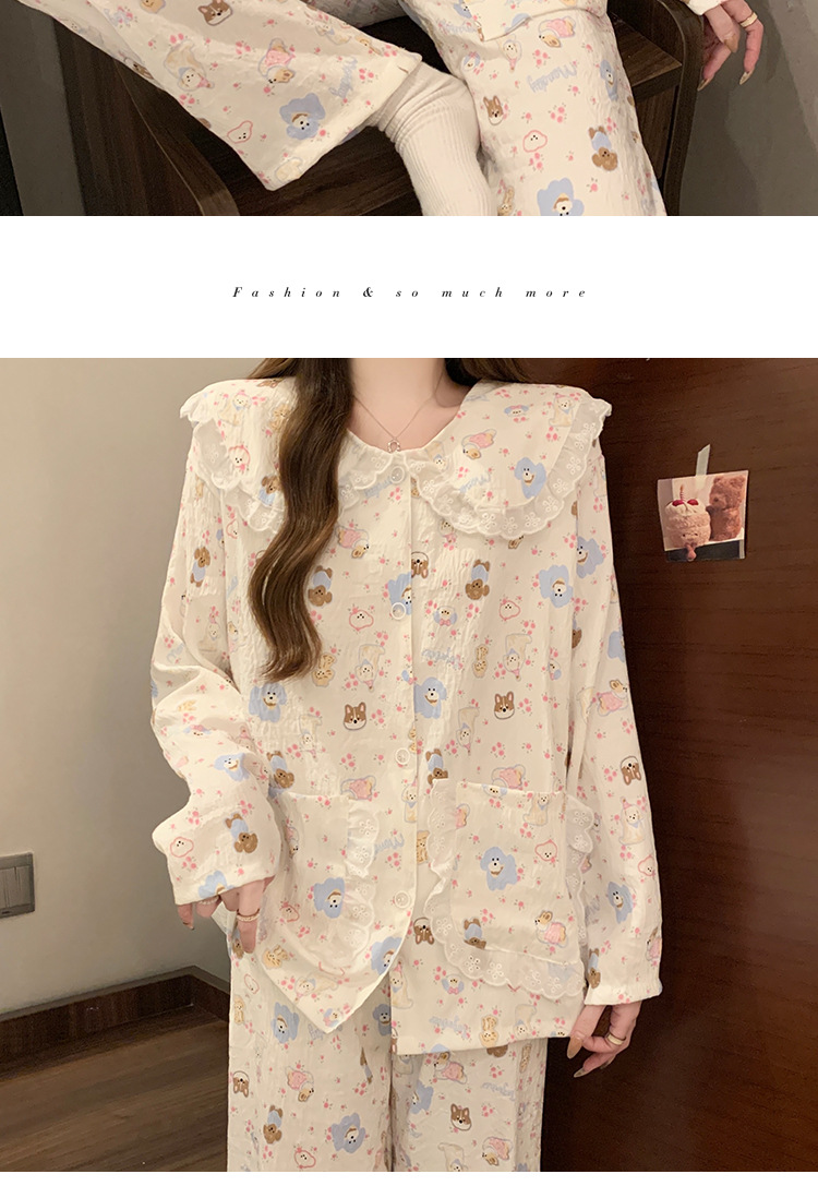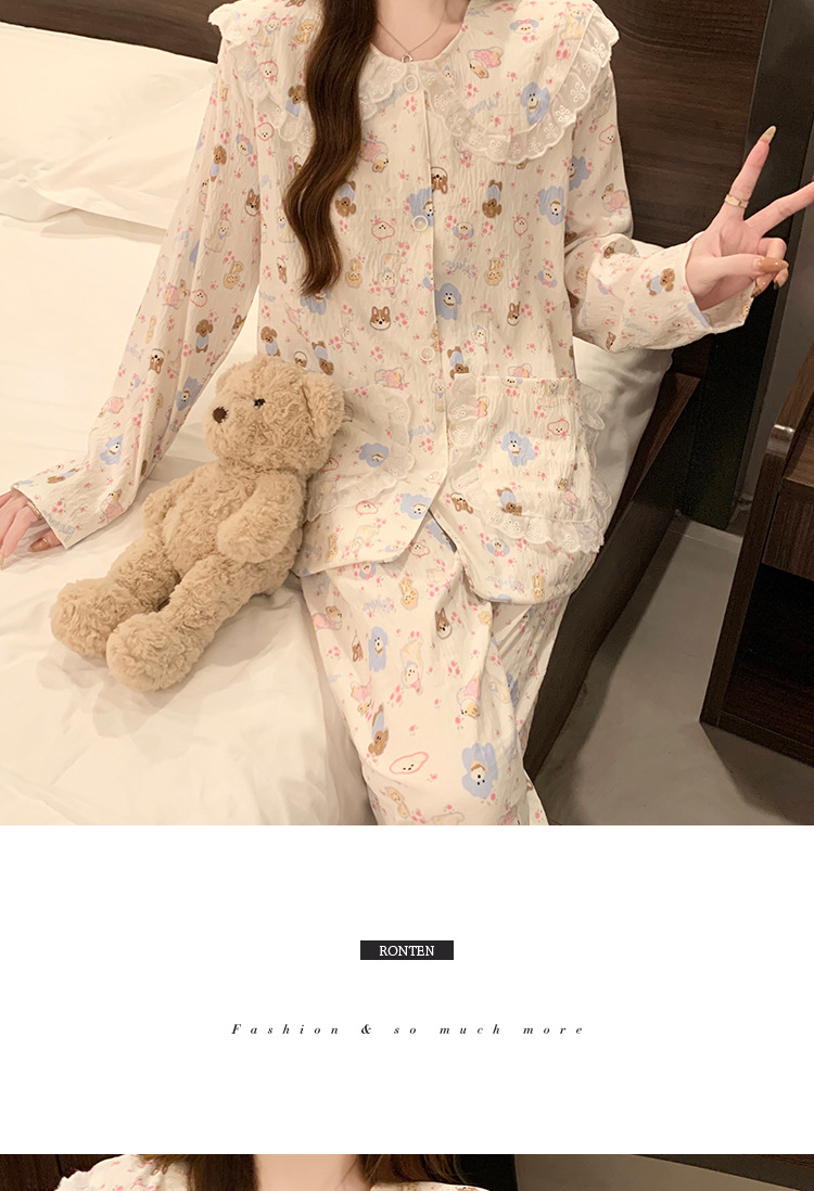 【趣味俏皮】新款卡通花边娃娃领云朵棉长袖睡衣女春秋款冬季甜美风家居服。rb 商品图10