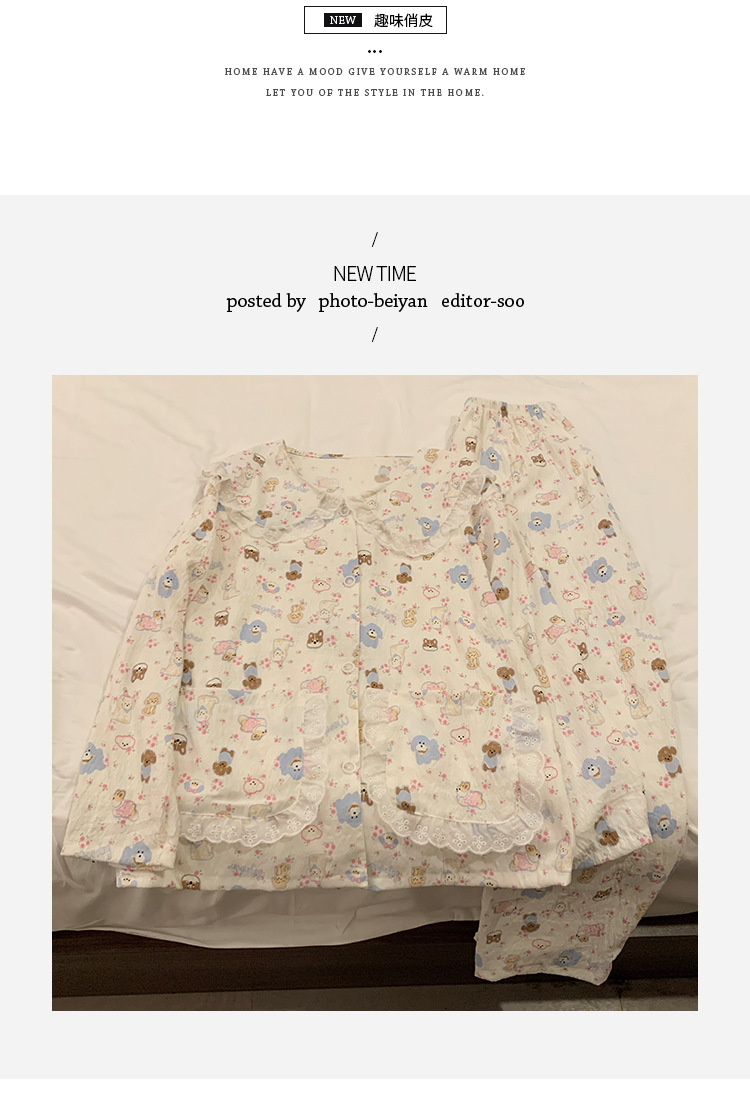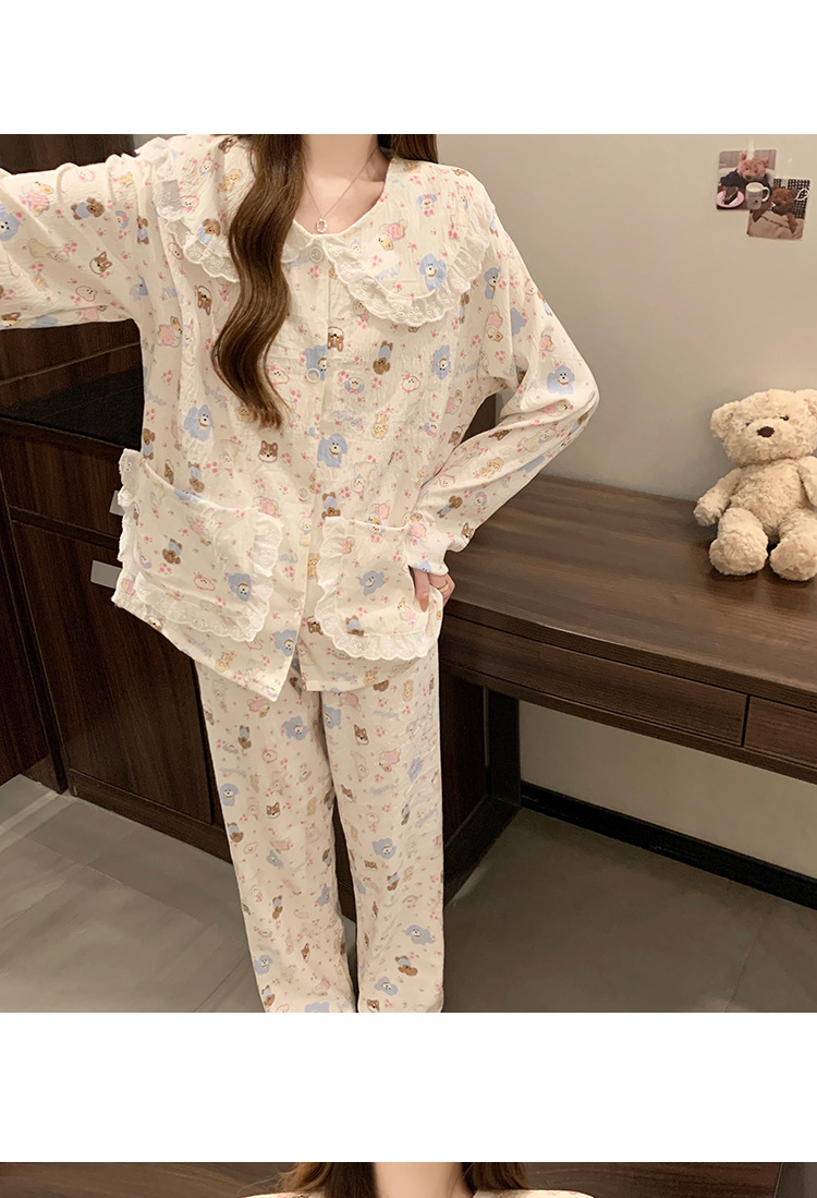 【趣味俏皮】新款卡通花边娃娃领云朵棉长袖睡衣女春秋款冬季甜美风家居服。rb 商品图11