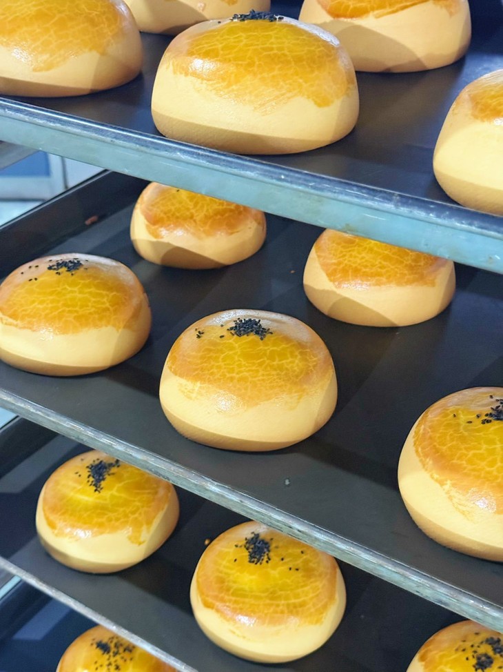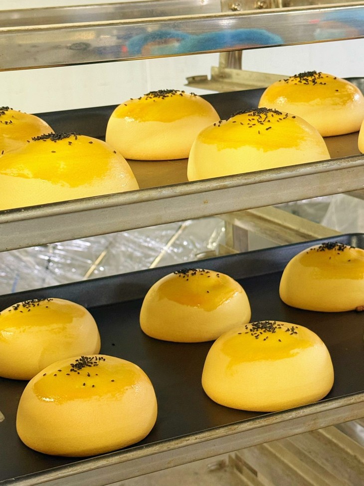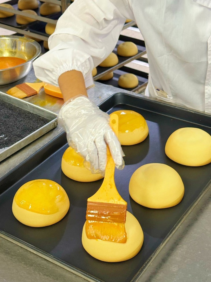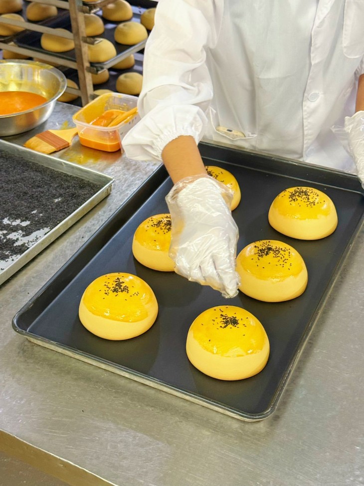 生产实拍🌟 1️⃣ 鸡蛋液刷表面—— 色泽金黄自然 2️⃣ 黑芝麻撒顶——手工点缀不机器喷洒 3️⃣ 卫生无接触——穿戴无菌服操作 ❤️「其实…好吃的原因很简单」 不外乎:真原料+慢工艺+死磕细节