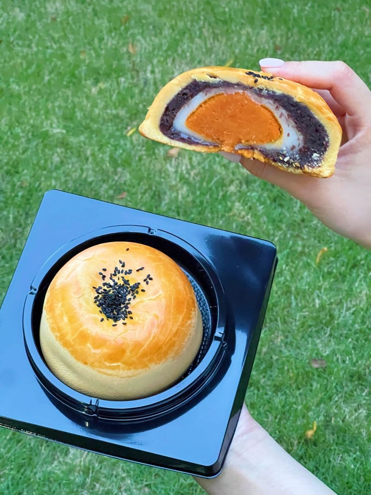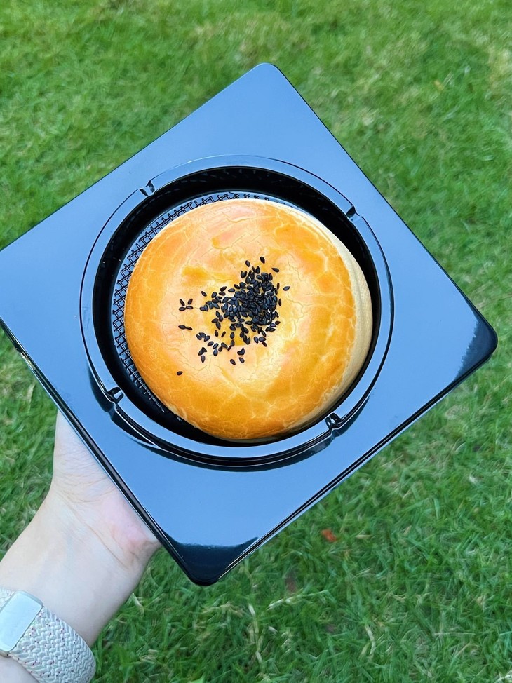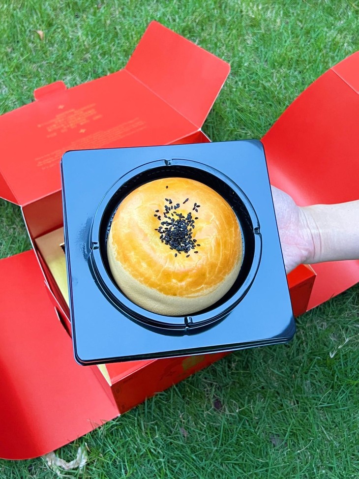 跟普通的蛋皇酥相比足足大了十倍!!! 下午茶摆上快14cm的咸蛋黄蛋黄酥 瞬间成视觉C位! 酥皮薄到透光,咬开是比拳头大的咸蛋黄 沙润咸香和绵密豆沙疯狂对冲,配杯茶能 唠一下午☕️ 朋友圈晒图被问爆“哪里能抱走巨型快乐”~