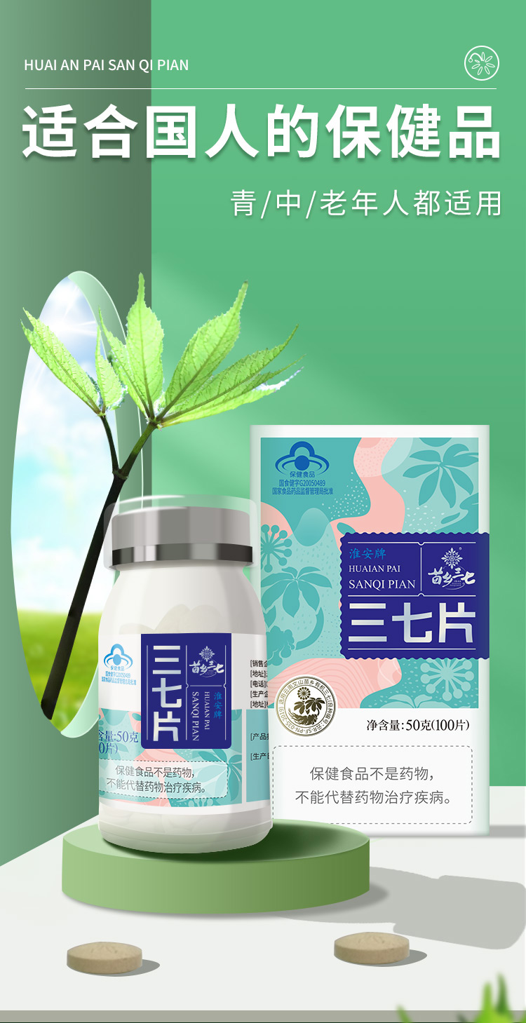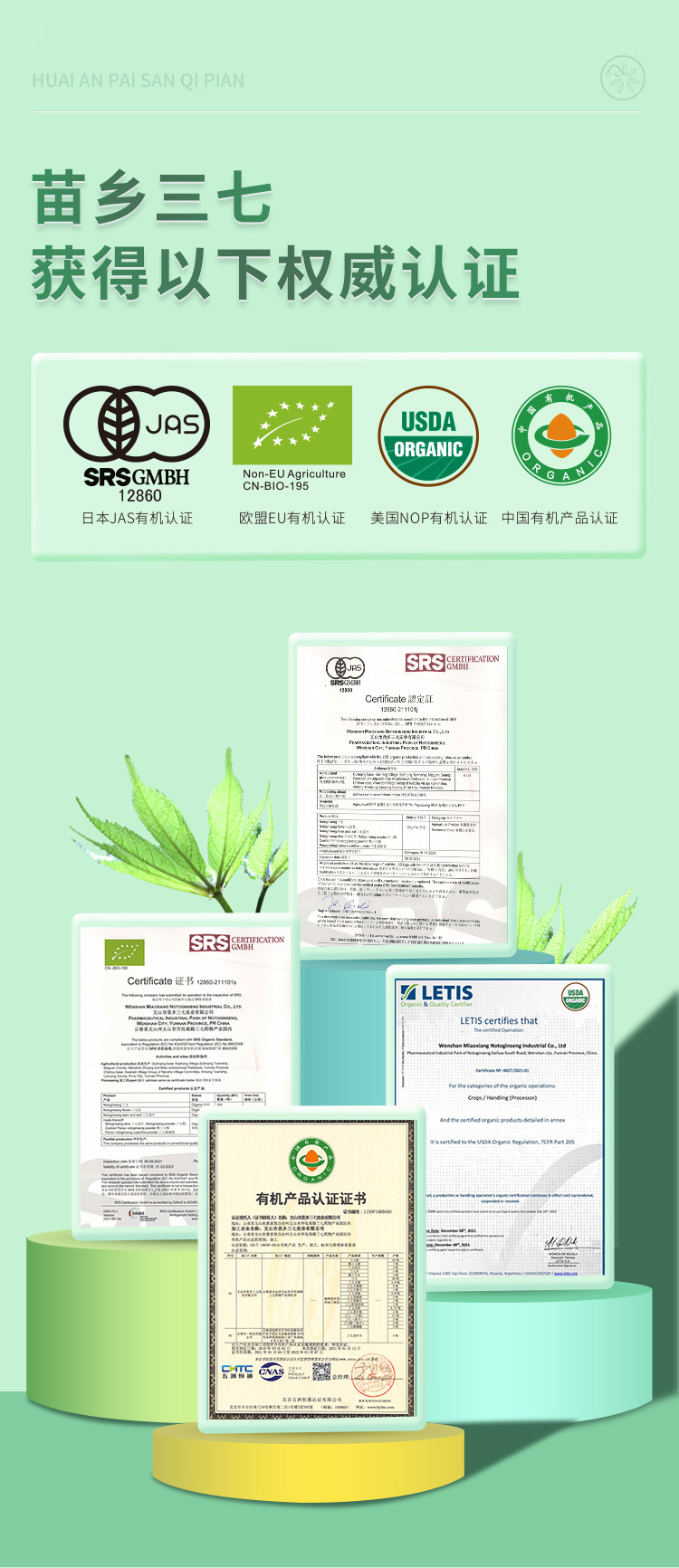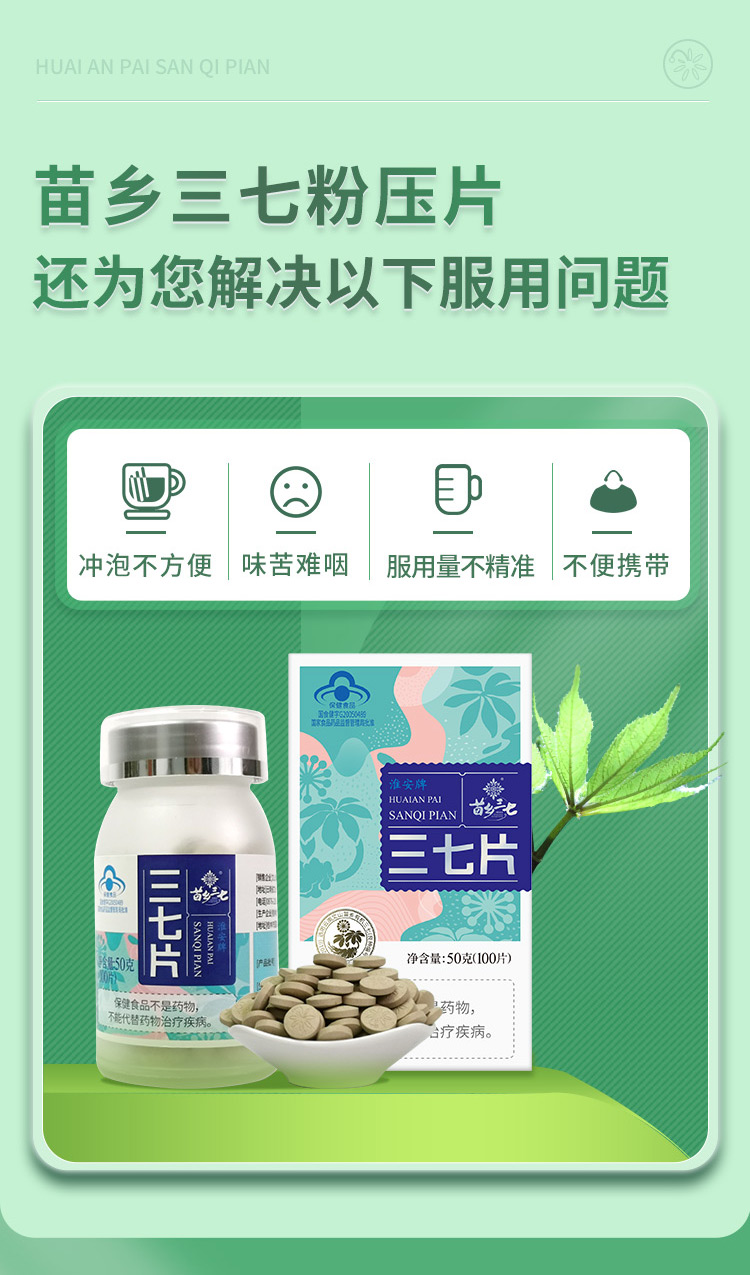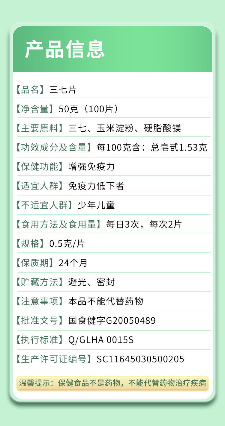 苗乡三七有机三七片100片(50克)/瓶 保健食品【临期】