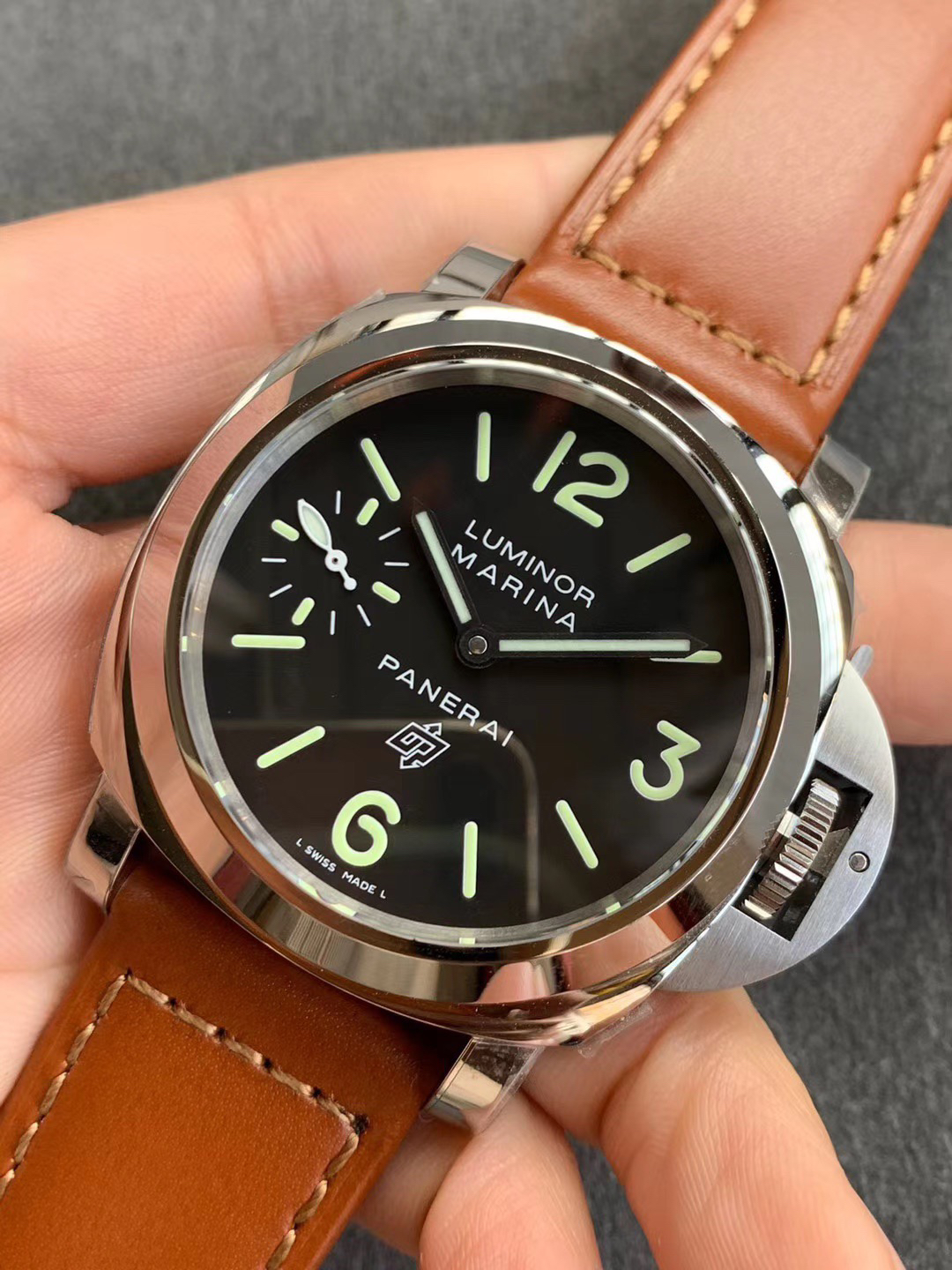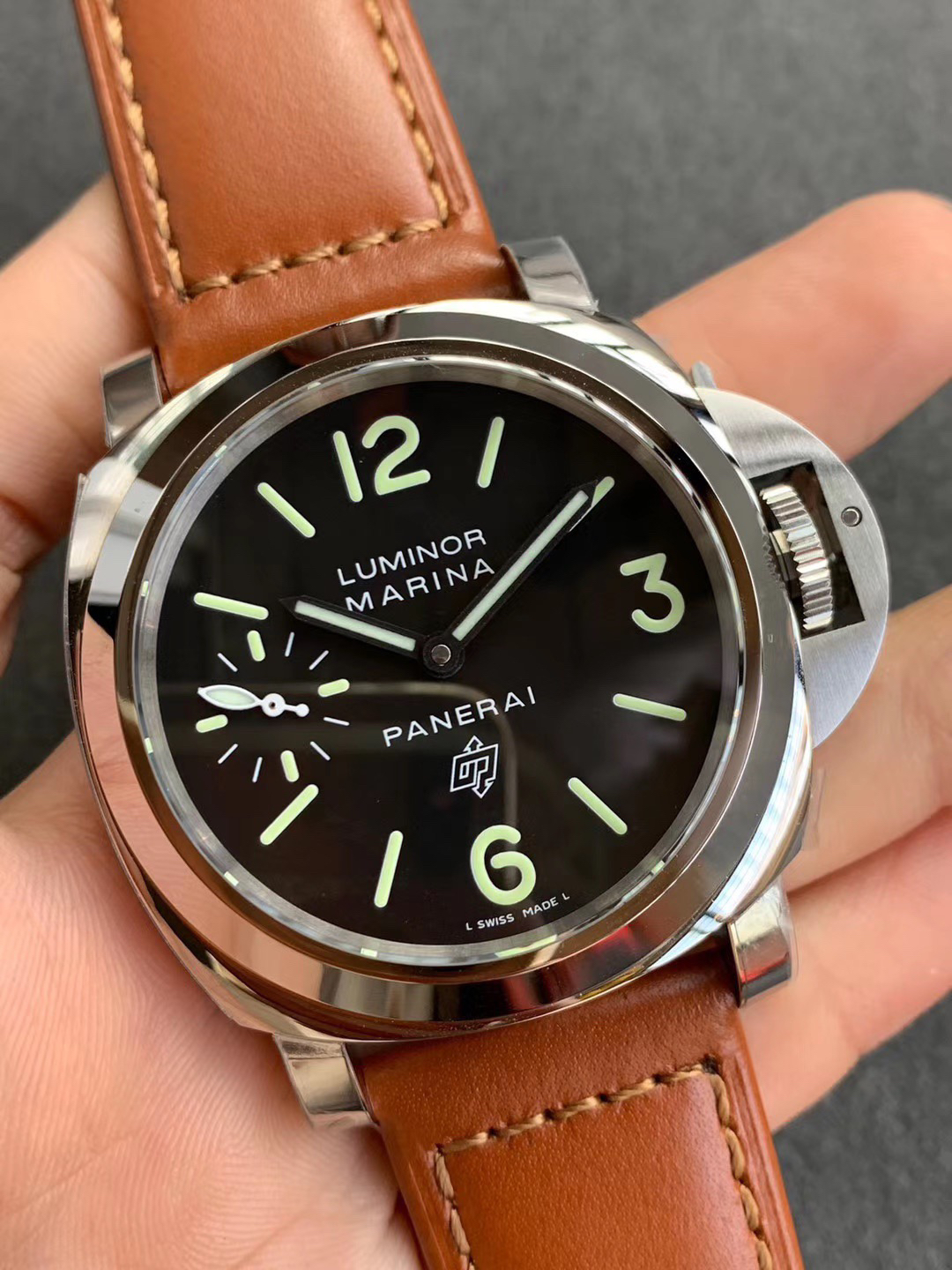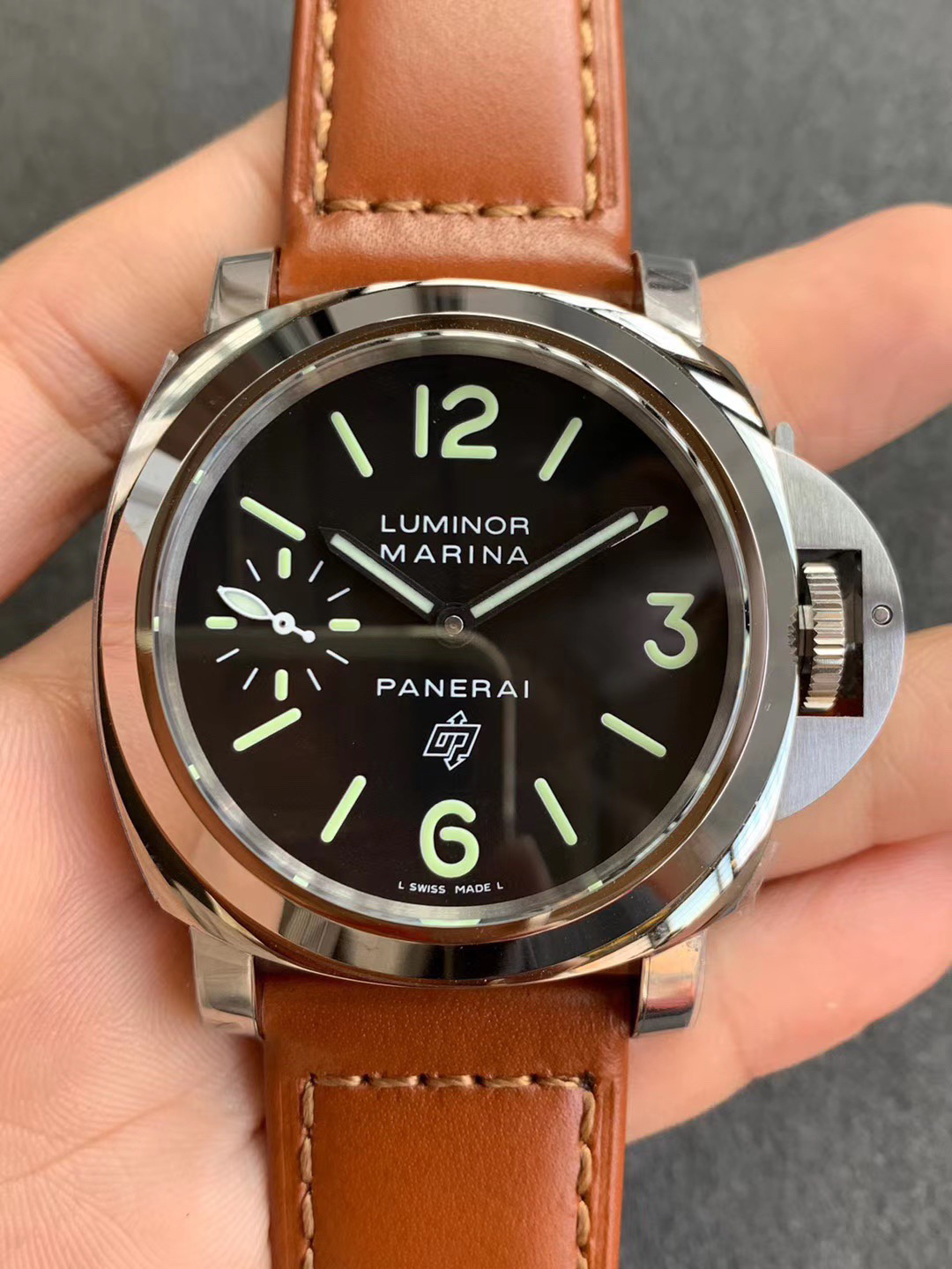 (沛005)XF沛纳海PAM 00005 系列:LUMINOR款式:手动机械,6497避震:Incabloc避震动力储备:56小时,男士手表,皮表带,密底