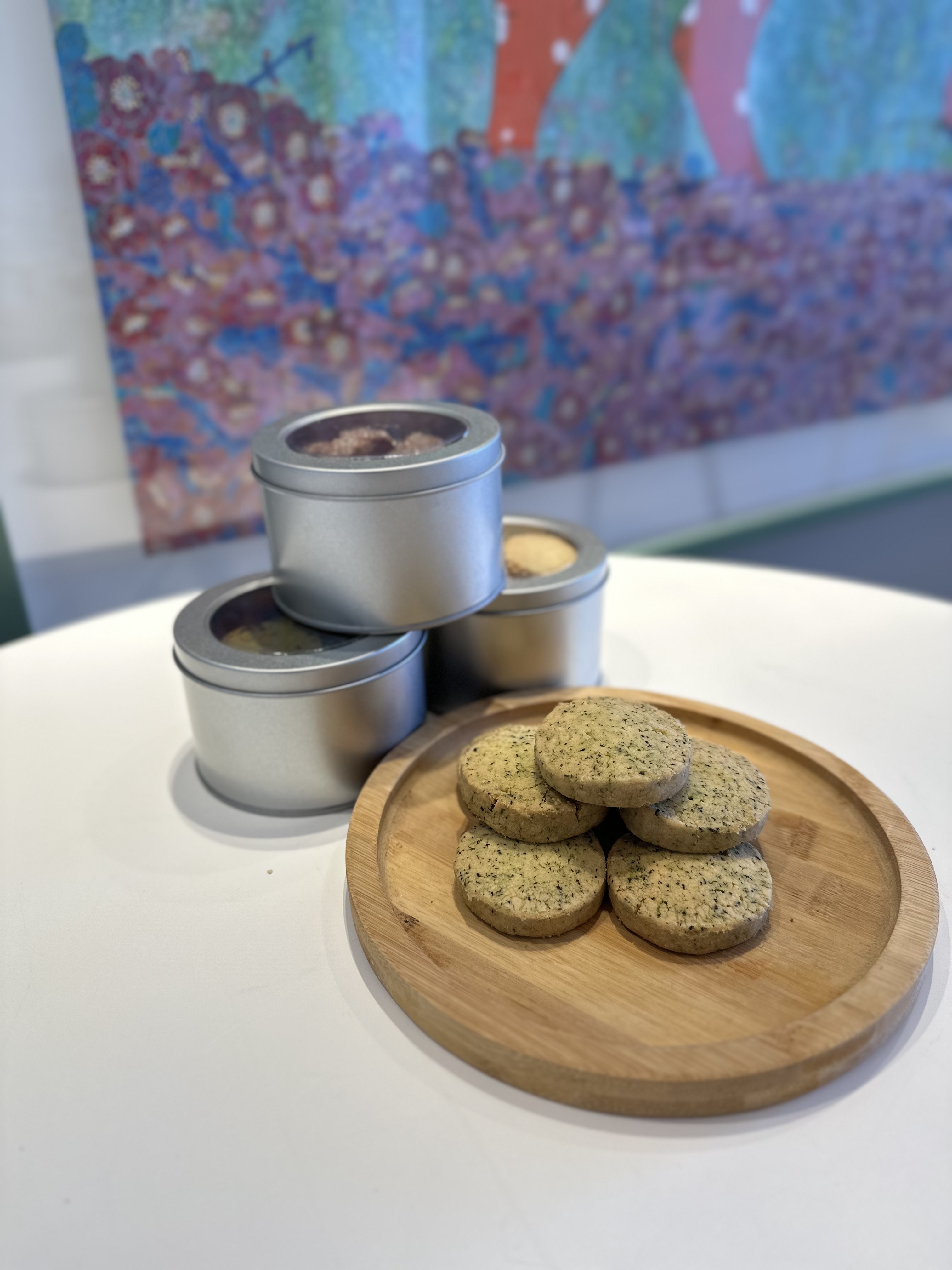 低筋粉,不含反式脂肪酸的动物黄油,糖粉,蔓越莓,富含抗氧化物的抹茶粉。