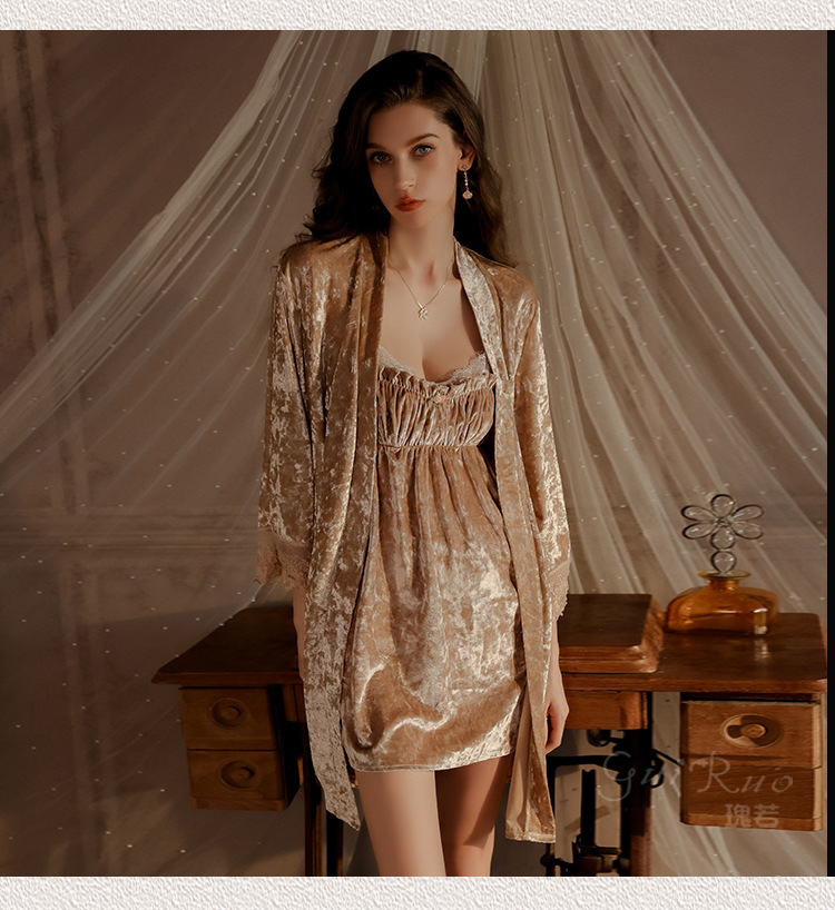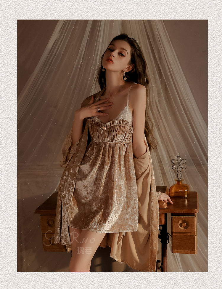 【YW】无忧购秋冬保暖丝绒性感睡裙加胸垫4996(截单后7天发货)