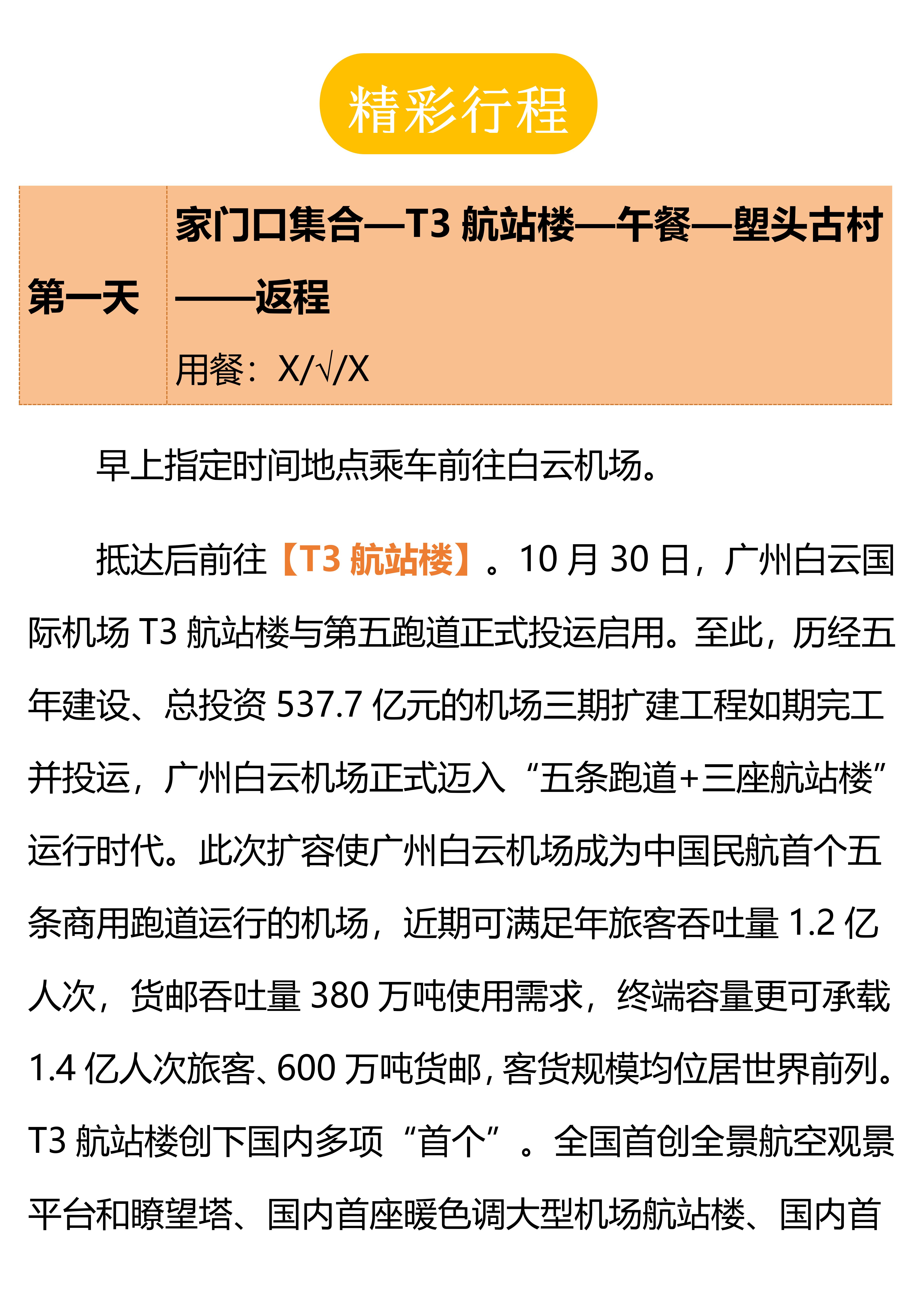 【羊城花冠】T3航站楼+塱头古村一日游