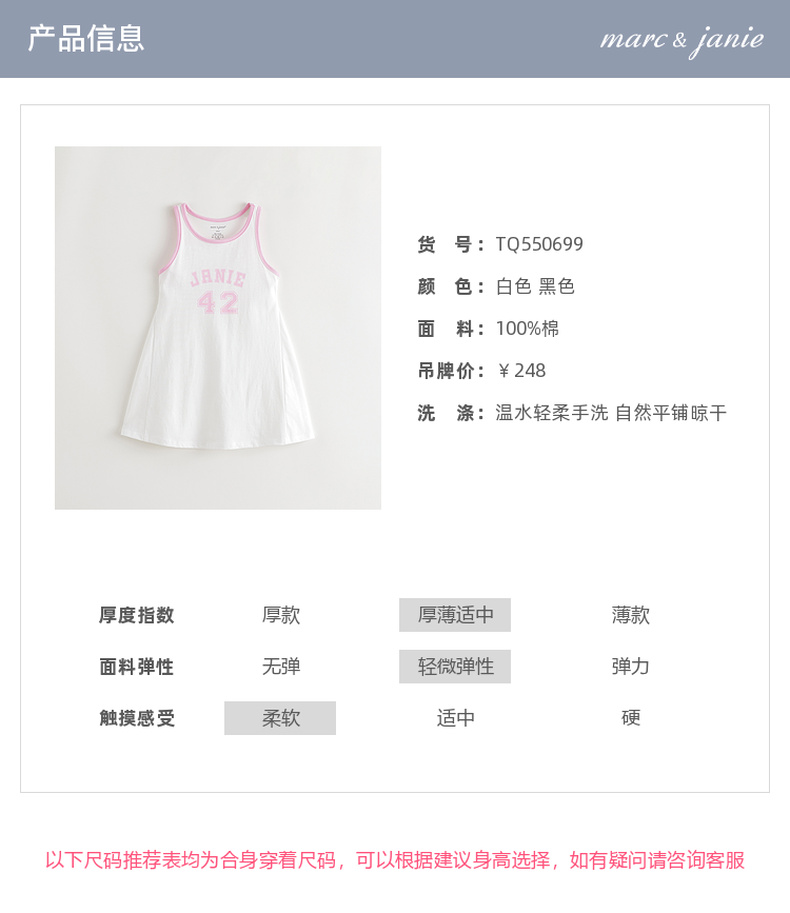 马克珍妮女童透气运动背心裙 儿童裙子纯棉2025年夏装新款550699