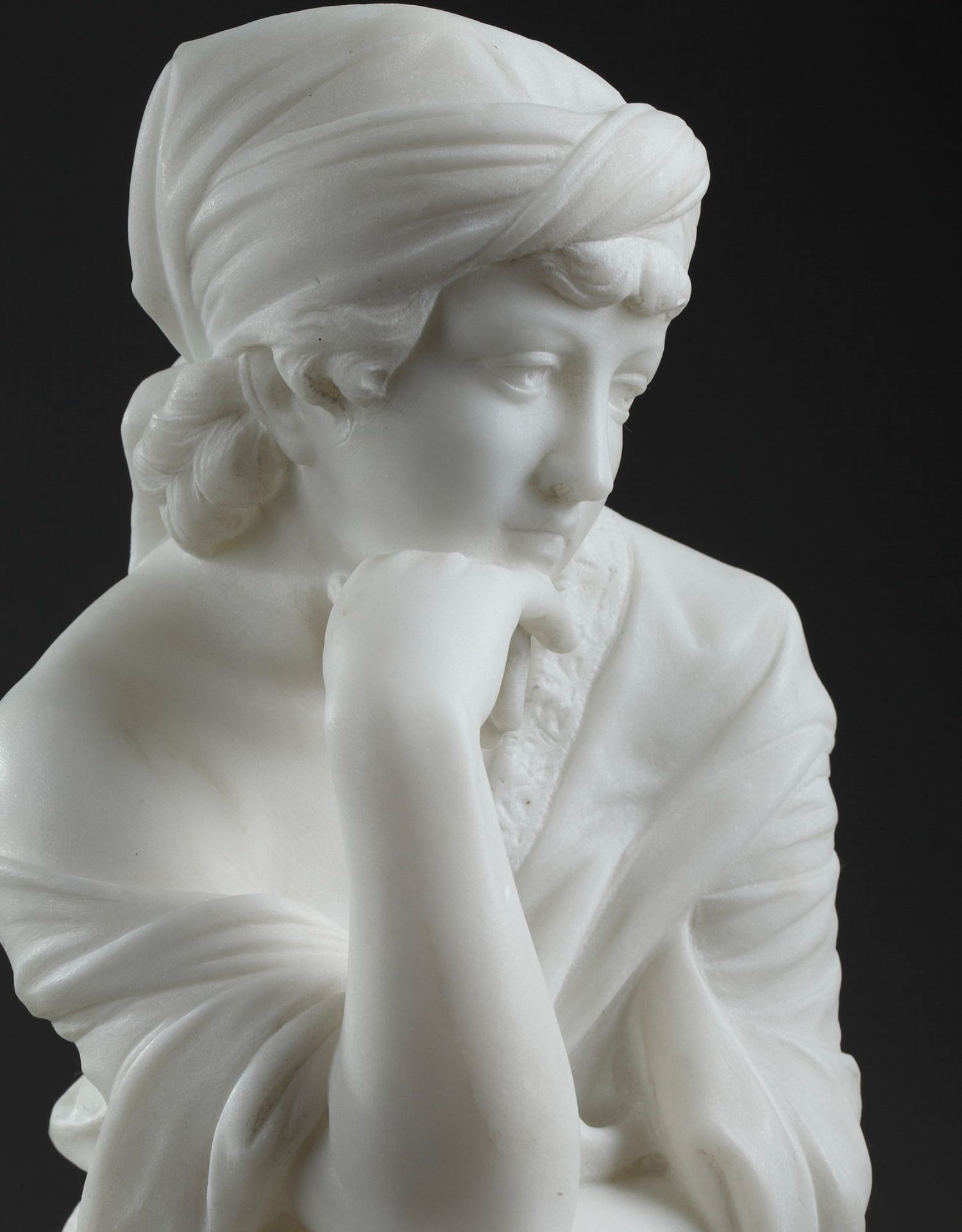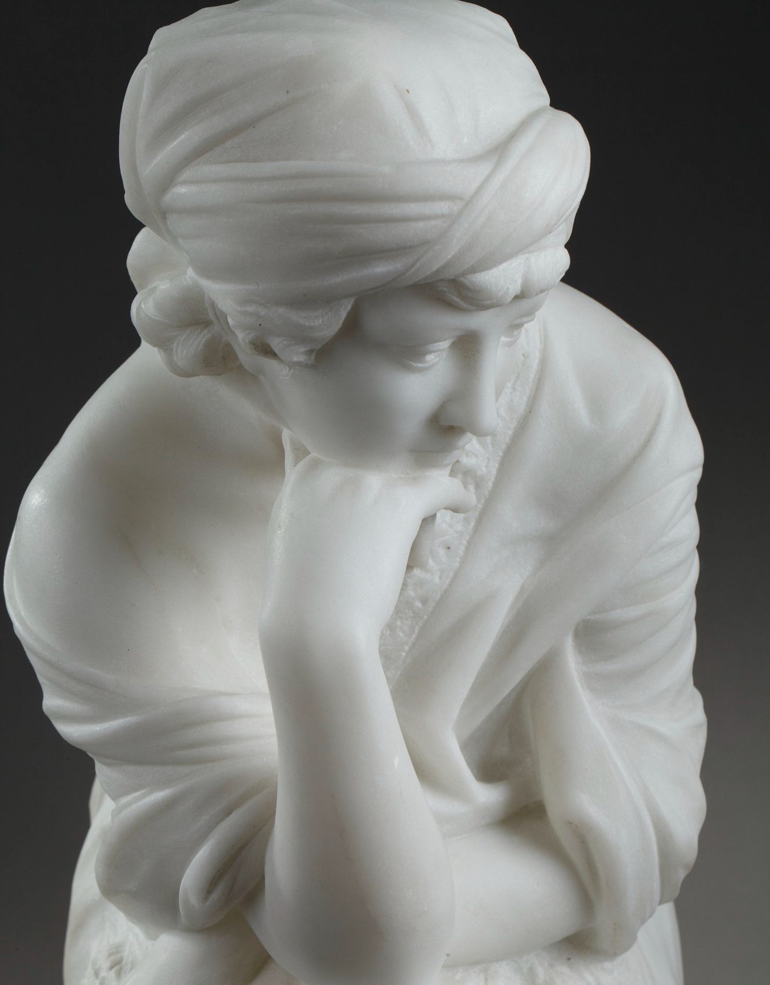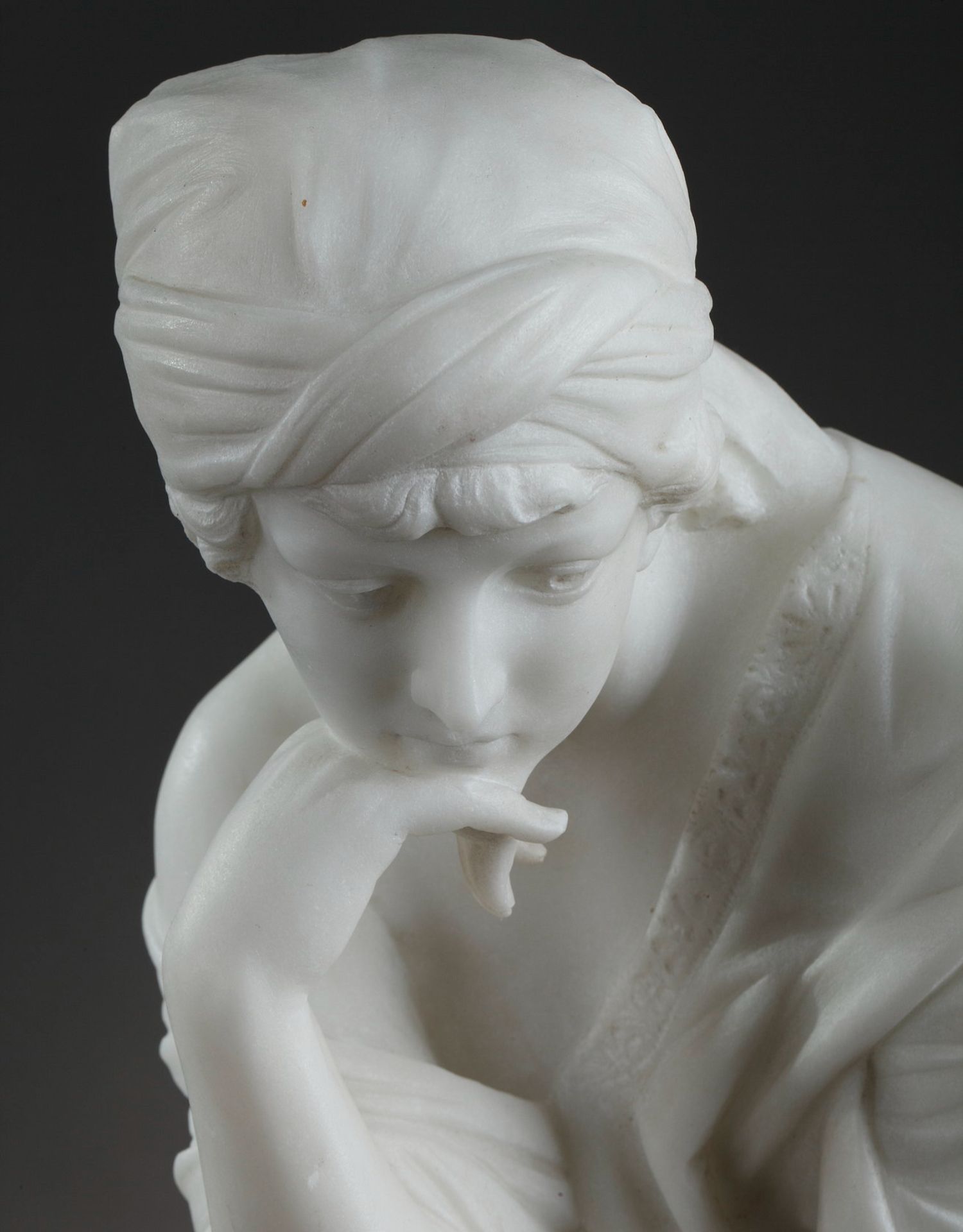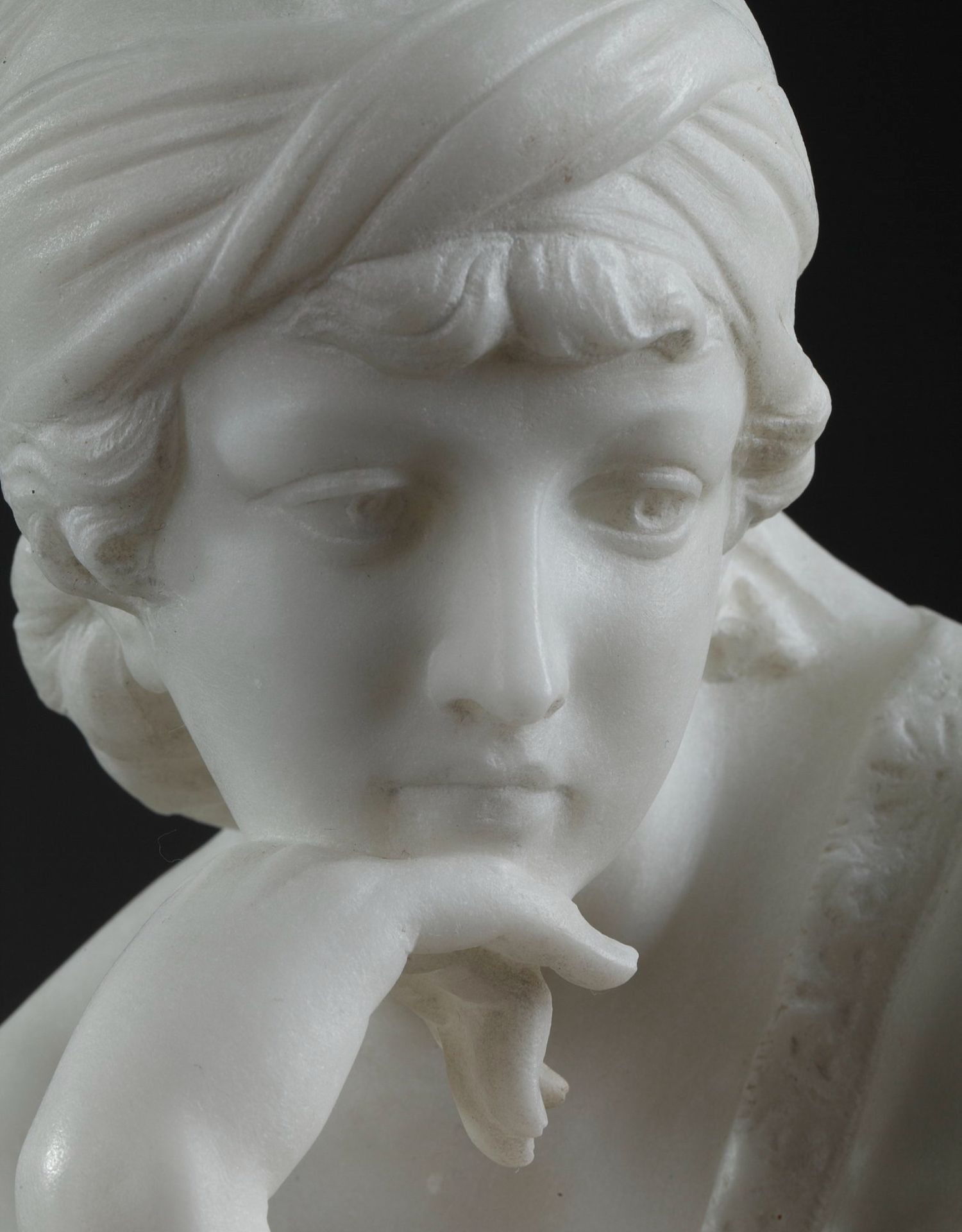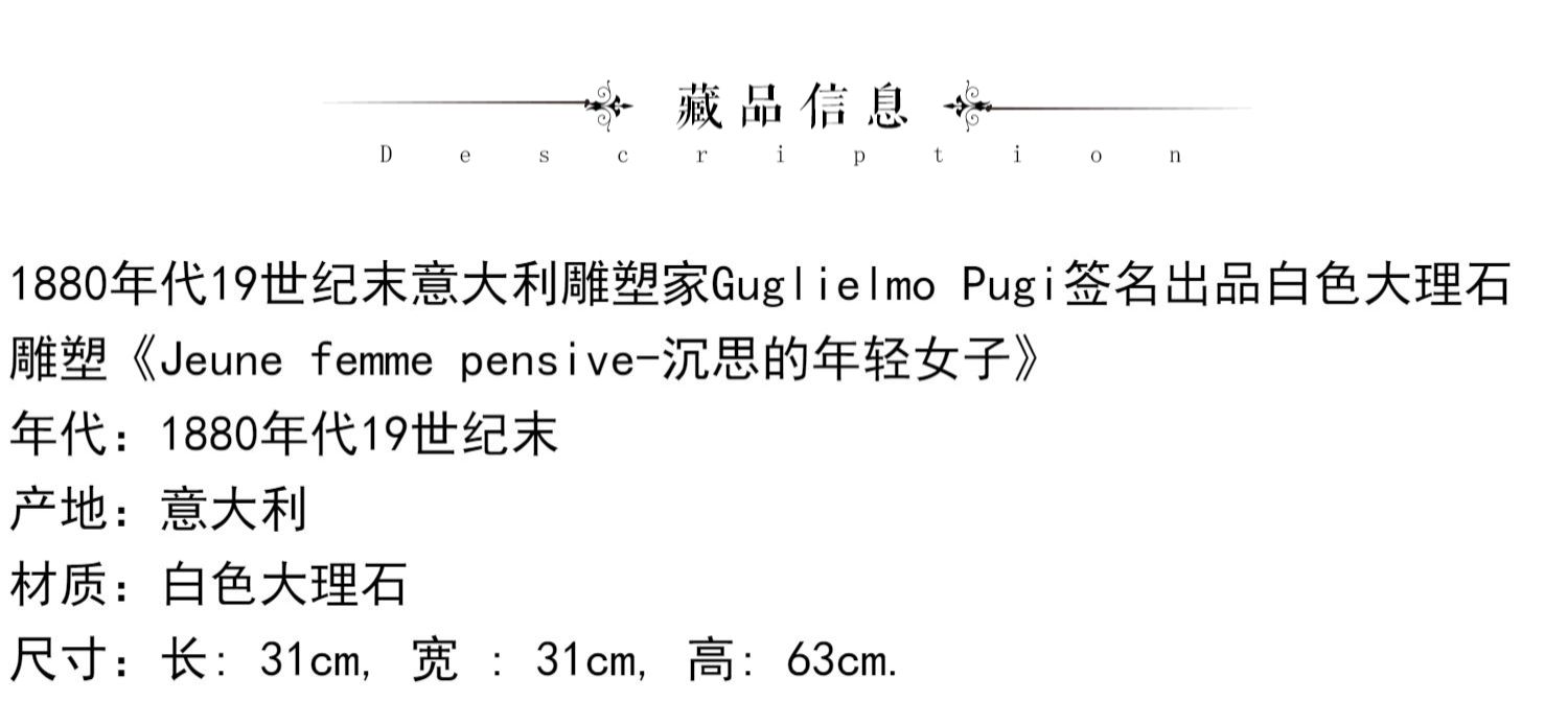 独角鹿西洋古董意大利雕塑家签名白色大理石雕塑沉思的年轻女子