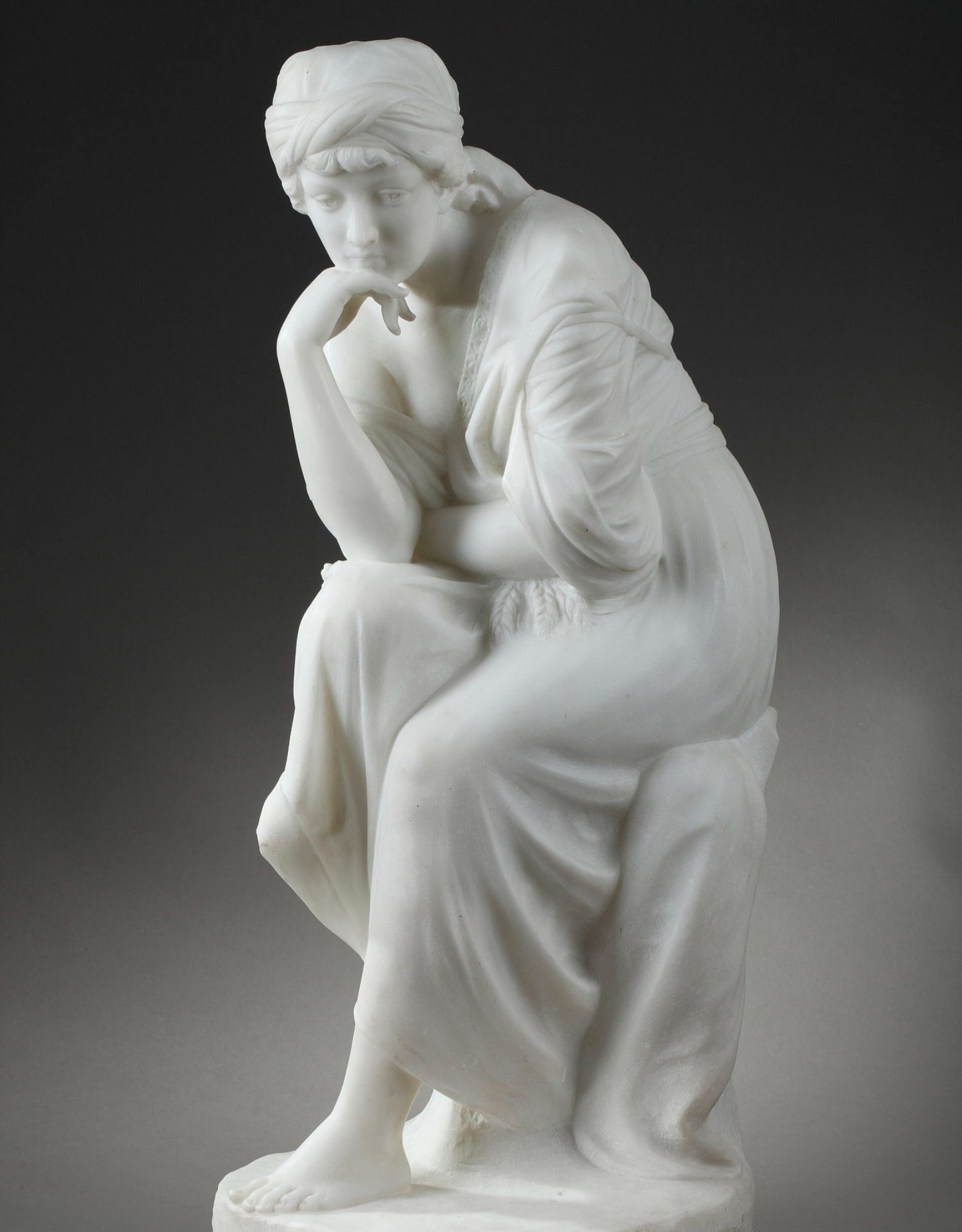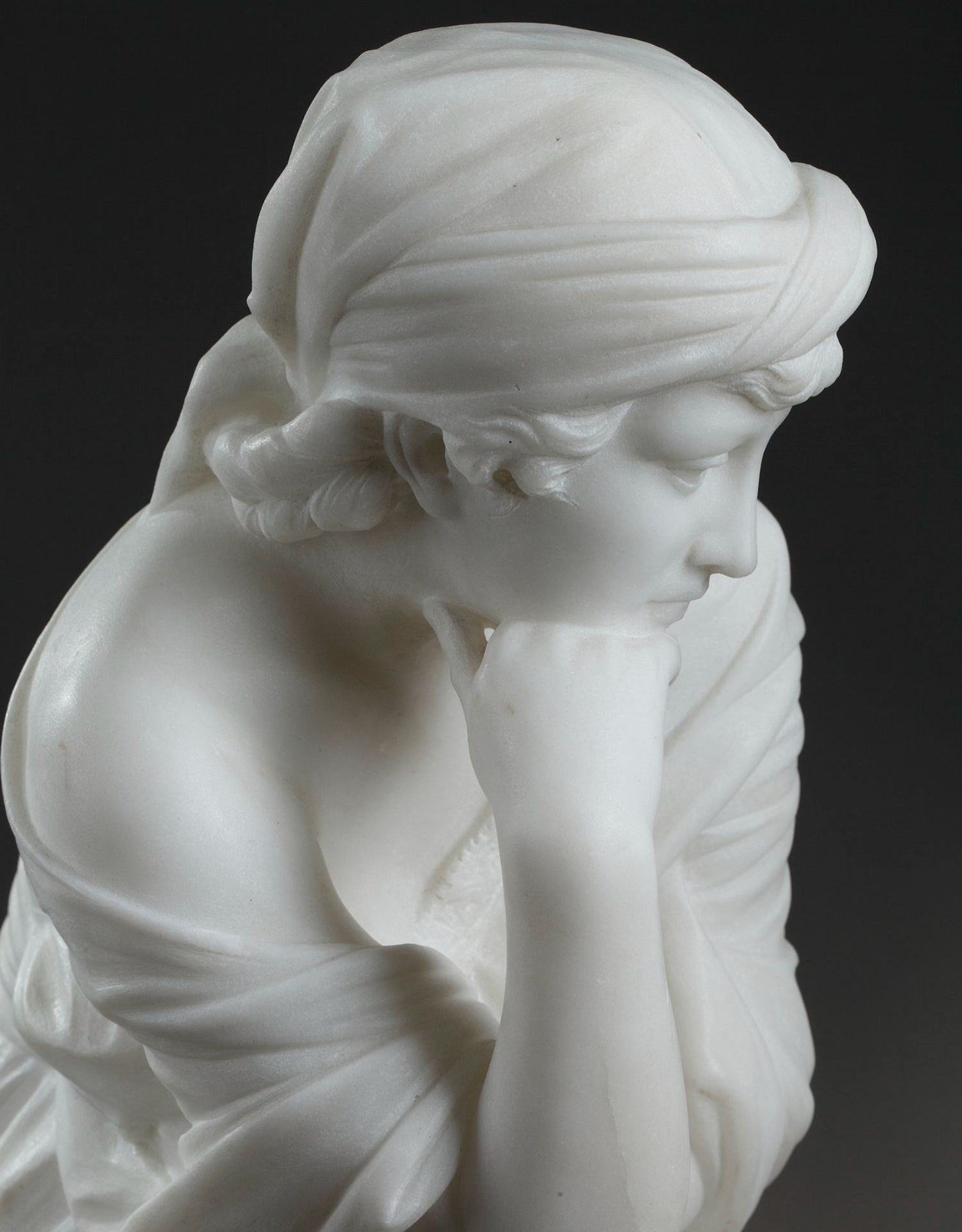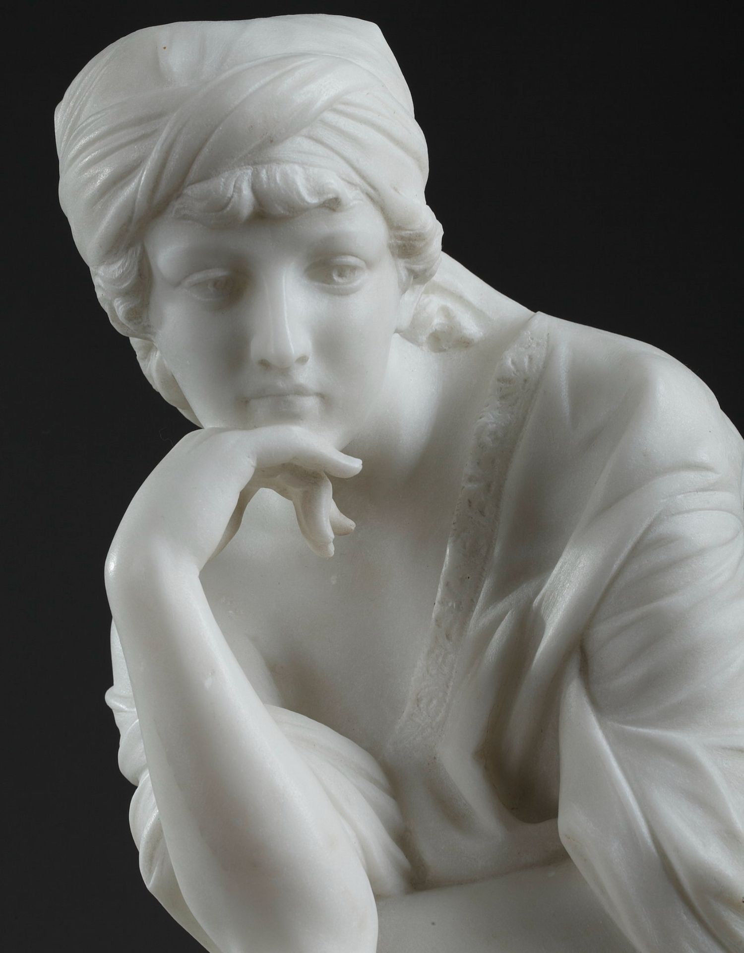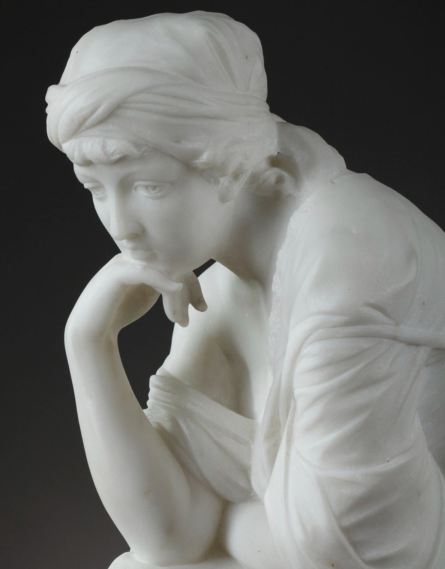 独角鹿西洋古董意大利雕塑家签名白色大理石雕塑沉思的年轻女子