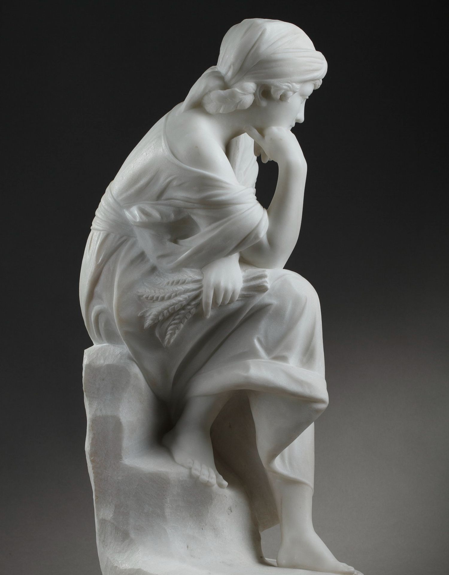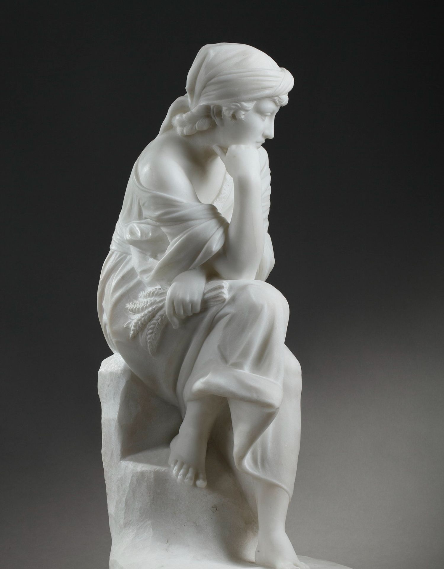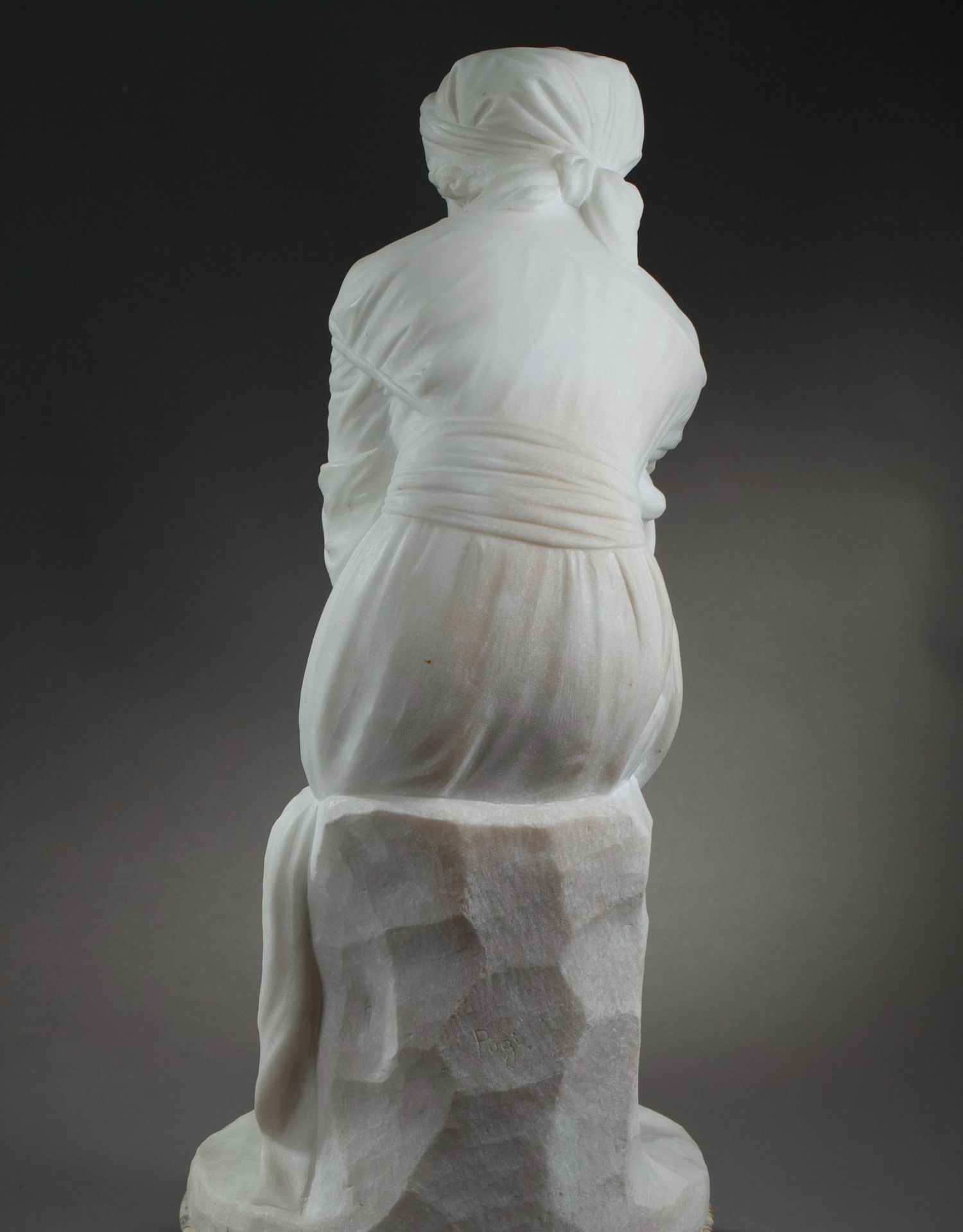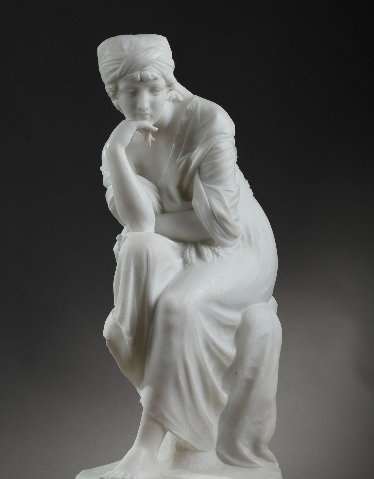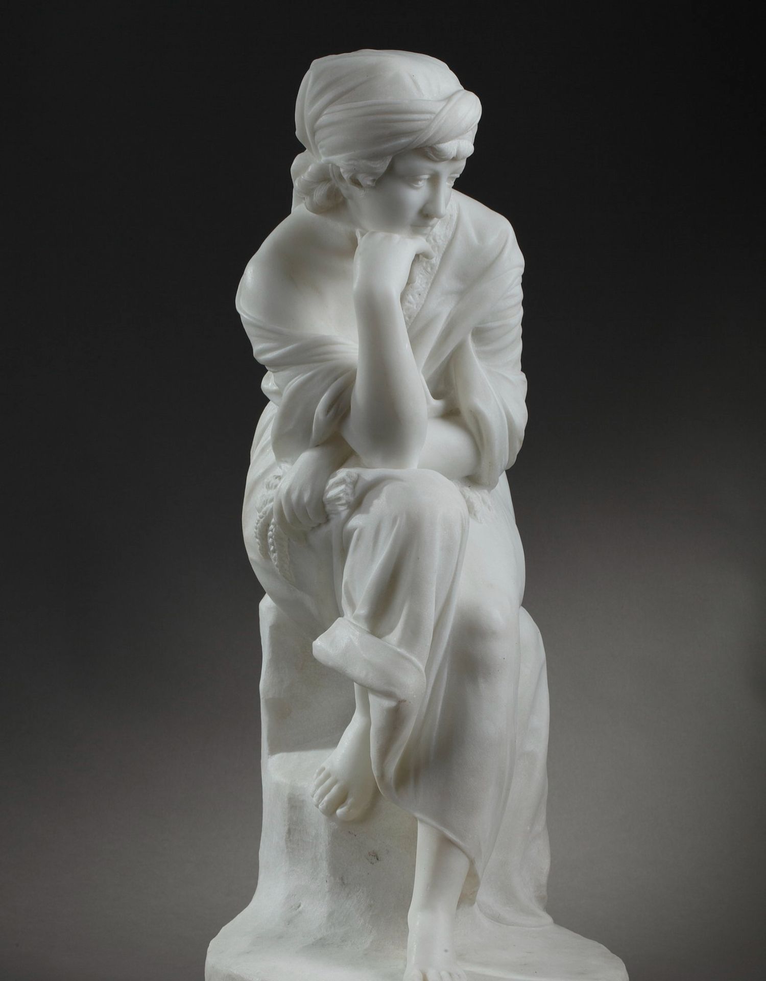独角鹿西洋古董意大利雕塑家签名白色大理石雕塑沉思的年轻女子