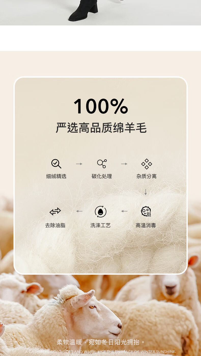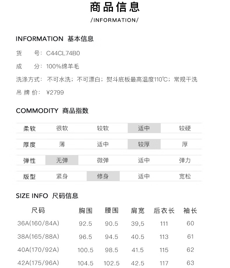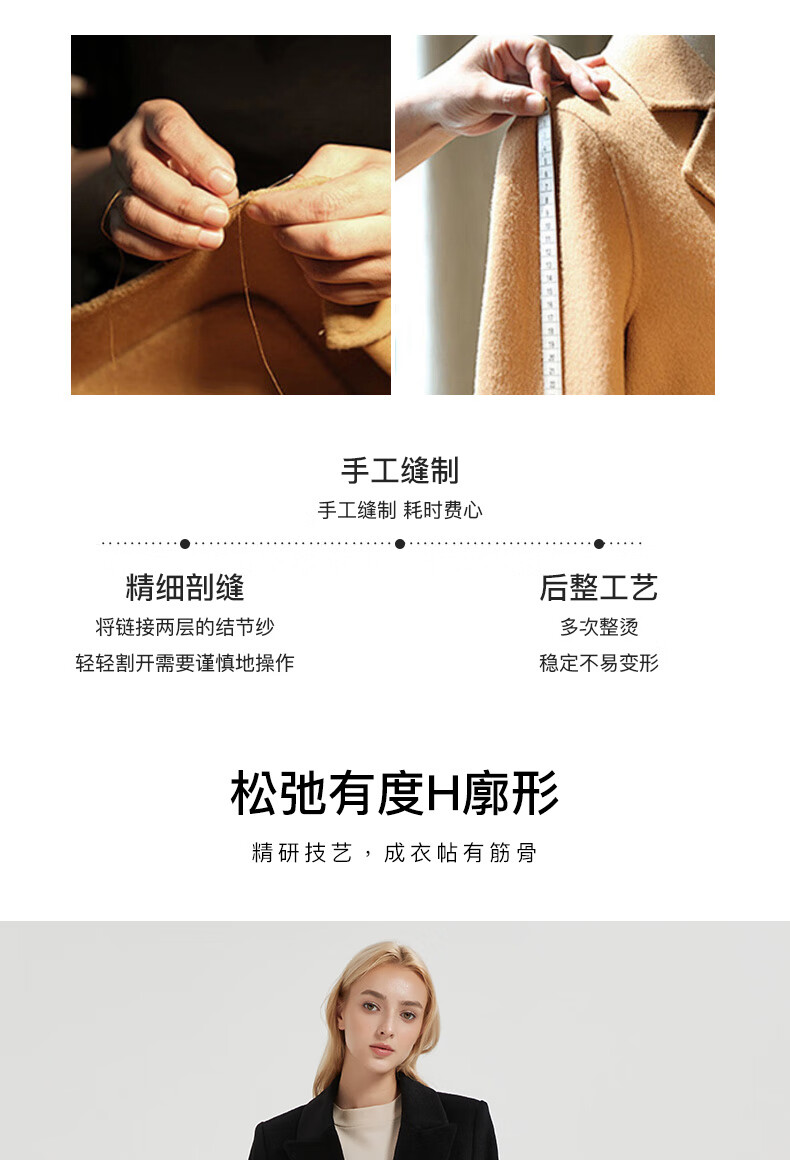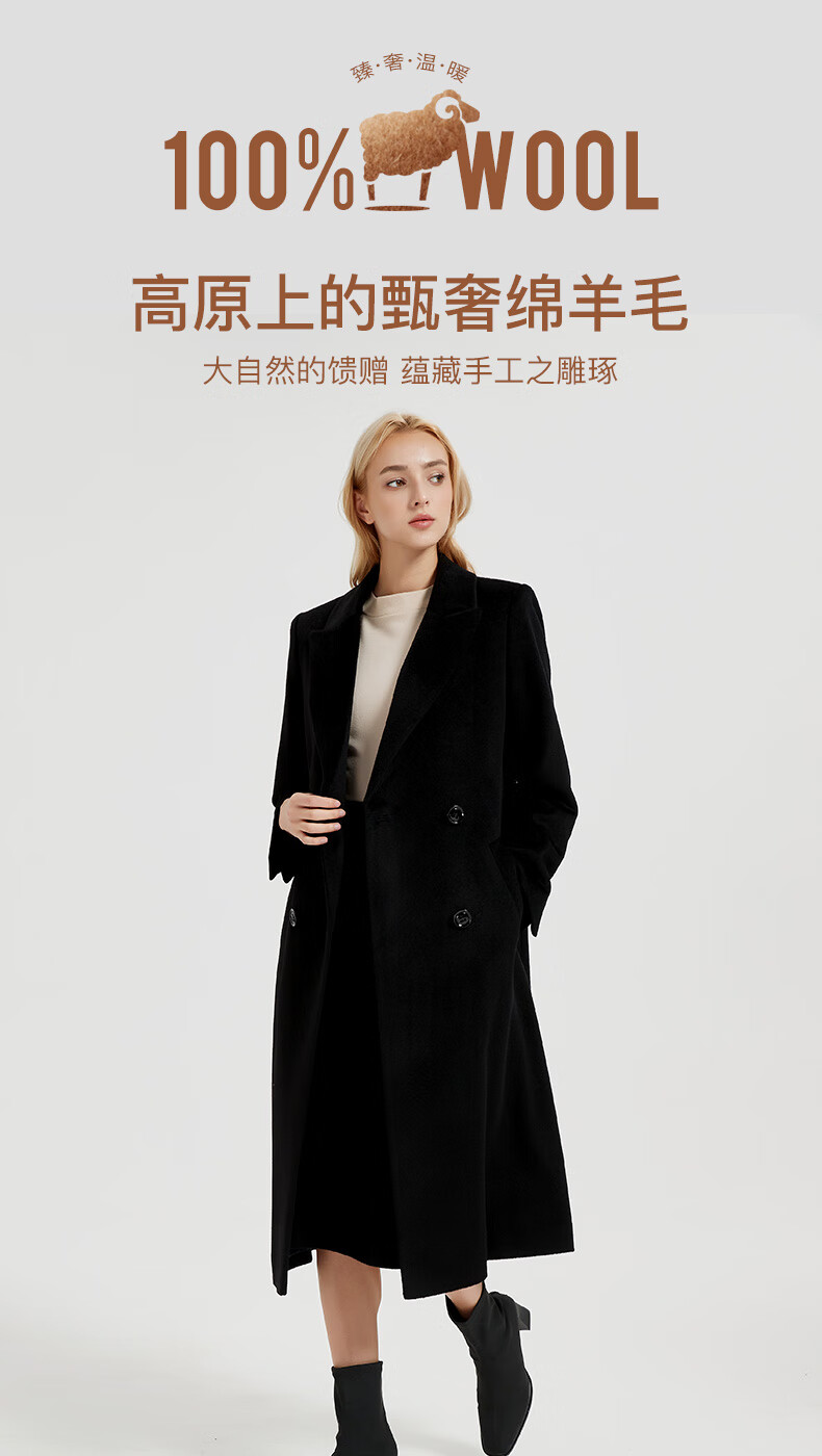 皮尔卡丹女装毛呢外套简约知性修身黑色通勤双排扣长款C44CL74B0